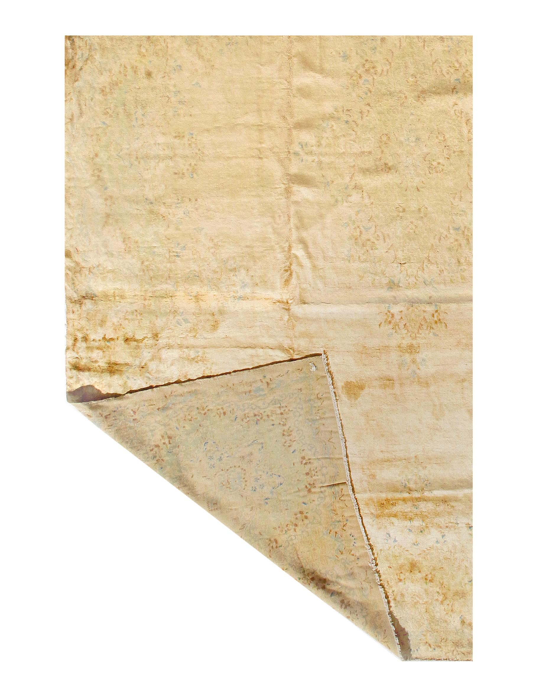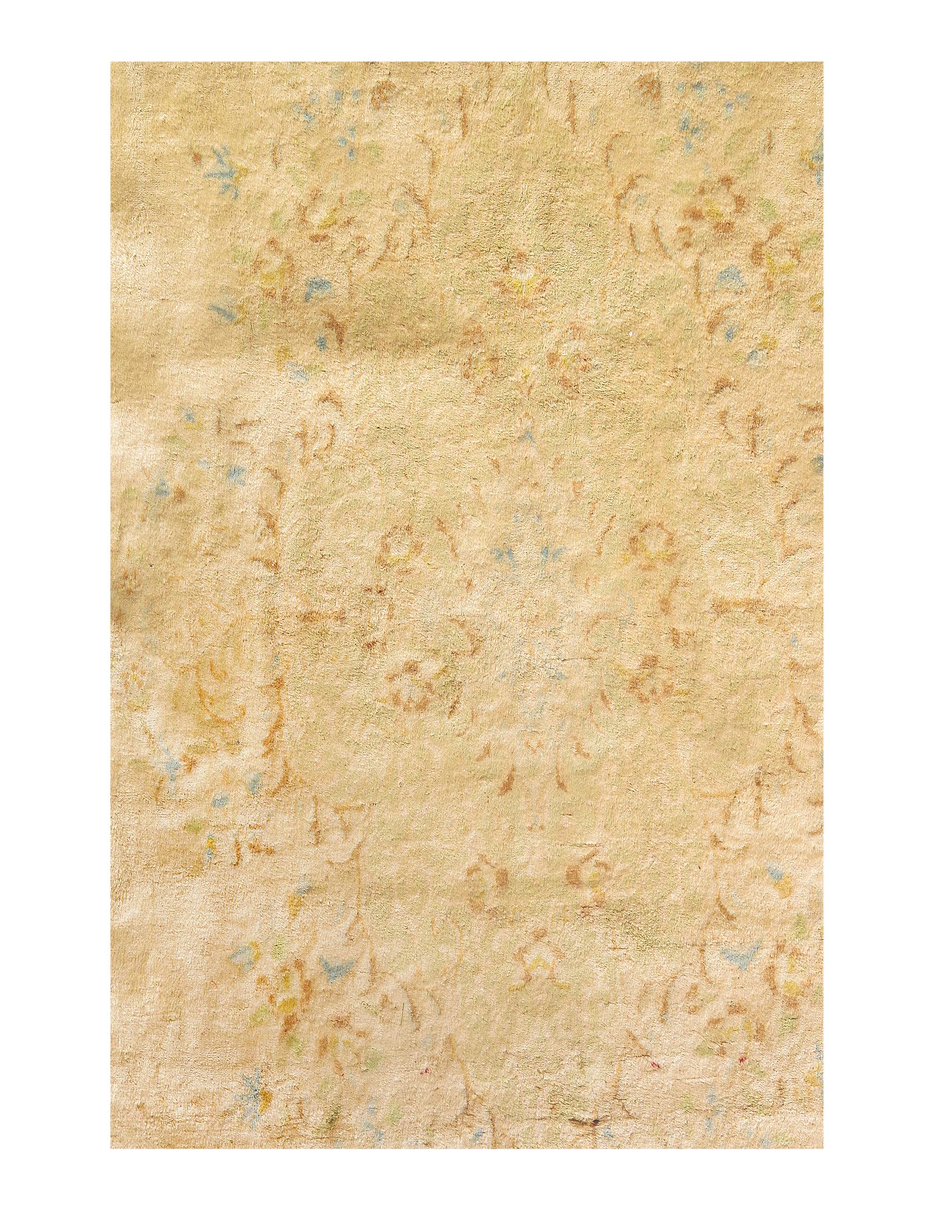 Kerman is an ancient city, with an incredible history going back over a thousand years. Marco Polo was one of the first westerners to view Kerman rugs. The city is located in the central south-eastern section of Iran, in the province that bears its name. Kerman rugs and carpets are perhaps one of the most recognizable within the antique Persian rug category. A typical pattern for Kerman rugs and carpets is a floral or architectural theme in the main border with a central medallion in the field. Other patterns include the finer Kerman Lavar style with garden, tree-of-life, vase, and all-over millefleur designs, or the many pictorials which tell the story of a significant figure or event in history. The vase design carpets originated during the Safavid dynasty, and are among the greatest masterpieces of Persian weaving.
