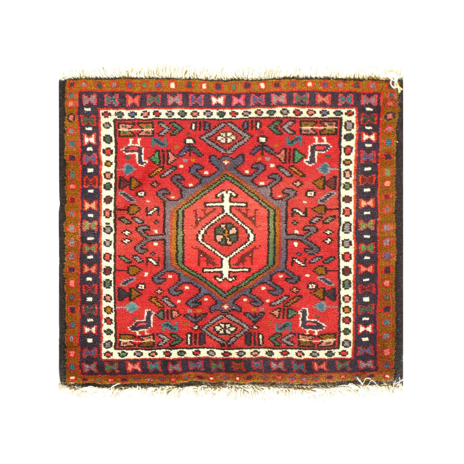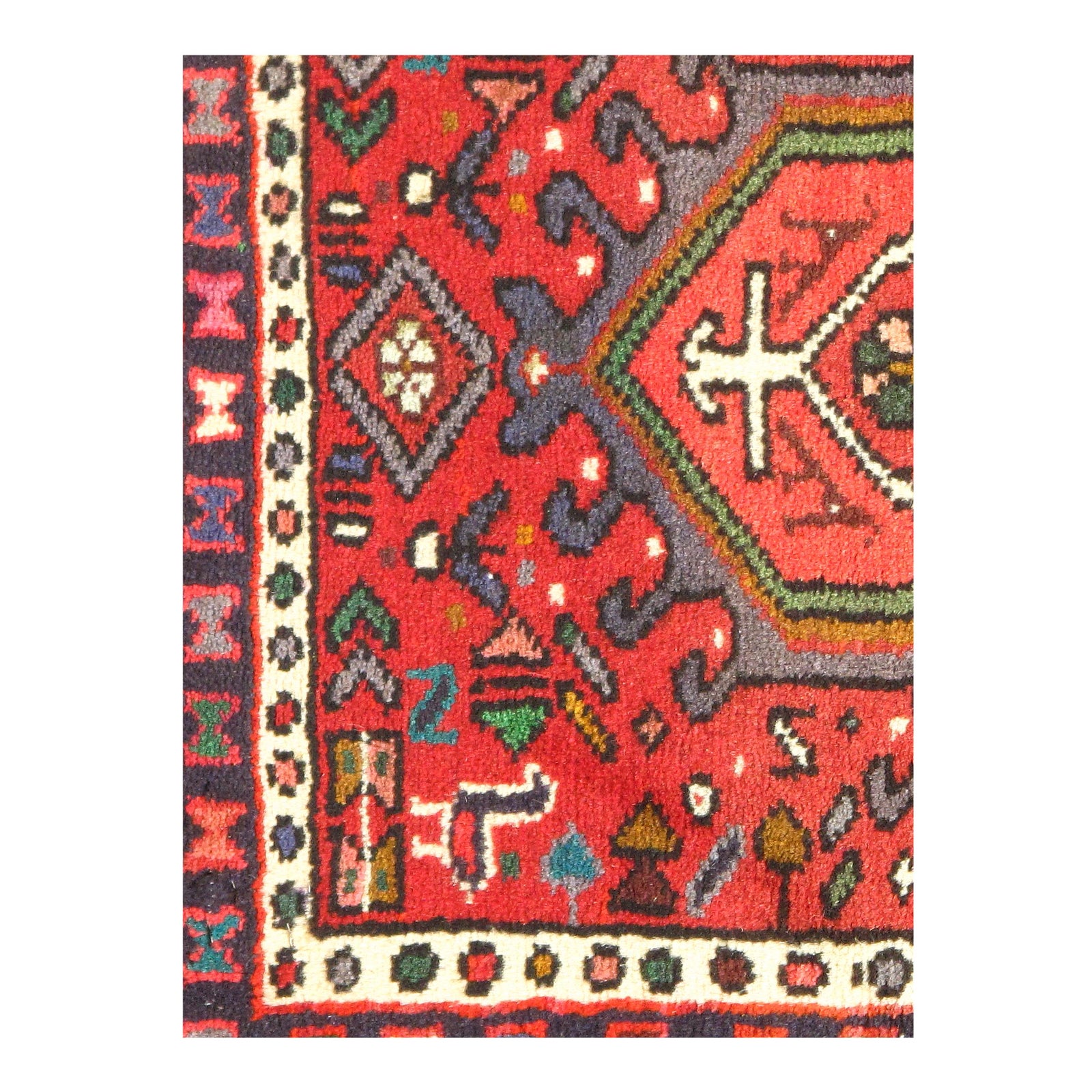 Original Persian Karajeh antique rug. The piece is made of hand-spun lamb's wool on a cotton foundation, and it was vegetable dyed. The rug has a dense, soft pile, and excellent quality, to ensure that you will enjoy it for years to come. Circa 1950 D10428