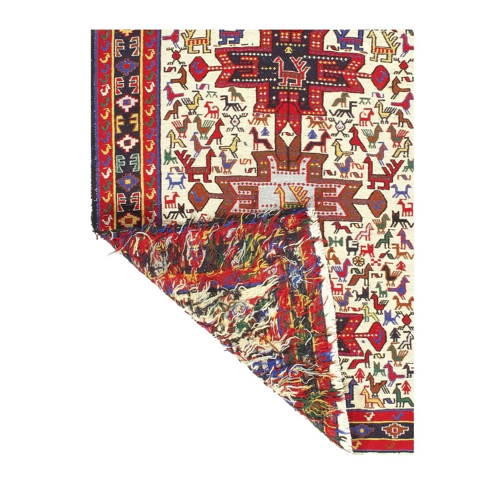 Antique Persian Sumak rug. These vintage rugs bring traditional sophistication to your home. These rugs feature 100% Premium Lamb's Wool Pile hand-knotted into elegant designs, perfect for your elegant decor. Circa 1960