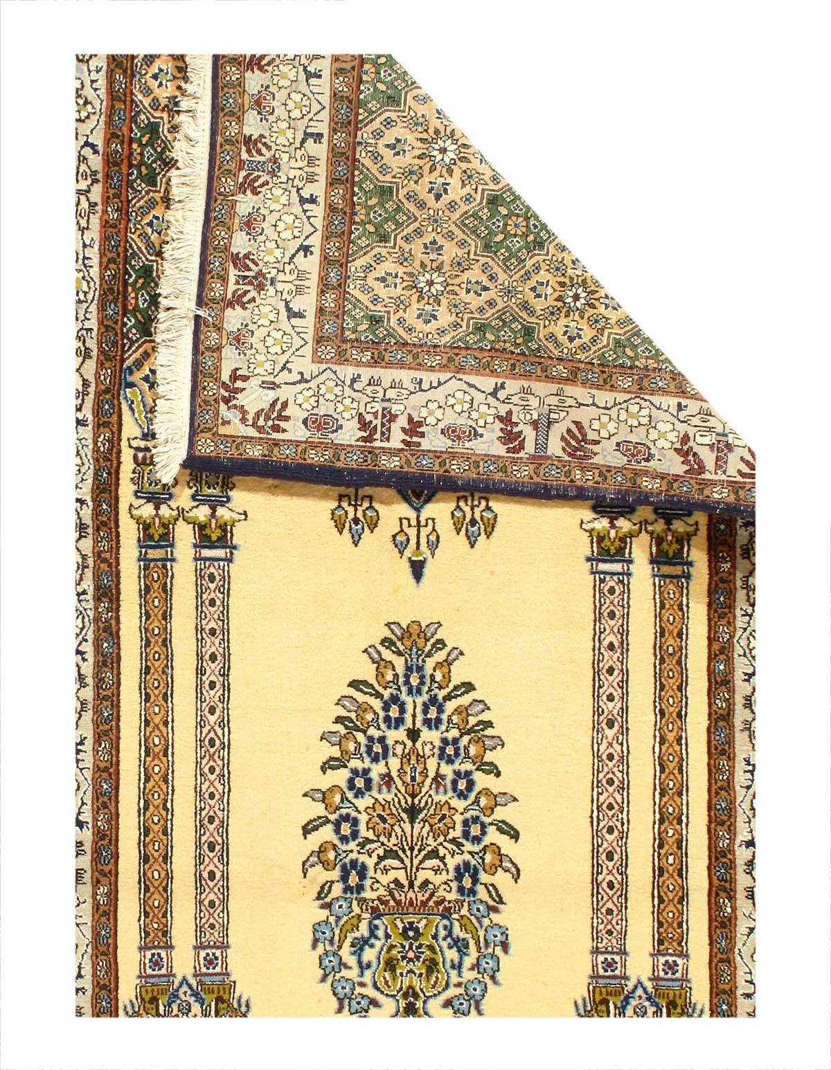 Persian Qum lamb's wool handmade rug from Qum Iran. This rug has a dense, soft pile, and excellent quality, to ensure that you will enjoy the look and feel of it for years to come. All rugs are individually inspected before leaving our warehouse.