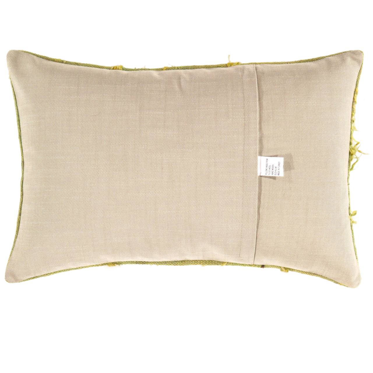 Our beautiful handmade, one-of-a-kind Tulu Pillow* was crafted from a vintage Turkish tulu rug. The front side of the pillow is composed of wool, and the back is made from 100% cotton with a concealed zipper.
