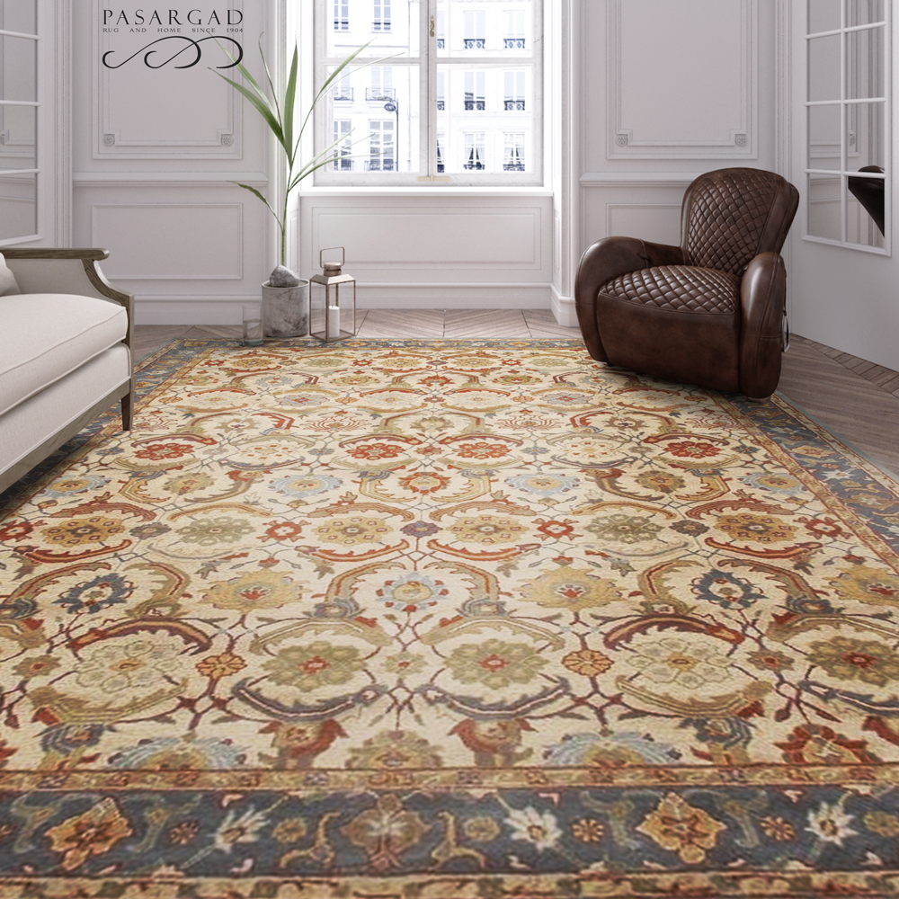 A hand tufted rug is typically a much higher-quality rug than one made by a machine, but, when compared to a hand-knotted rug meticulously created by an artisan, it is less durable and less valuable. They aren't completely unique works of art, but they are much closer than other weaves since it is created by a weaver, and not on a weaving or looming machine, without a human to guide the pattern or yarn. Some hand-tufted rugs can be mistaken for hand-knotted rugs. They are often made of wool, and, depending on the manufacturer and materials used, they can last for up to 20 years. Hand-tufted rugs aren't made on a loom but are created with a tool called a tufting gun. Additional patterns can be carved on the rug with a tufting gun. A hand tufted rug can have a colorful, geometric, flowered, paisley, or striped pattern, or pretty much anything you've seen on a machine made or hand-knotted rug.