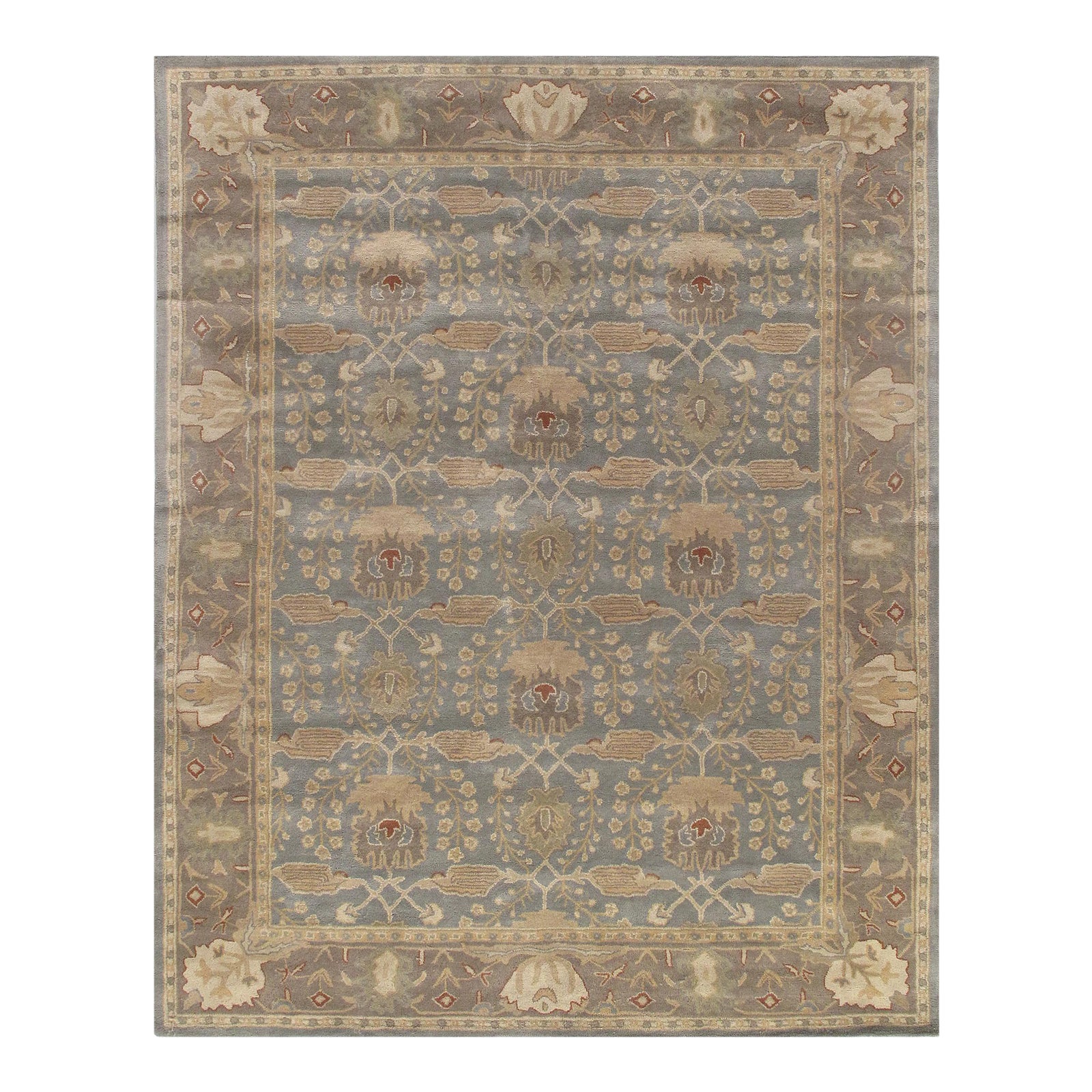 The Arts and Crafts designs made popular by English textile designer William Morris and Scotlands Donegal Carpets often included gingko leaves, thistles, flowers, and willow trees. The palettes of these 19th and early 20th century rugs ran from mossy greens to bright jewel tones. D10183