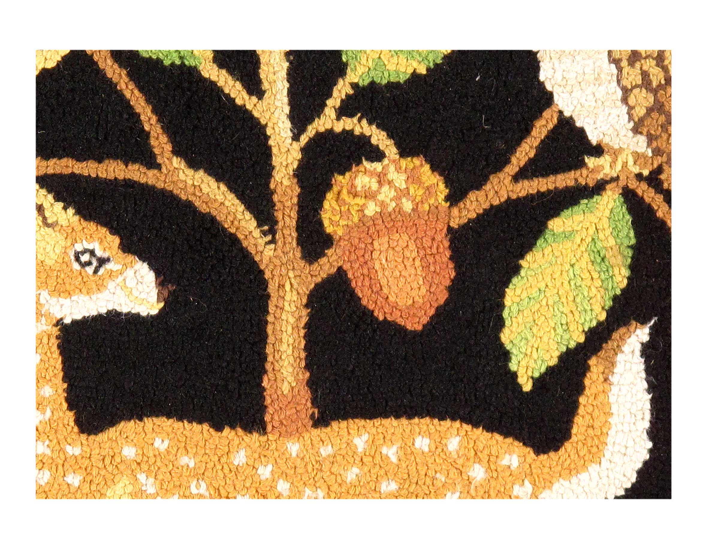 Antique American Hooked Rug, Country of Origin: America, 1920β Paying homage to a vital part of the early American lifestyle, this antique hooked rug detailed bridles and bits. Broad earth-tone borders woven in a combination of black and ecru frame the carpet and accentuate the nubby hooked pile. Simplistic lines and gold details add to the traditional appeal of this American antique .