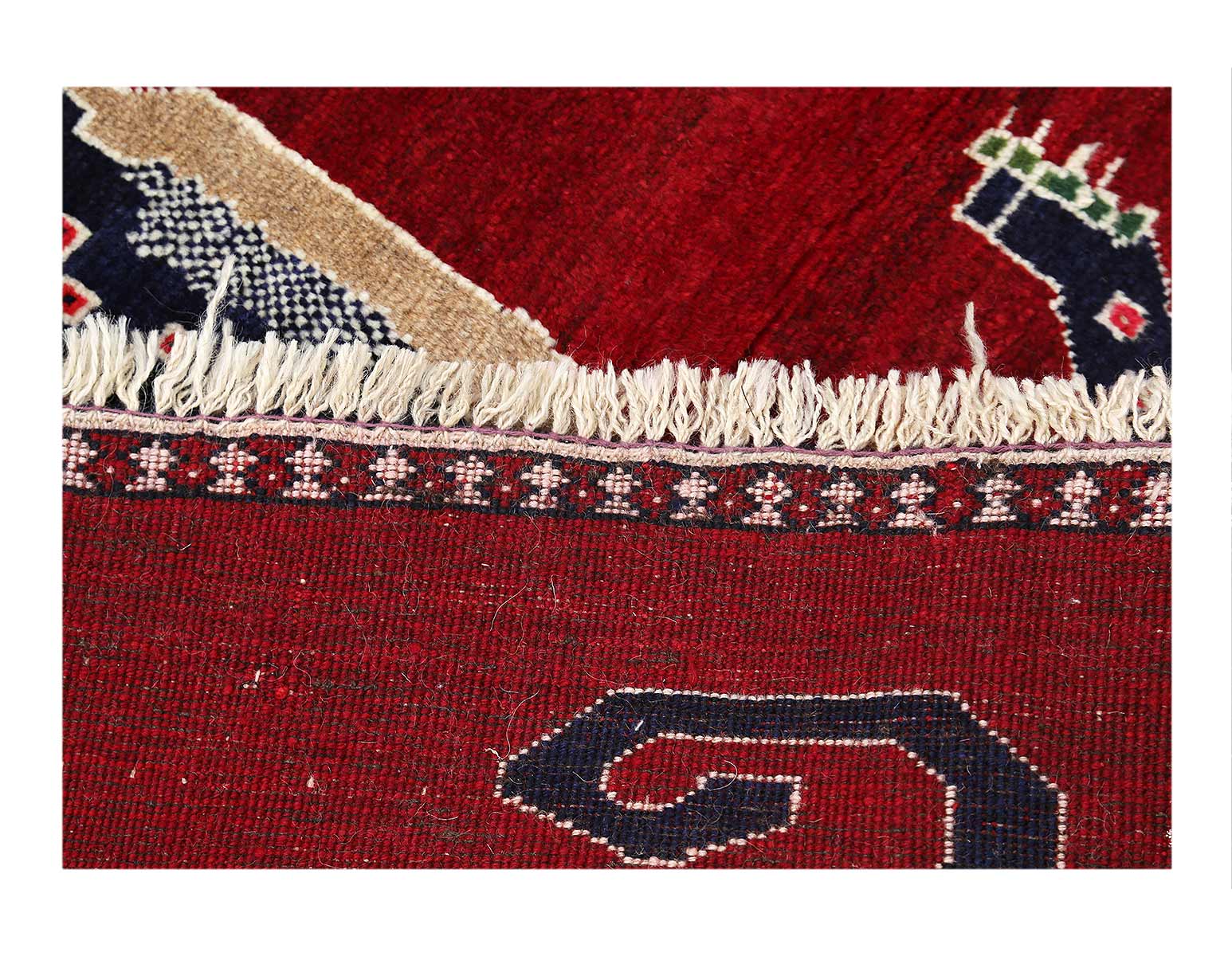 Thanks to its origin the carpet has been crafted in the most traditional craftsmanship over months of handicraft. With its geometric design patterns this type of Persian rug re-gained a high popularity during the past years. With a pile height of 0.39 in and a knot density of 129 - 161 / square inch the carpet has been crafted to an extraordinary high level of quality and robustness. Nomads used natural dyes for the colors of this carpet made from Wool. It is in perfect condition. You are going to be very fond of this unique piece of highest craftsmanship