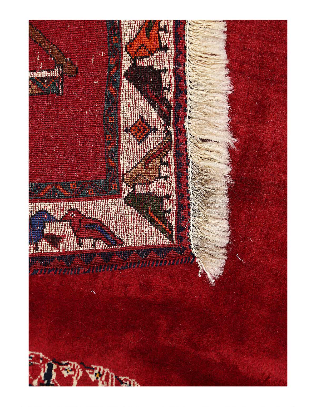 Thanks to its origin the carpet has been crafted in the most traditional craftsmanship over months of handicraft. With its geometric design patterns this type of Persian rug re-gained a high popularity during the past years. With a pile height of 0.39 in and a knot density of 129 - 161 / square inch the carpet has been crafted to an extraordinary high level of quality and robustness. Nomads used natural dyes for the colors of this carpet made from Wool. It is in perfect condition. You are going to be very fond of this unique piece of highest craftsmanship