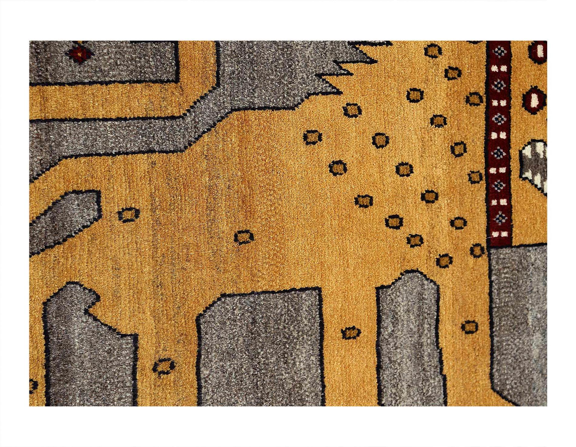 Thanks to its origin the carpet has been crafted in the most traditional craftsmanship over months of handicraft. With its geometric design patterns this type of Persian rug re-gained a high popularity during the past years. With a pile height of 0.39 in and a knot density of 129 - 161 / square inch the carpet has been crafted to an extraordinary high level of quality and robustness. Nomads used natural dyes for the colors of this carpet made from Wool. It is in perfect condition. You are going to be very fond of this unique piece of highest craftsmanship