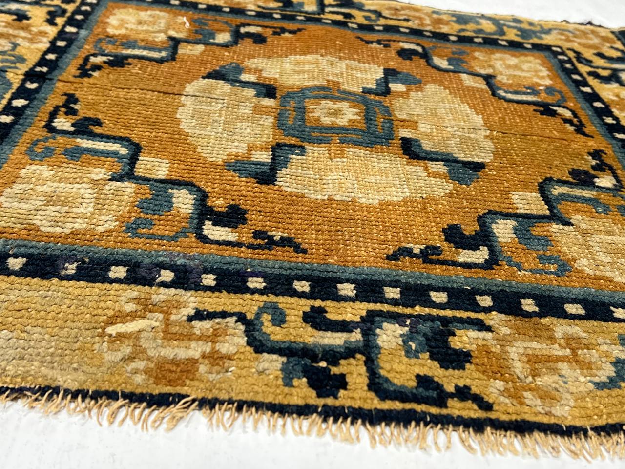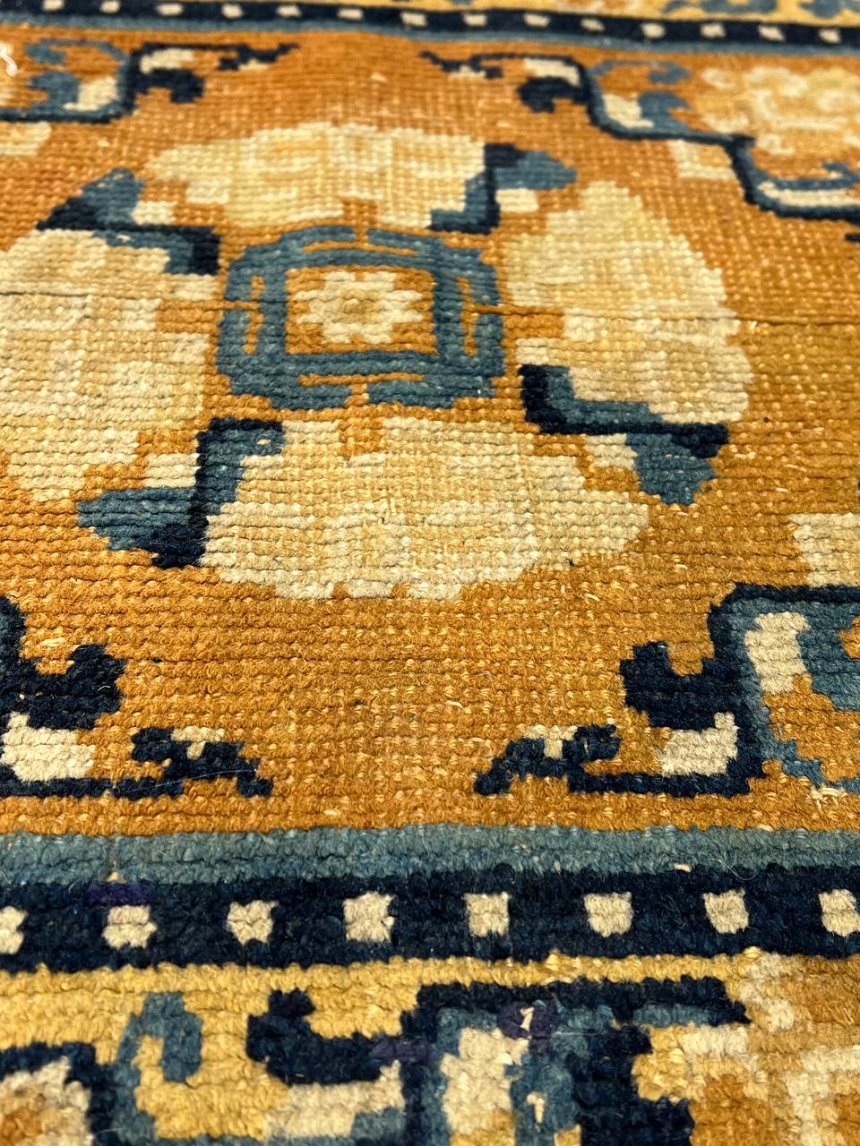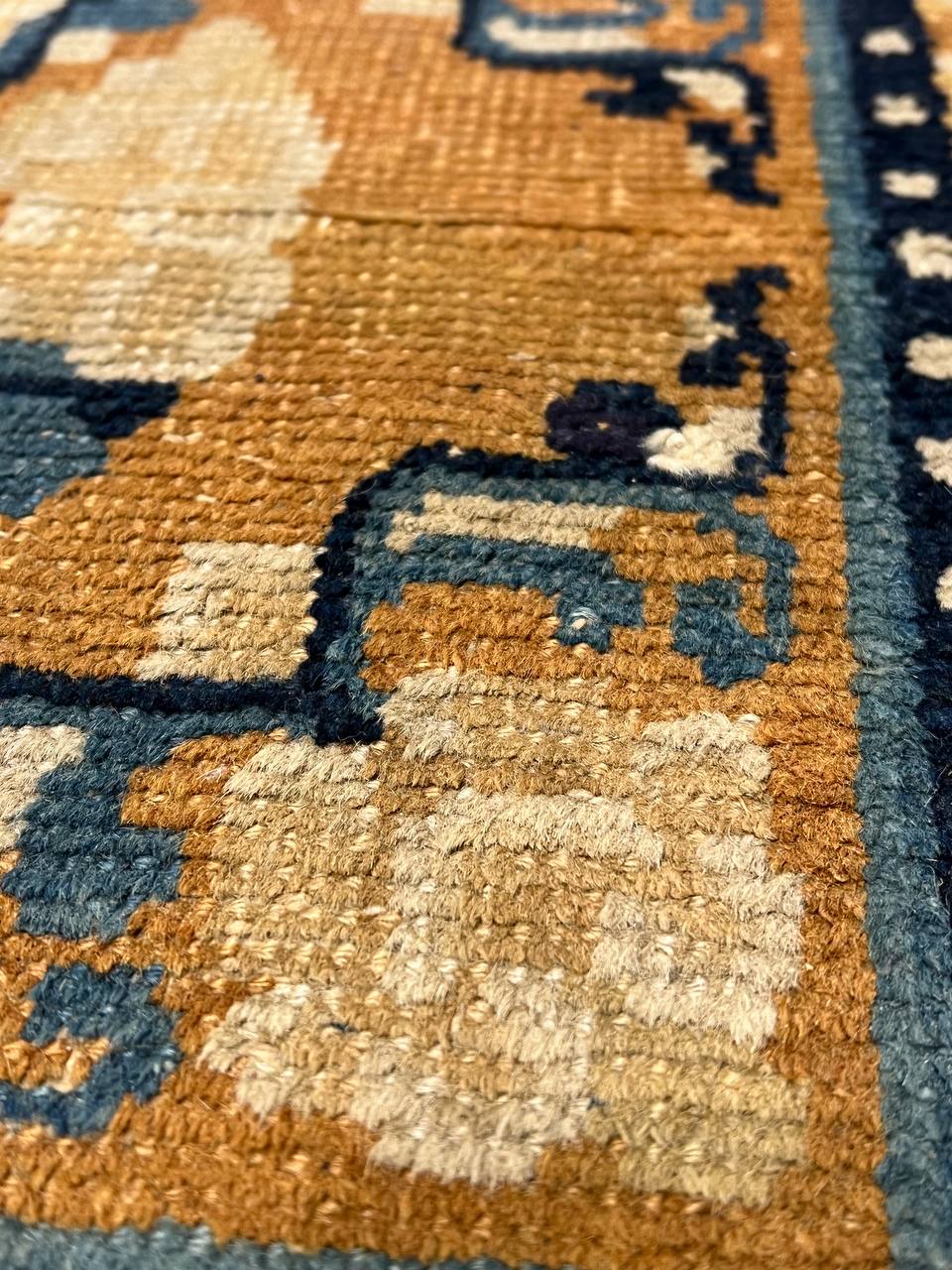 Ningxia is located in a harsh mountainous region are Northwestern China. It borders Mongolia and sits on the plain of the Yellow River, bounded by the Great Wall of China on its Northeastern border. The climate of this region made it perfect for growing strong, yet soft wool. Little is known about antique rugs from this region before the 17th century because of its remote location. A visit from the Kangxi Emperor in 1696 and 1697 brought these carpets to the world. He was struck by the beauty and quality of the carpets he found and decided to establish a royal carpet weaving center in the area.
