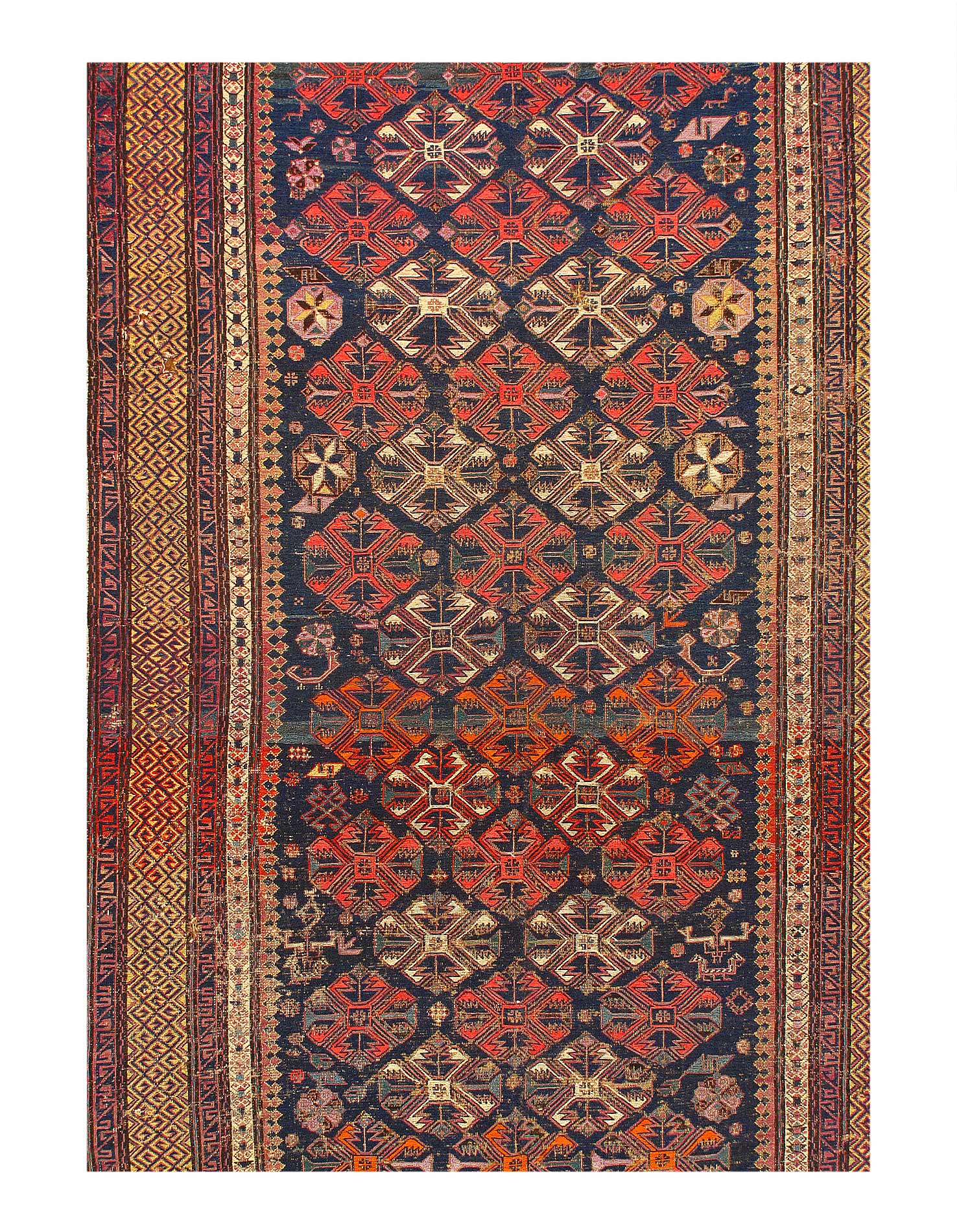 The rug is mostly see the corrasion of the dark brown, tell you the rug is from the 19 ct.