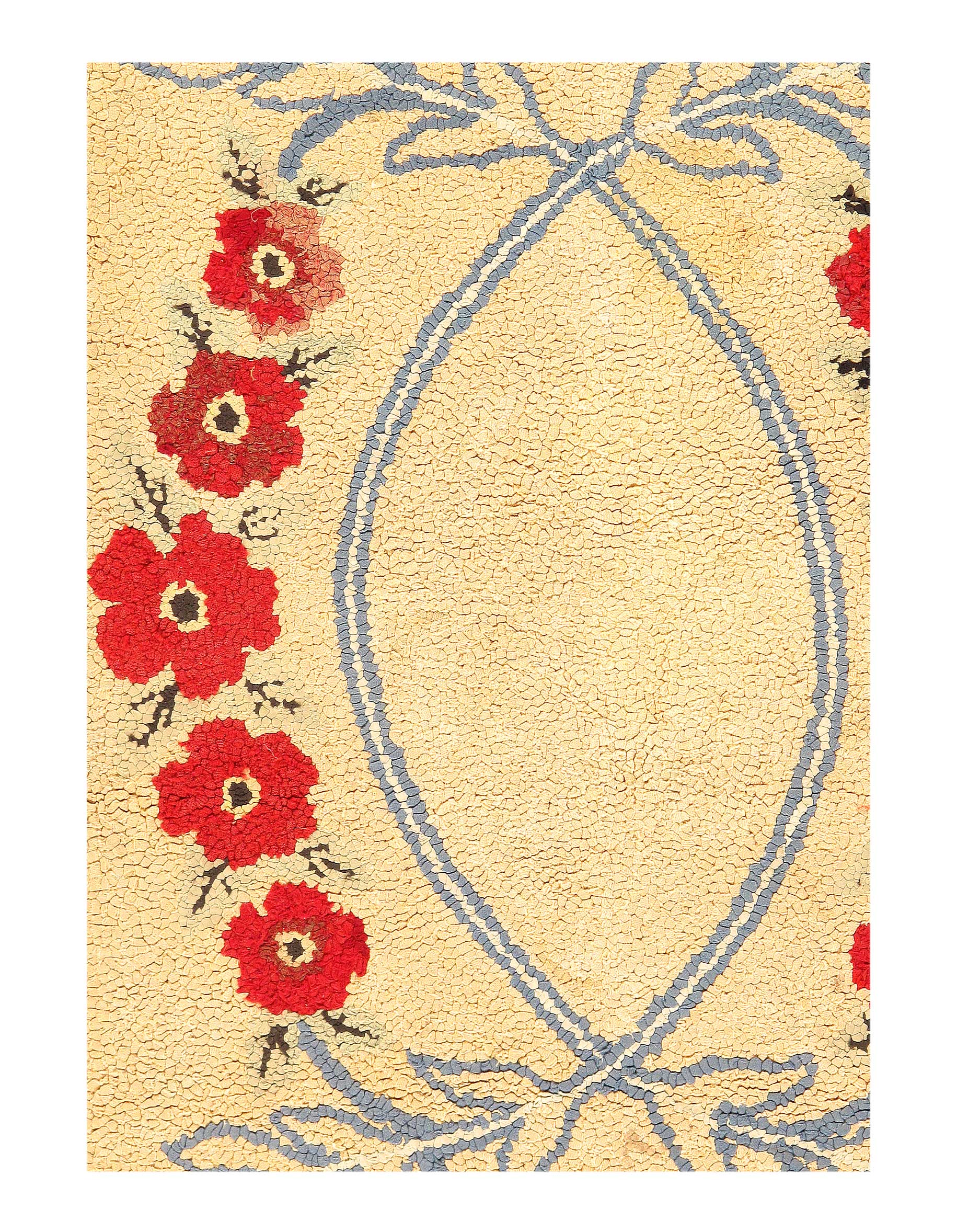 beautiful and Early Antique American Hooked Rug, Country of Origin: American, Circa Date: Early 20th Century – Ingenious in its style, color and composition, this spectacular antique American hooked rug features a splendid allover pattern that creates an illusion of depth and texture. The beautiful basket-weave pattern with its poly-chromatic stripes follows a strict under-over form that sets it apart from the monochromatic and subtly variegated squares featured in the background. Like a patchwork quilt that incorporates innumerable colors and prints, this stunning antique hooked rug is a joy to behold. The varied earth-tone hues are juxtaposed beautifully against the vivid pink, vermillion and turquoise accent colors that are set between the basket-weave stripes. This outstanding antique rug, an American hooked carpet illustrates the amazing versatility of a simple geometric repeating pattern, which is executed in a way that is full of color, texture and visual appeal.