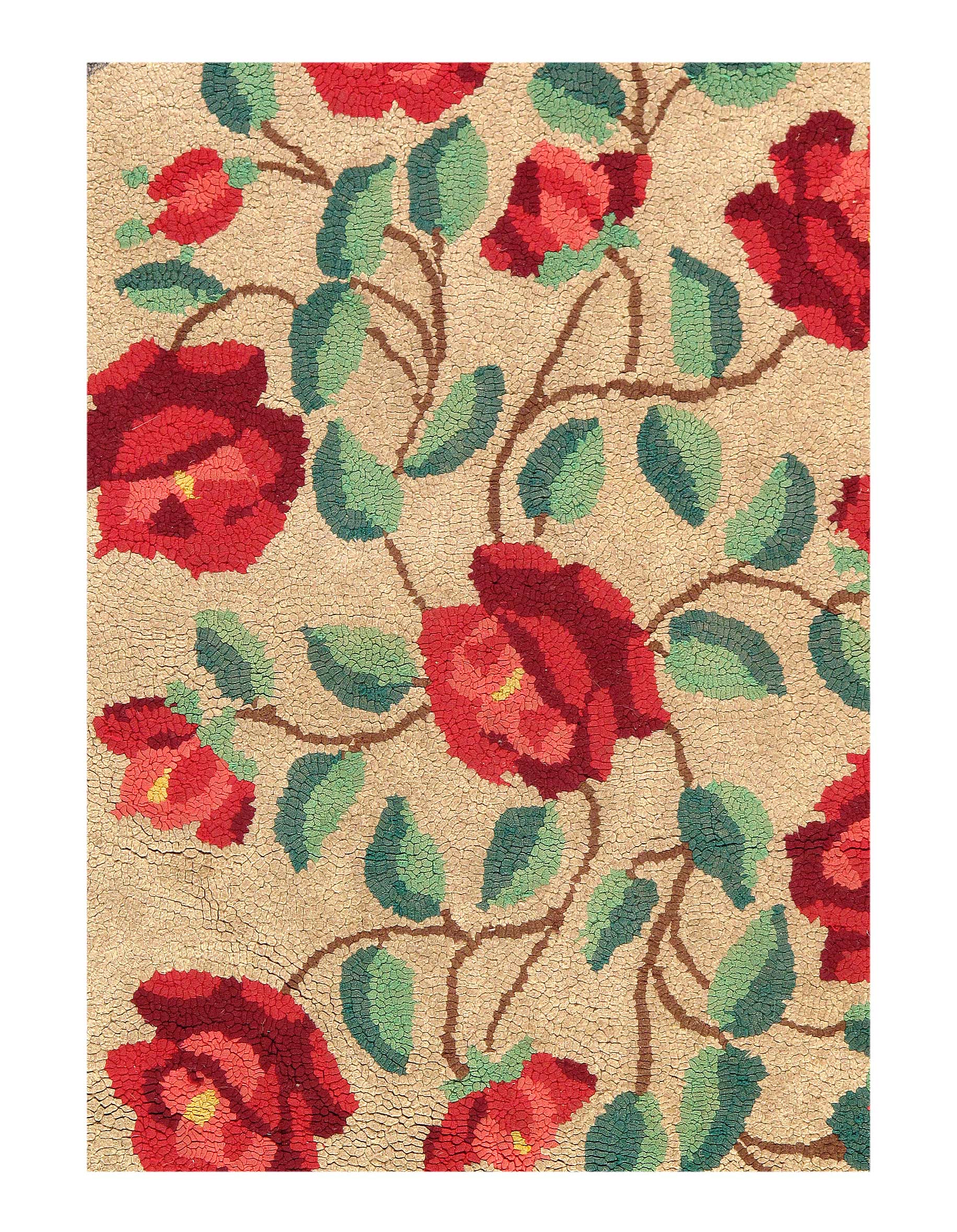 beautiful and Early Antique American Hooked Rug, Country of Origin: American, Circa Date: Early 20th Century – Ingenious in its style, color and composition, this spectacular antique American hooked rug features a splendid allover pattern that creates an illusion of depth and texture. The beautiful basket-weave pattern with its poly-chromatic stripes follows a strict under-over form that sets it apart from the monochromatic and subtly variegated squares featured in the background. Like a patchwork quilt that incorporates innumerable colors and prints, this stunning antique hooked rug is a joy to behold. The varied earth-tone hues are juxtaposed beautifully against the vivid pink, vermillion and turquoise accent colors that are set between the basket-weave stripes. This outstanding antique rug, an American hooked carpet illustrates the amazing versatility of a simple geometric repeating pattern, which is executed in a way that is full of color, texture and visual appeal.