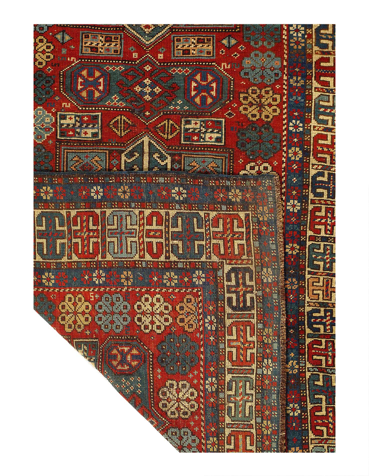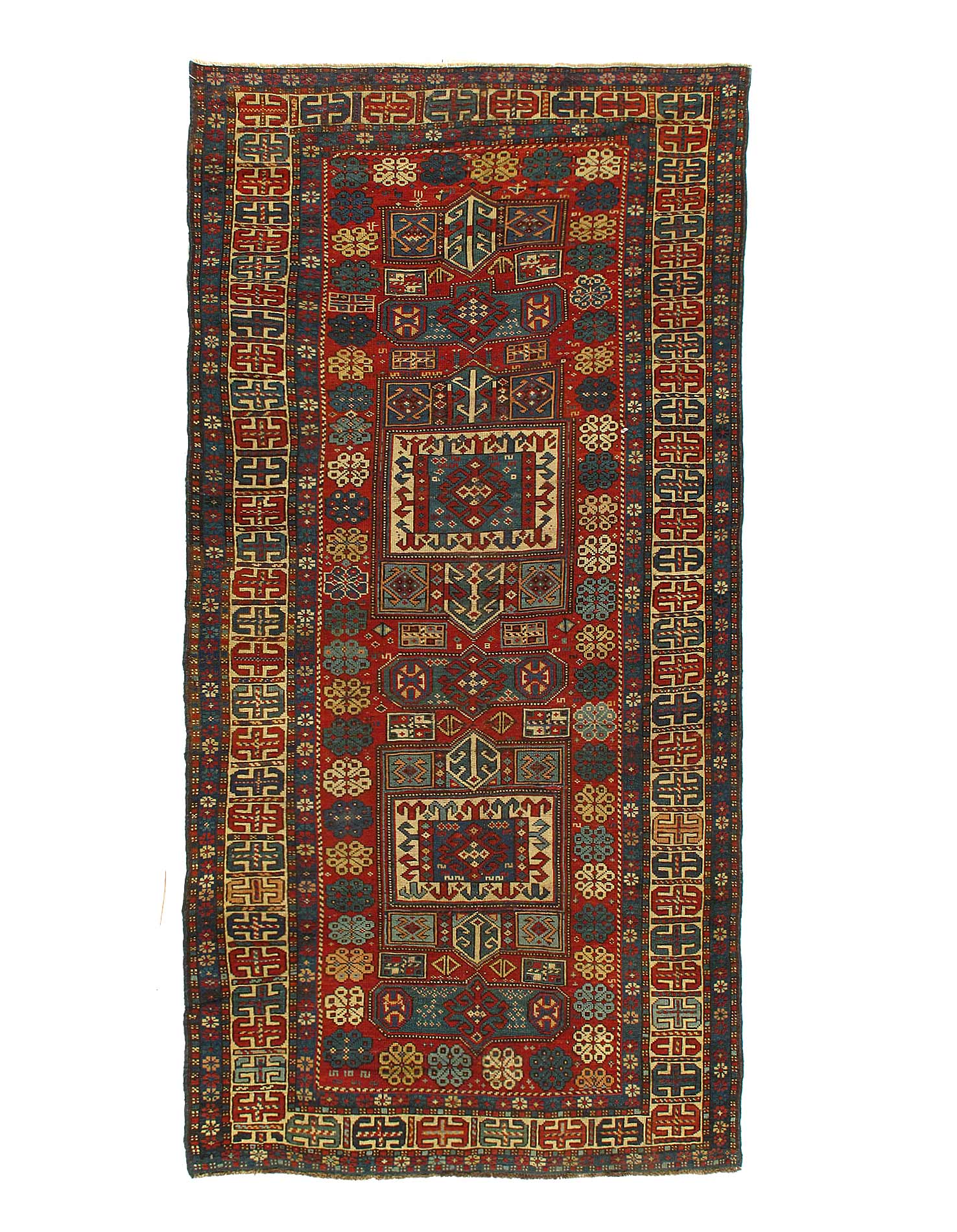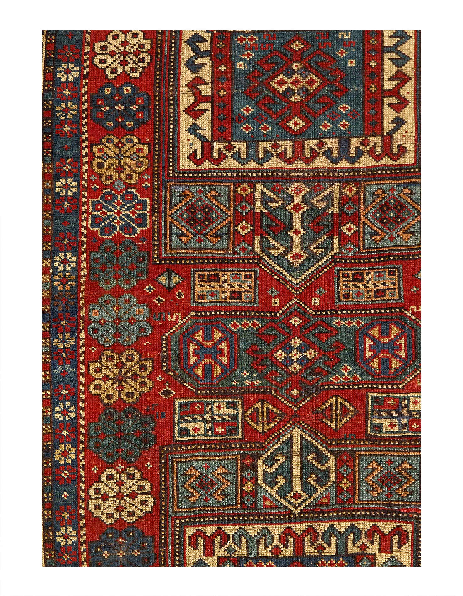 One of the elements that makes this carpet stand out among Kazak carpets is the diversity and number of different symbols that you find throughout its design. Weavers pass down these traditional symbols and patterns through poetry, song, and a rich oral tradition. They build a repertoire over time, and this example indicates a weaver of exceptional skill and an extensive repertoire that only comes from experience.