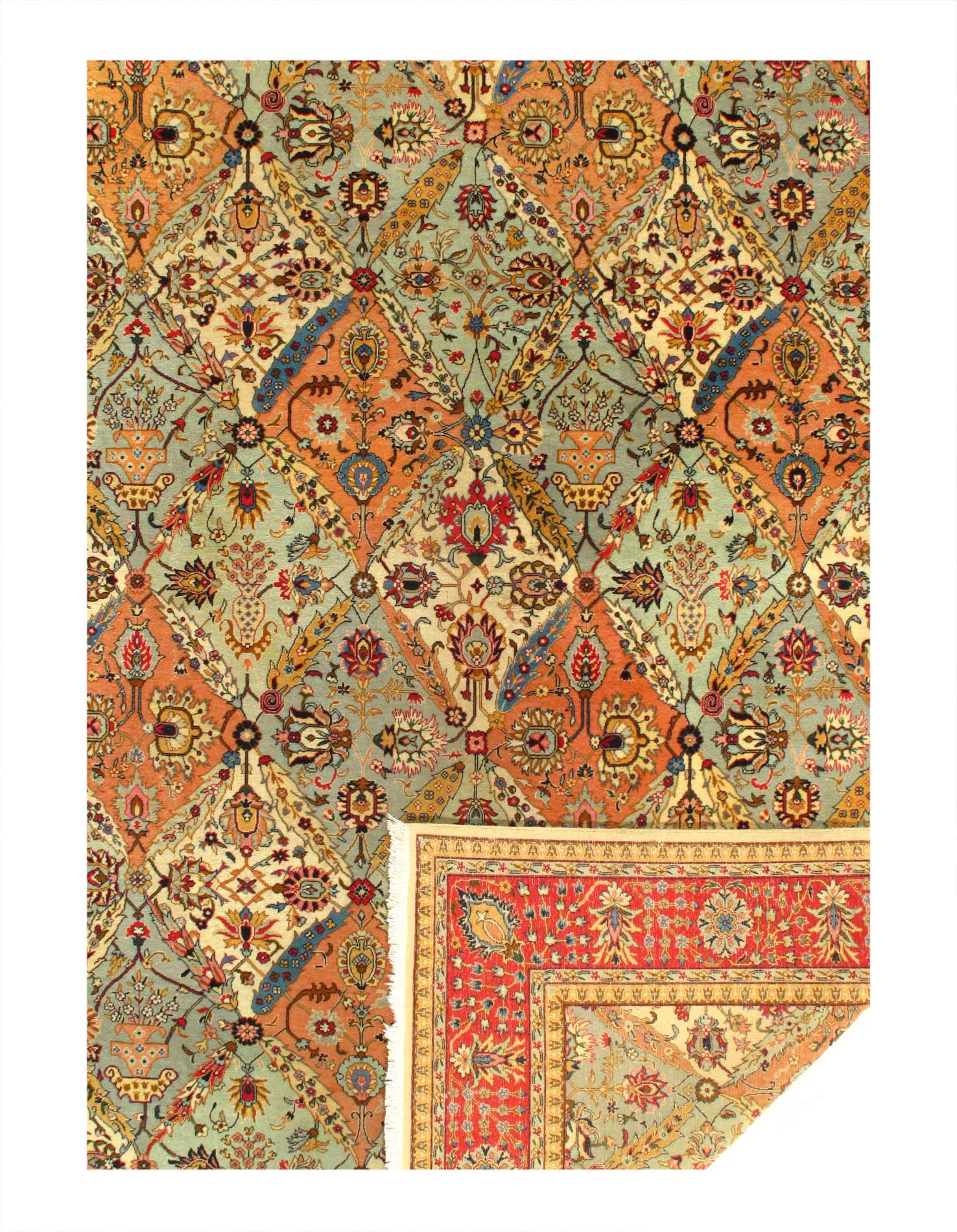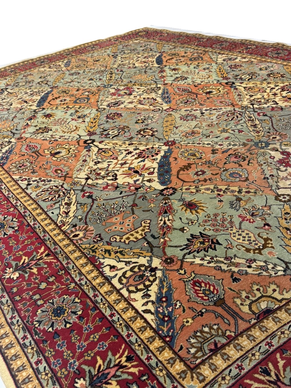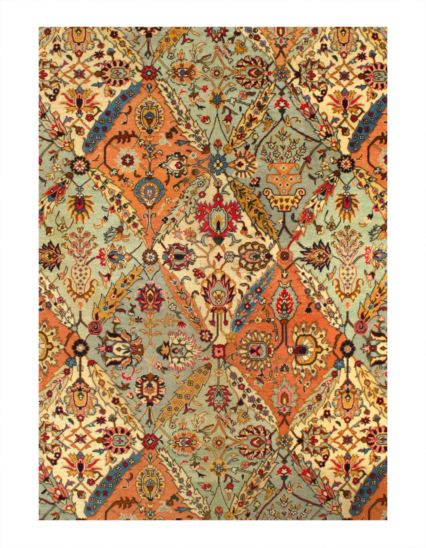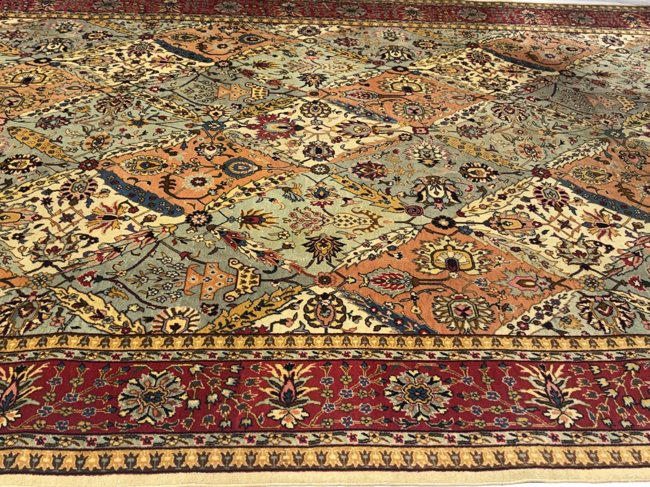 Magnificent Garden Design Room Size Antique Persian Tabriz Rug, Country of Origin / Rug Type: Persian Rug, Circa Date: 1920 β This beautiful antique rug is an excellent example of why Tabriz remained a Persian rug making center that was known for its exquisite artistry for many hundreds of years. This antique Persian Tabriz rug dates back to around the 1920βs and features a beautiful rendition of the iconic garden design. The colorful designs of the antique Persian rug present the viewer with glimpses into little garden scenes, as if they were peering at them through a window.