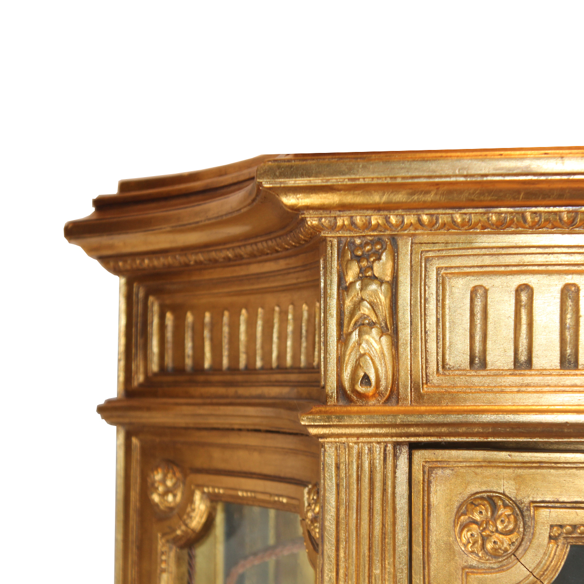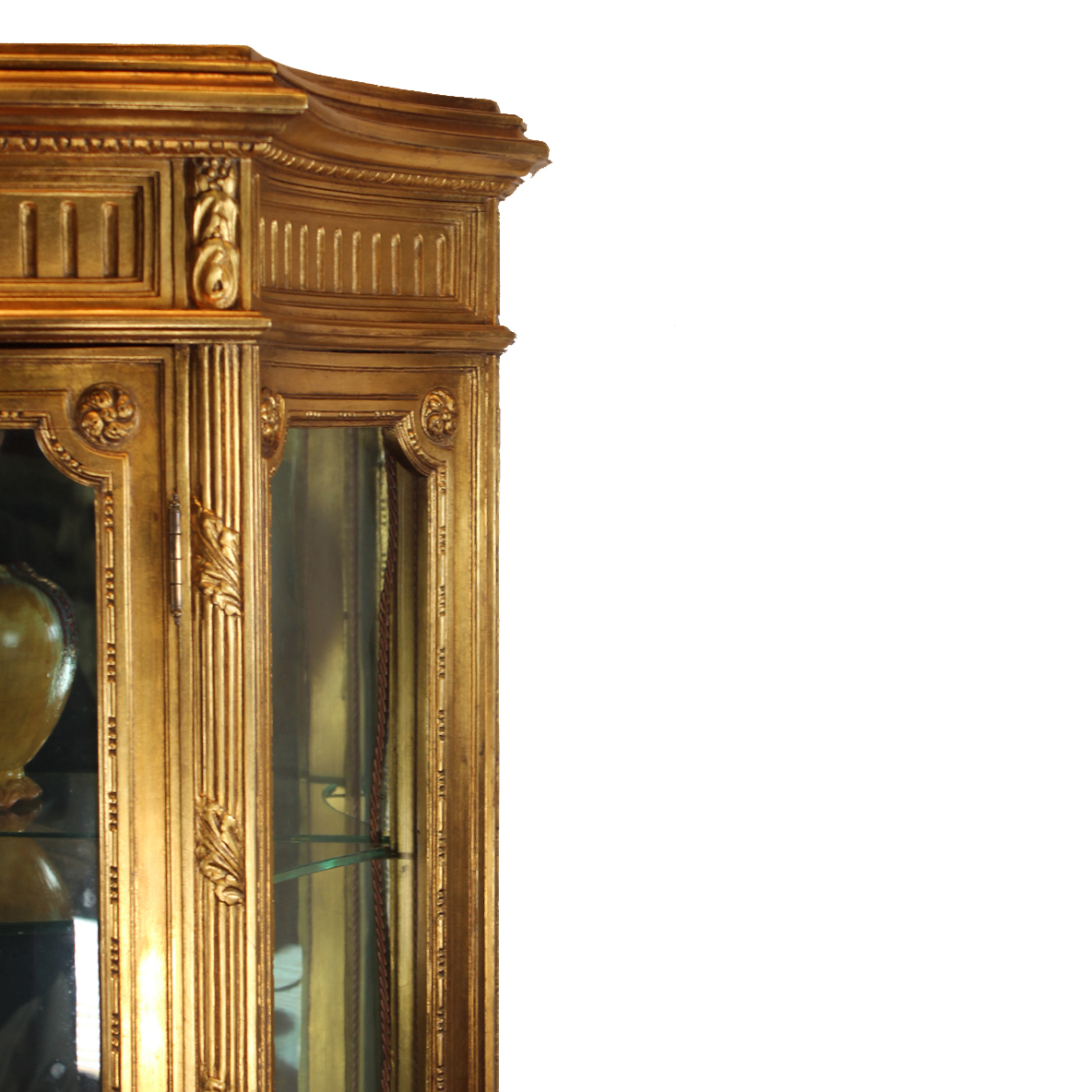 Italian hand-carved Antique Showcase. Gold-leaf. Lighted Velvet interior