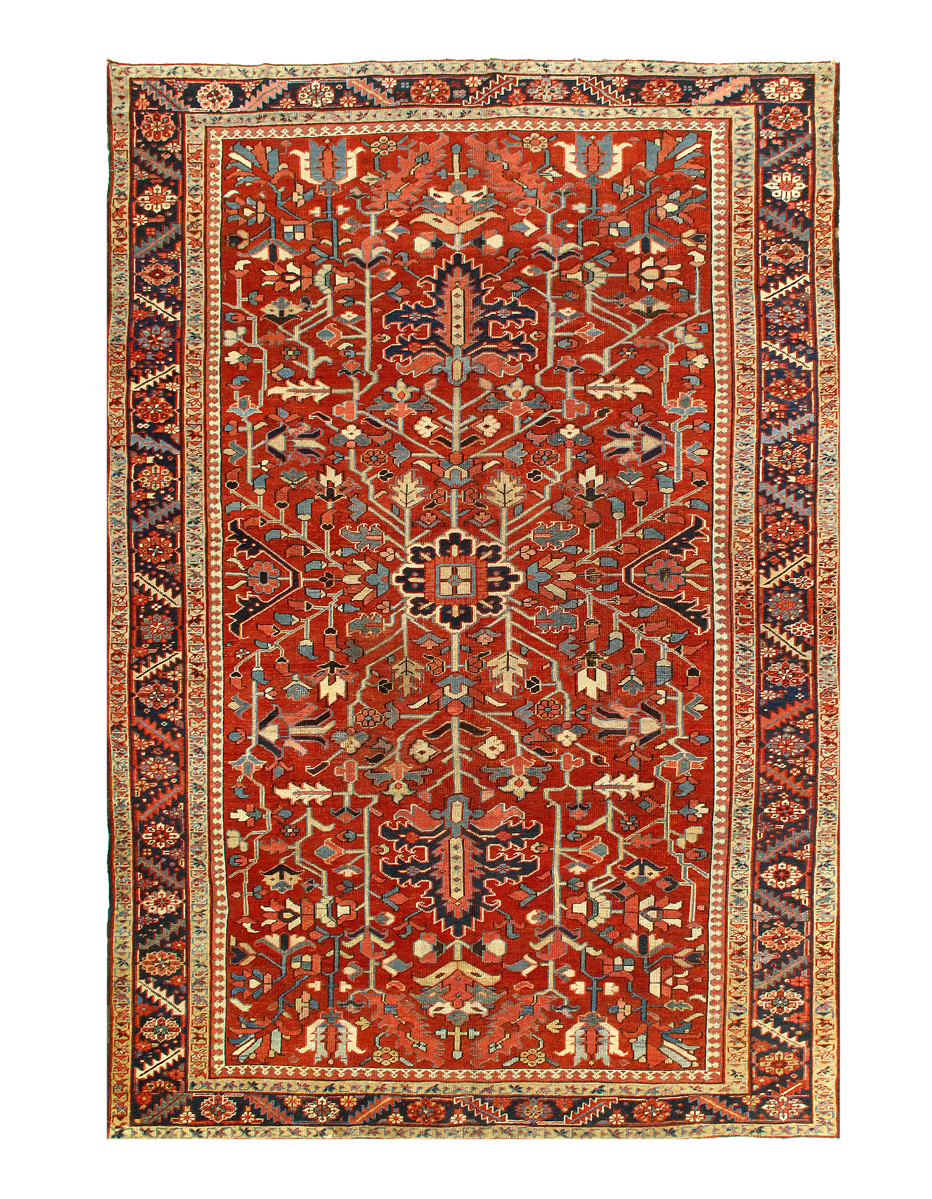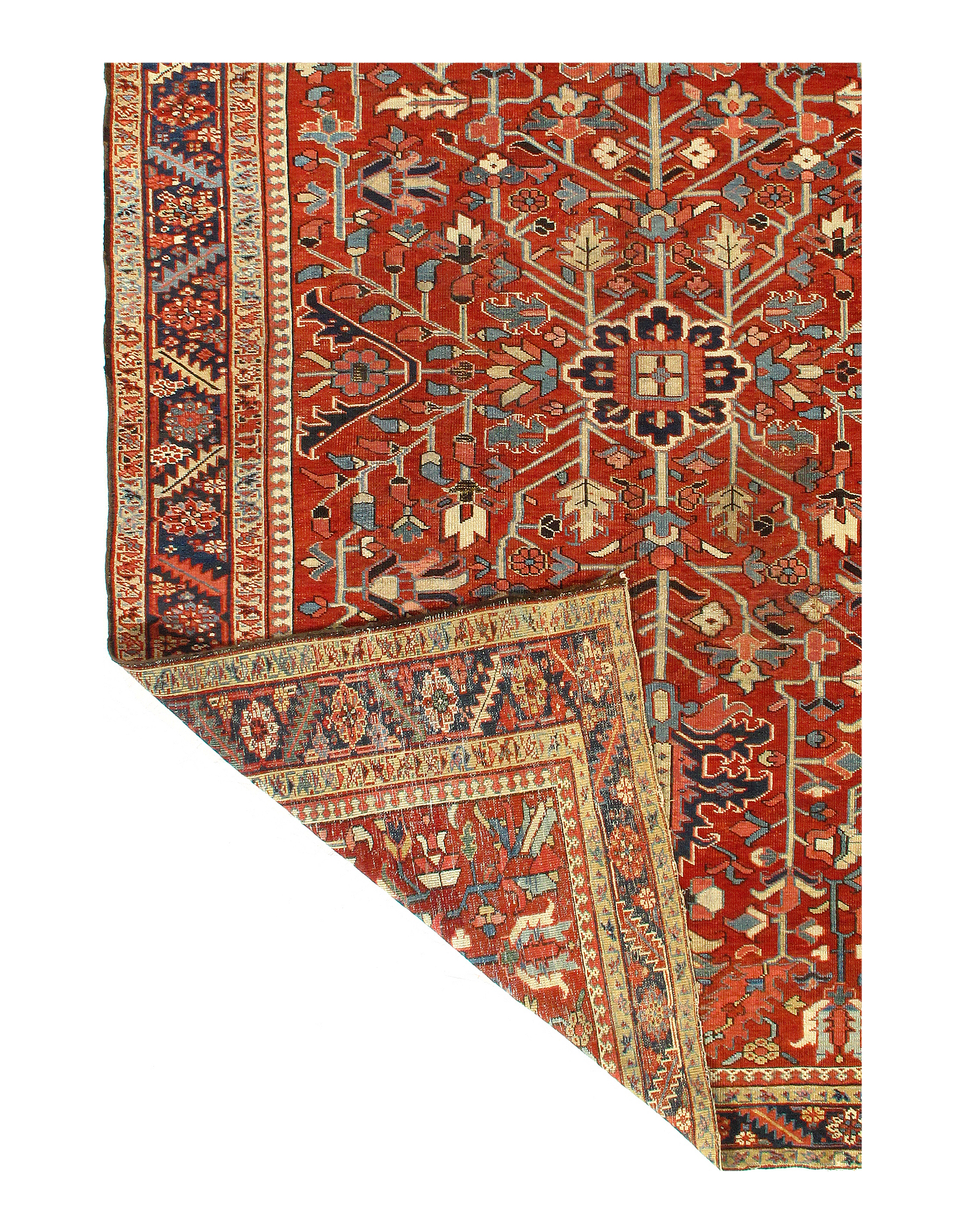 Antique hand-knotted Heriz rug. These rugs feature 100% fine pure lambswool, hand-knotted on a cotton foundation into elegant designs, perfect for your elegant decor. This rug has a dense, soft pile, and excellent quality, to ensure that you will enjoy the look and feel of your rug for years to come. Very practical for high traffic and everyday use. From Persia.