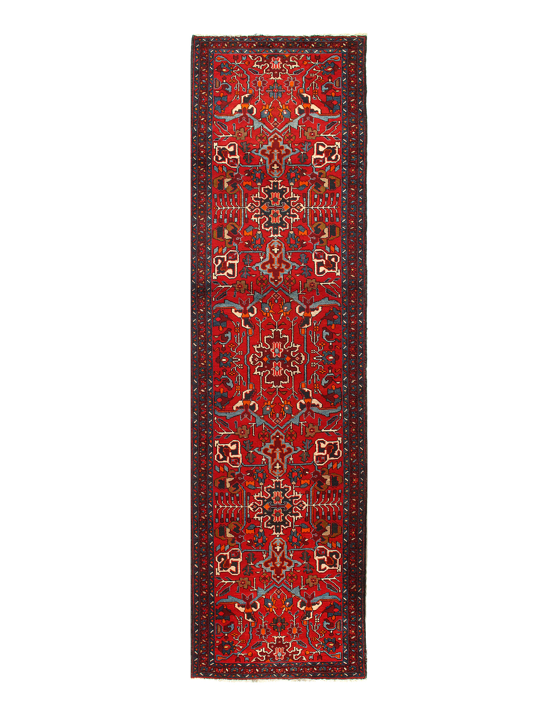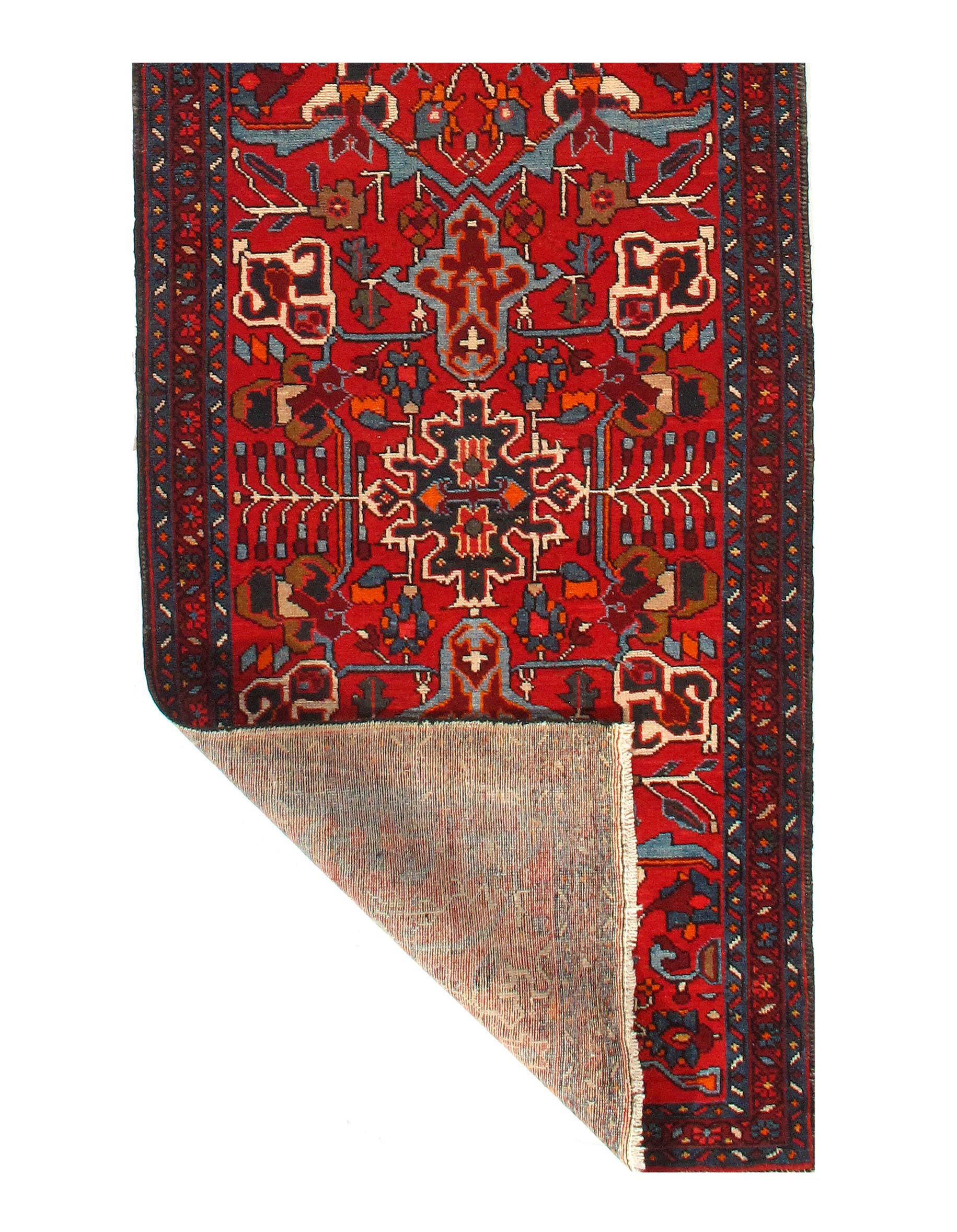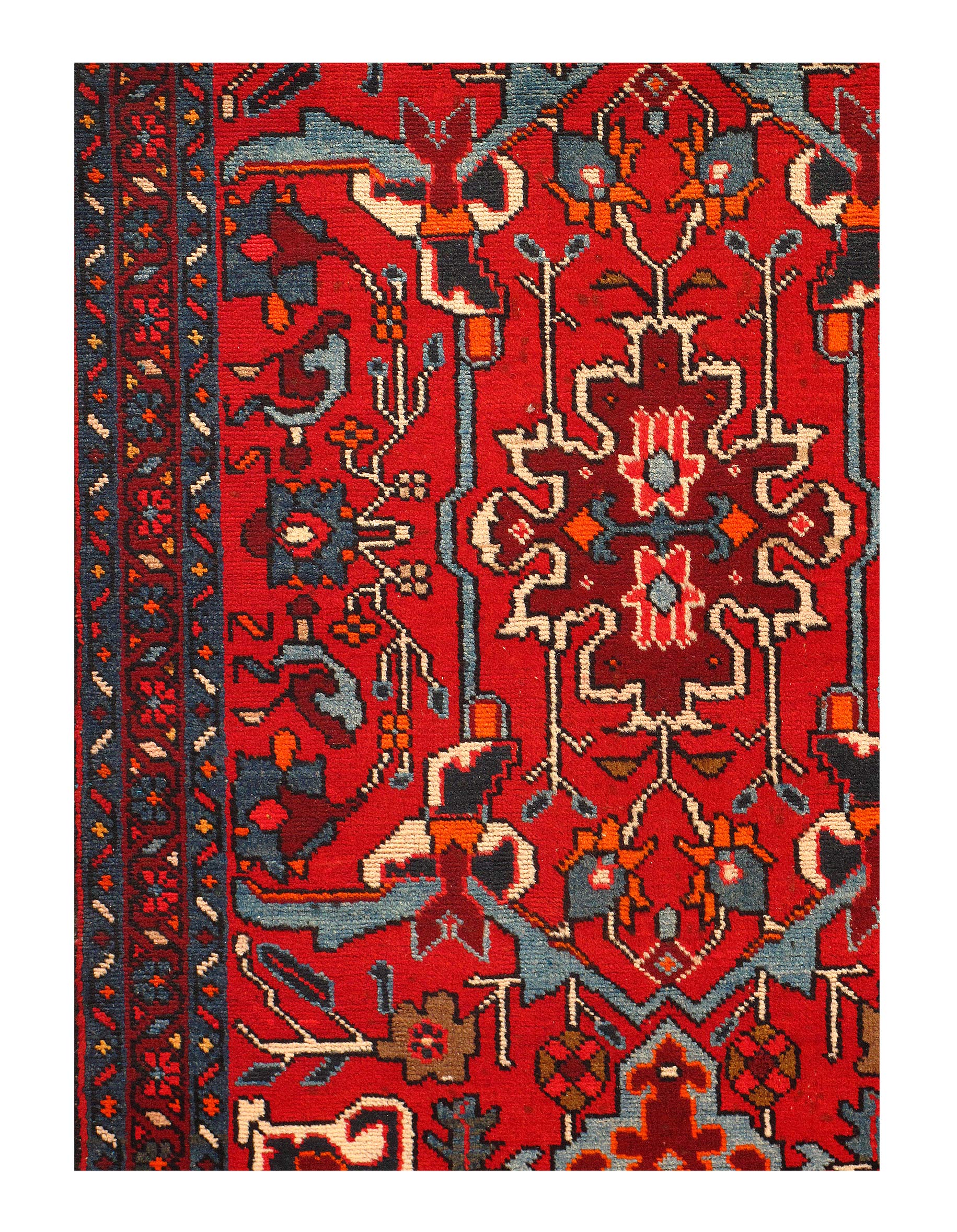 Original Persian Karajeh Antique Heriz Family. Lamb's Wool on a Cotton Foundation. Hand-Spun Wool Rug. Vegetable Dyed. This rug has a dense, soft pile, and excellent quality, to ensure that you will enjoy the look and feel of your rug for years to come. Circa 1920