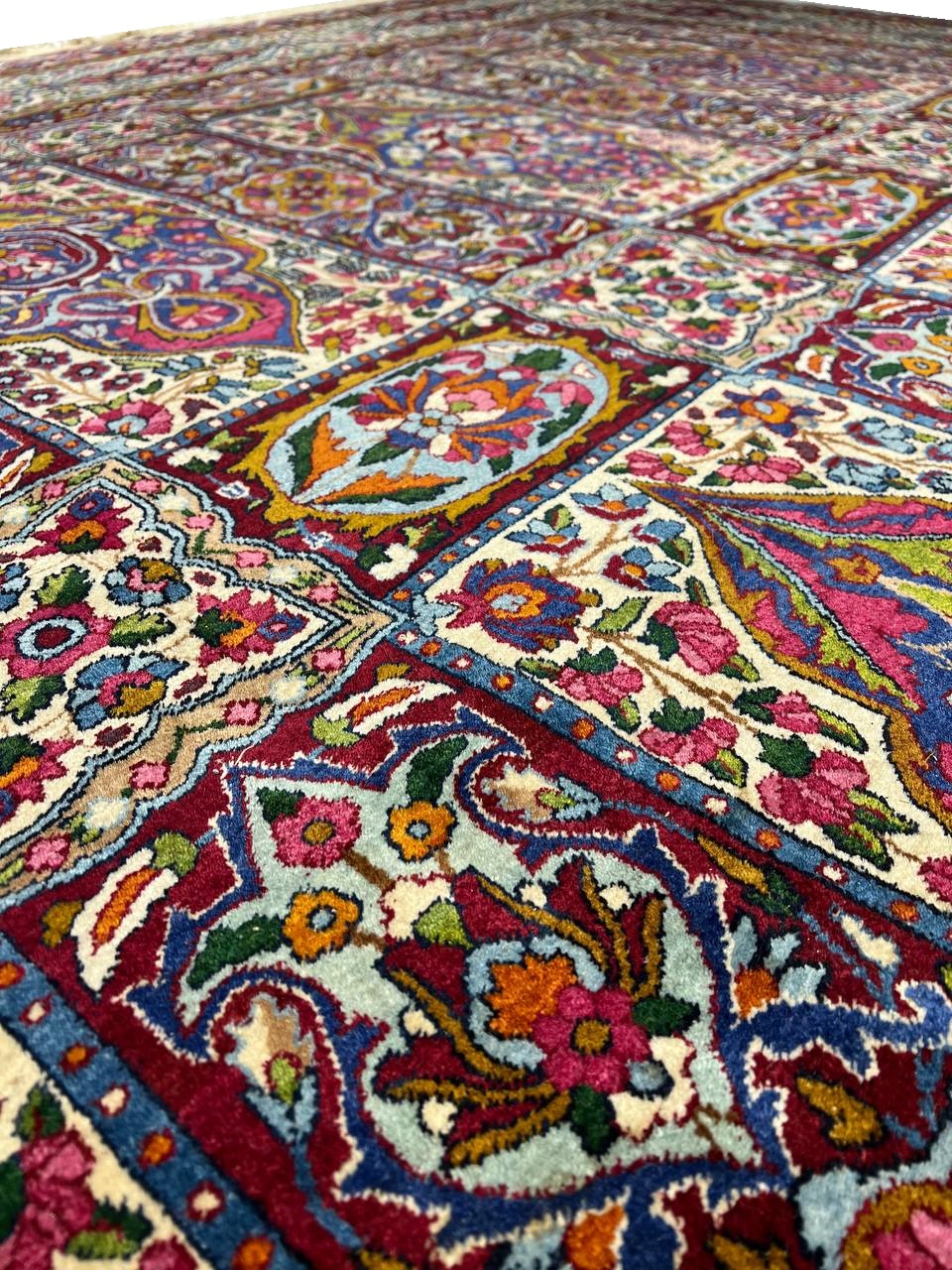 Beautiful and Extremely Fine Vintage Millefleur Persian Kerman Rug, Country of Origin / Rug Type: Antique Persian Rugs, Circa Date: Vintage Mid 20th Century – Millefleur literally means 1,000 flowers and this is the perfect way to describe this stunning Persian Kerman rug. This extremely detailed and beautiful mid-century modern rug is perfect for a large size room that needs a piece of grand enough scale to fill the space.