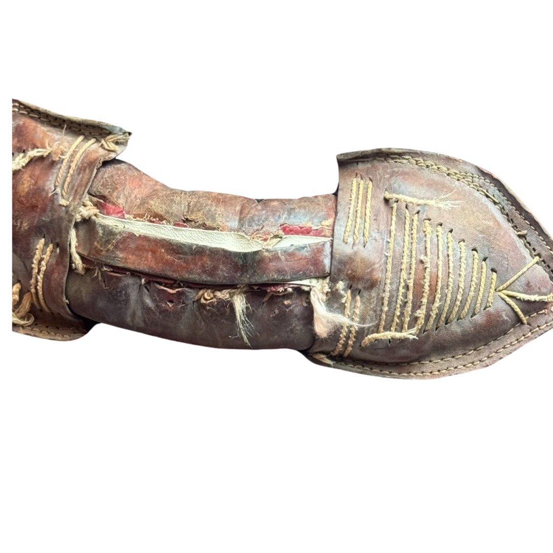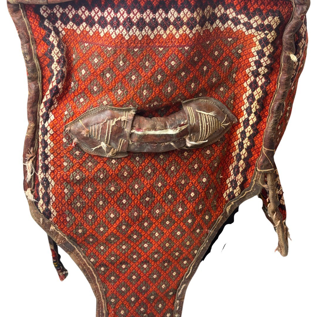 The materials are from vegetable dyes wool pile over cotton foundation with leather accierisse . The pattern is geometric style.