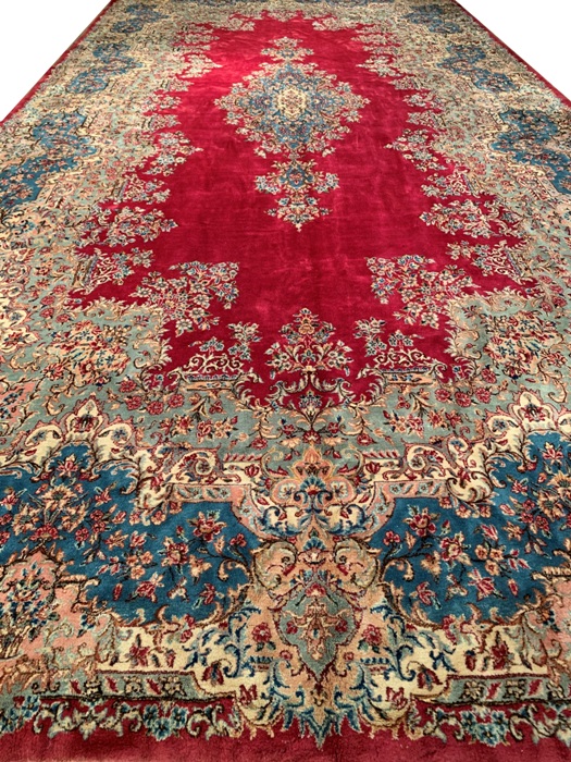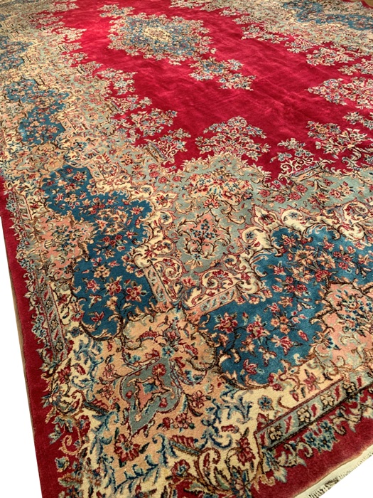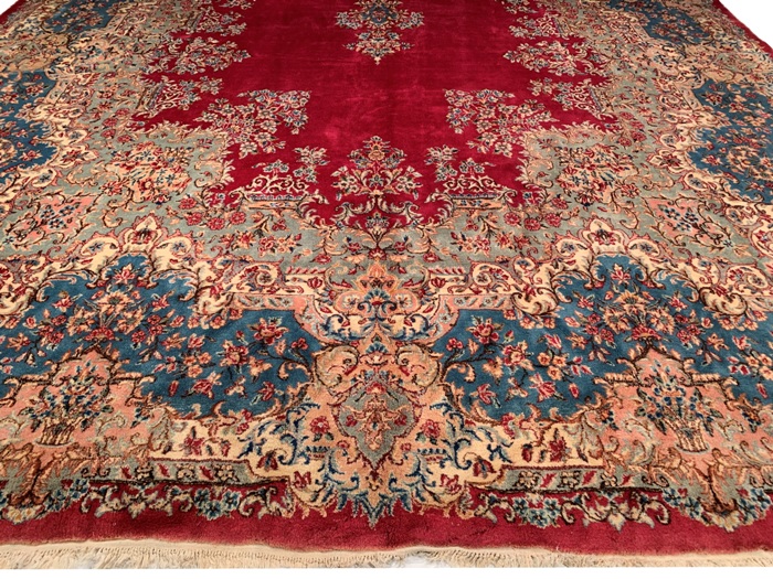 Semi-Antique Persian Royal Kerman Hand-knotted lamb's wool on cotton foundation. Vegetable Dyed This rug has a dense, soft pile, and excellent quality, to ensure that you will enjoy the look and feel of your rug for years to come. Circa 1950