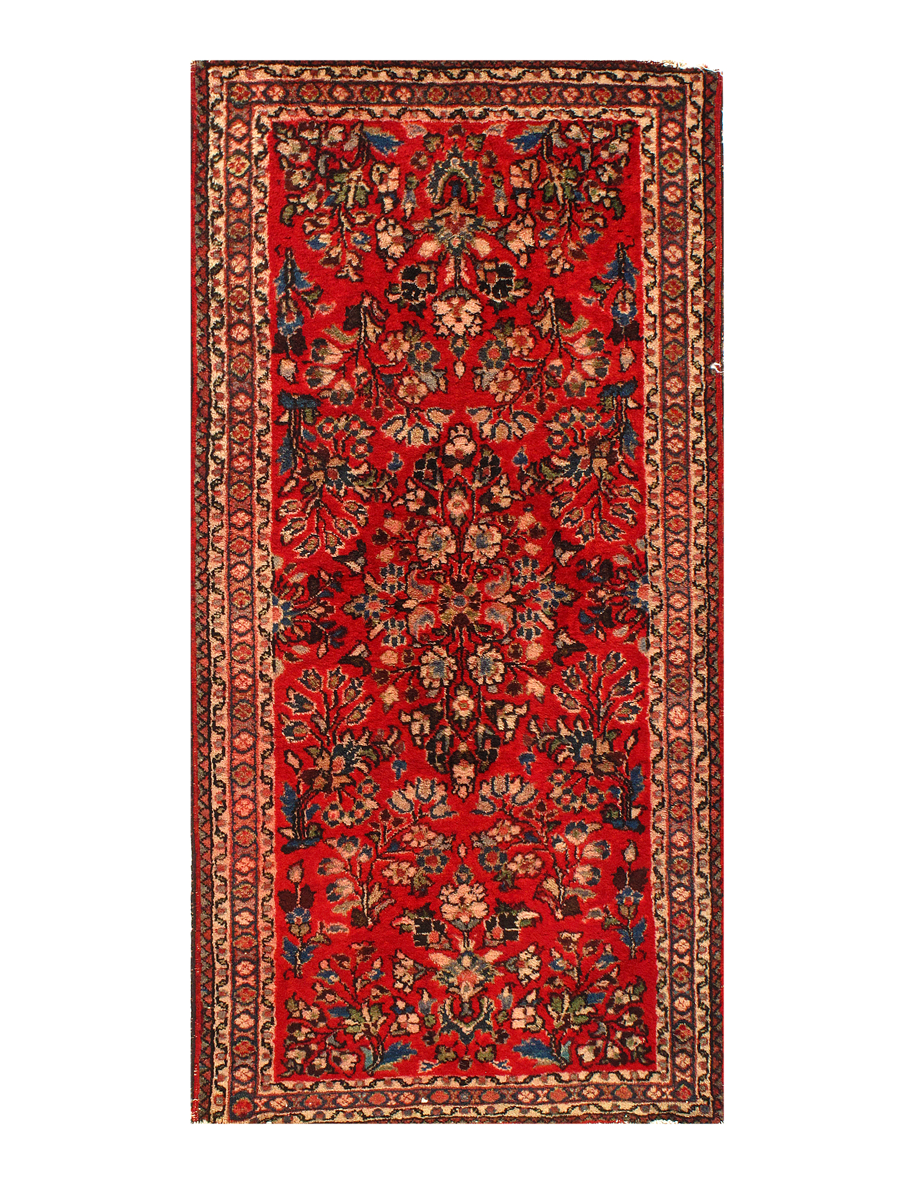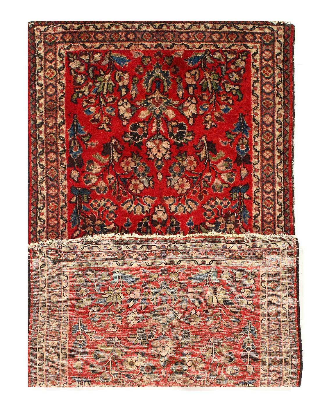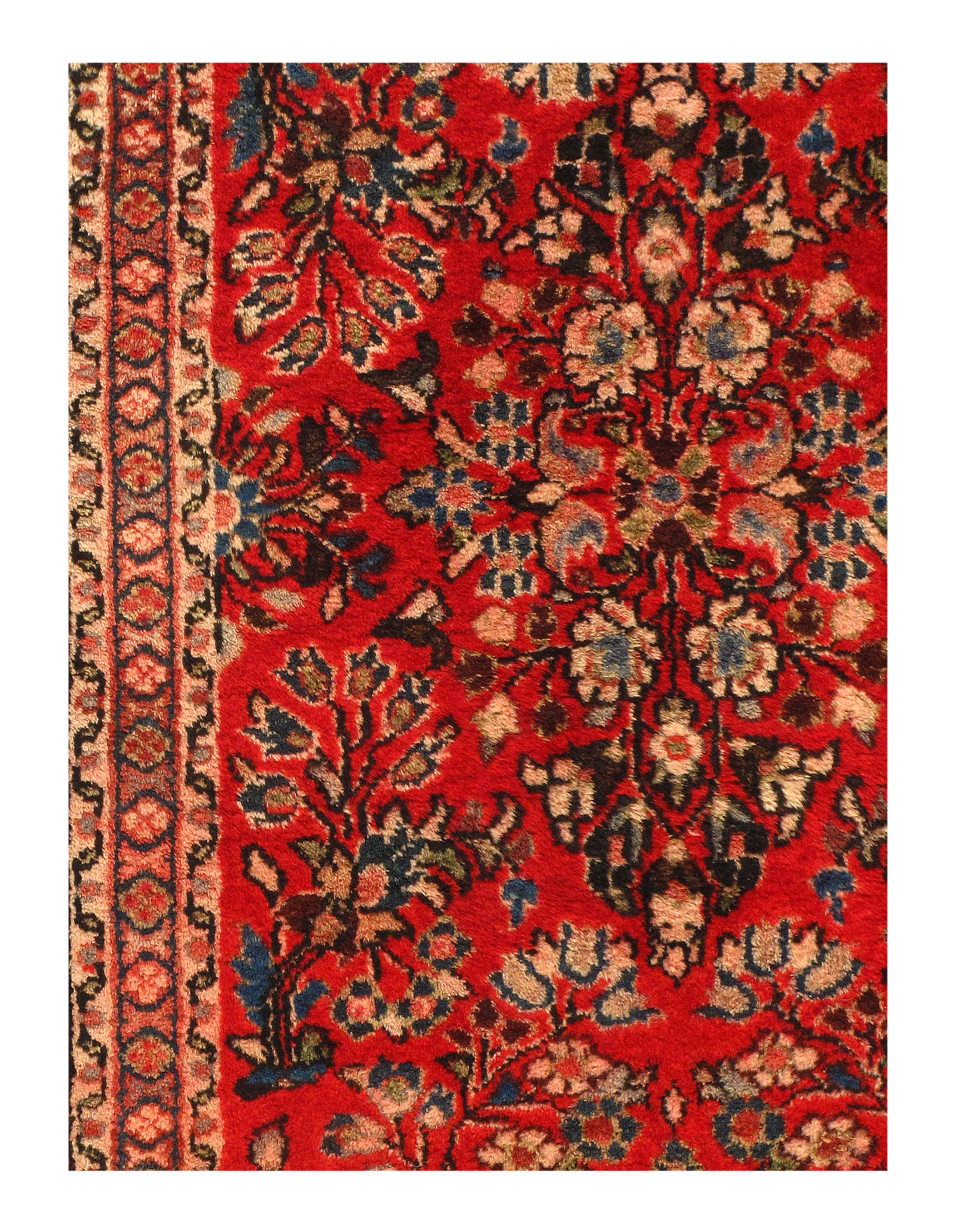 Antique Persian Sarouk rug. These vintage rugs bring traditional sophistication to your home. These rugs feature 100% premium lamb's wool pile hand-knotted into elegant designs, perfect for your elegant decor. Circa 1920.