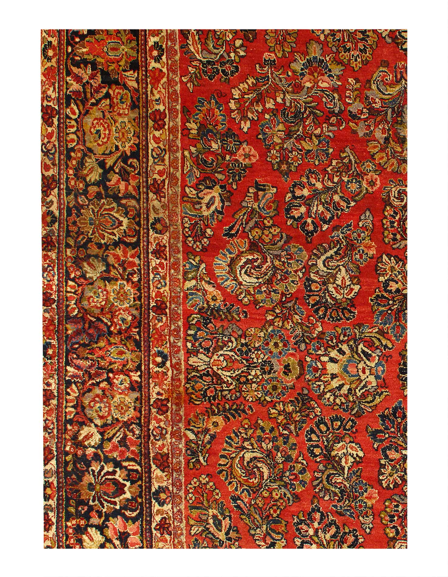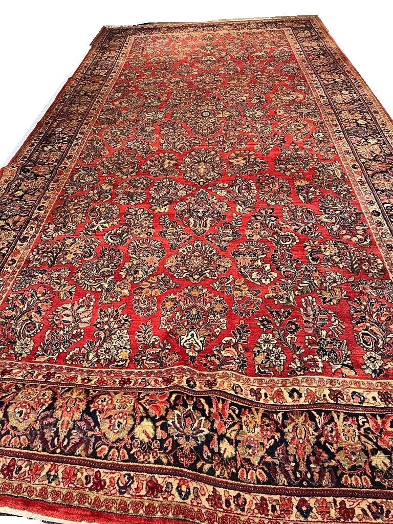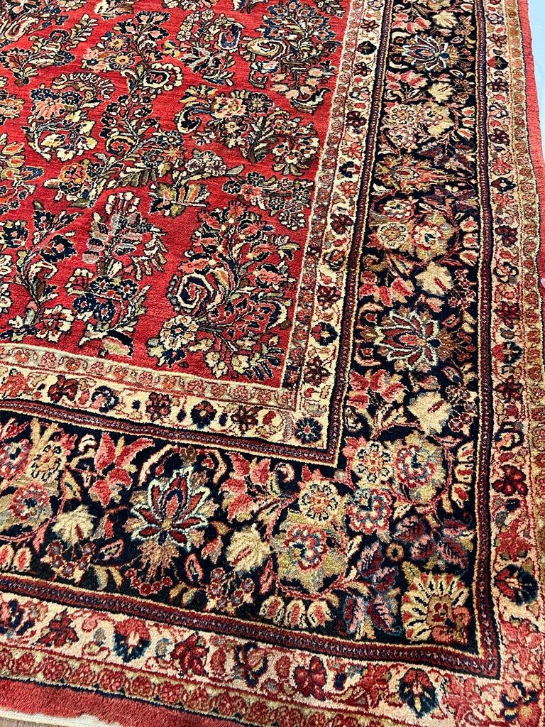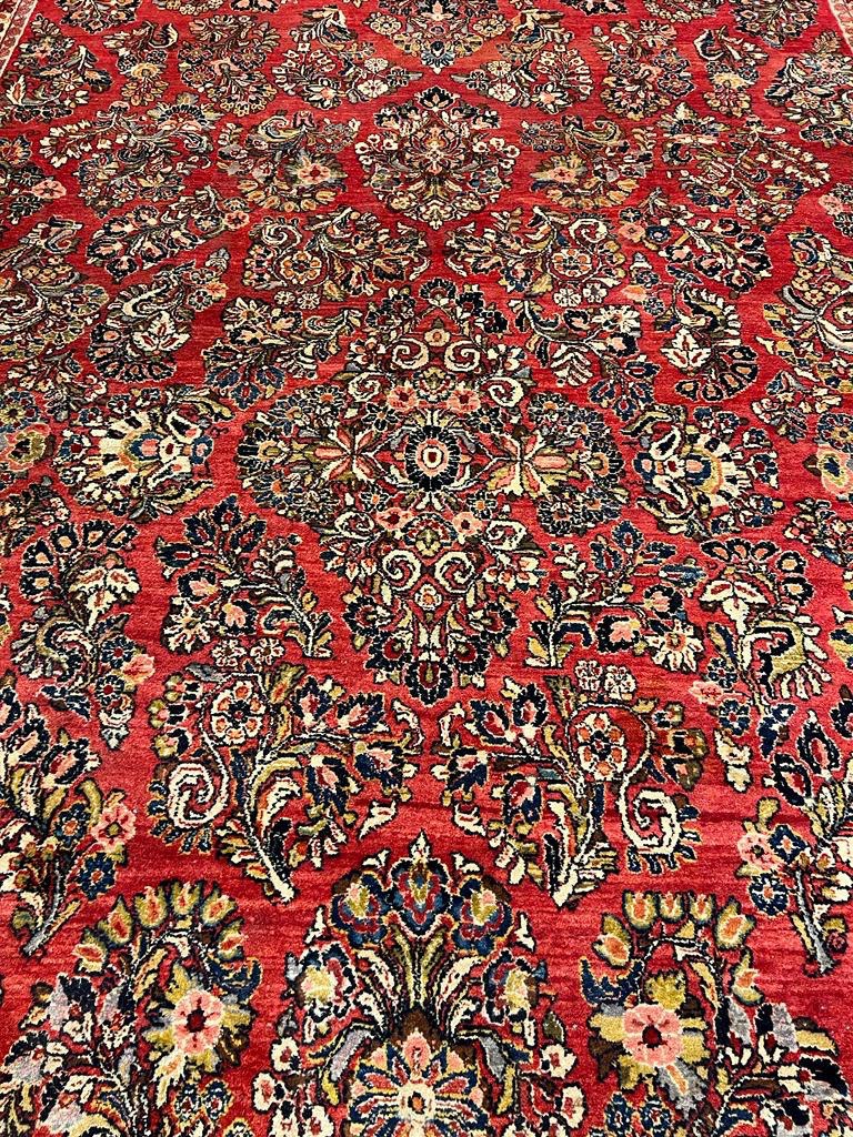 Antique Persian Sarouk rug. These vintage rugs bring traditional sophistication to your home. These rugs feature 100% premium lamb's wool pile hand-knotted into elegant designs, perfect for your elegant decor. Circa 1920.