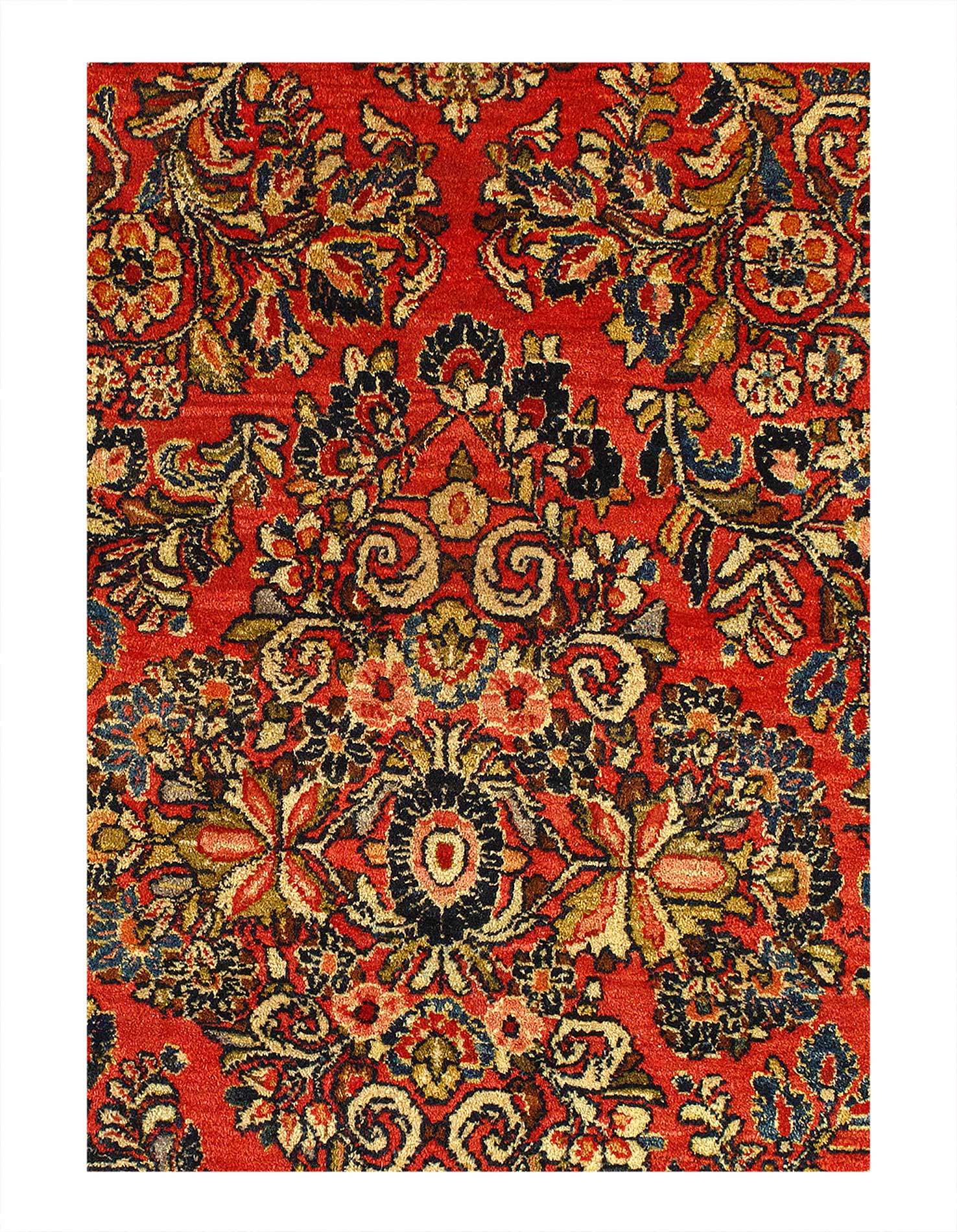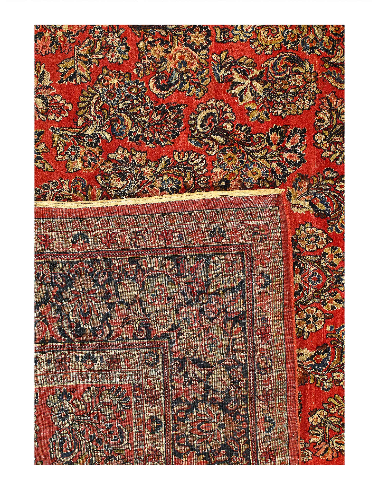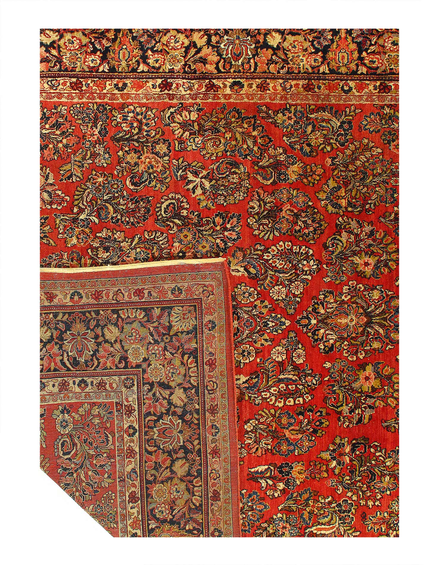 Antique Persian Sarouk rug. These vintage rugs bring traditional sophistication to your home. These rugs feature 100% premium lamb's wool pile hand-knotted into elegant designs, perfect for your elegant decor. Circa 1920.