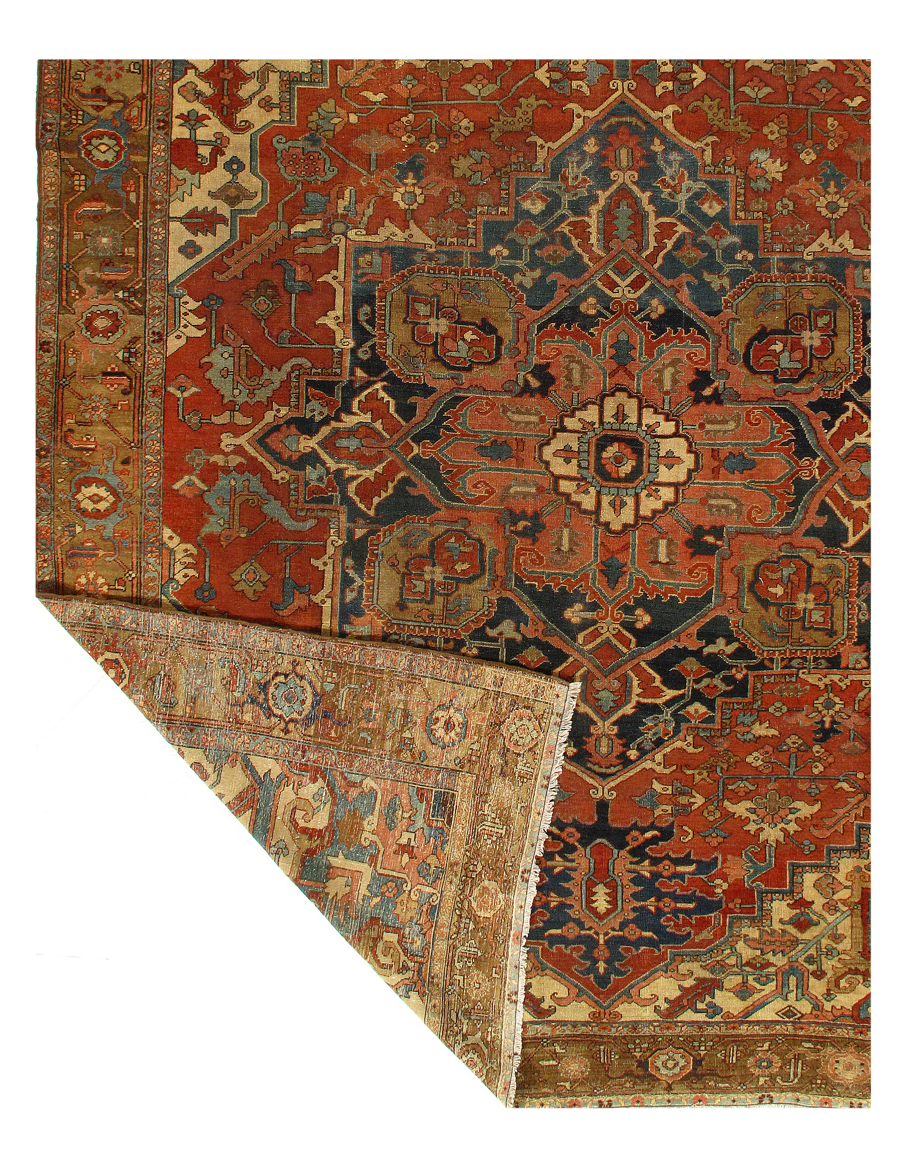 Antique Persian Serapi Lamb's Wool rug on a cotton foundation These rugs feature 100% fine pure lambs wool, hand-knotted into elegant designs, perfect for your elegant decor. This rug has a dense, soft pile, and excellent quality, to ensure that you will enjoy the look and feel of your rug for years to come