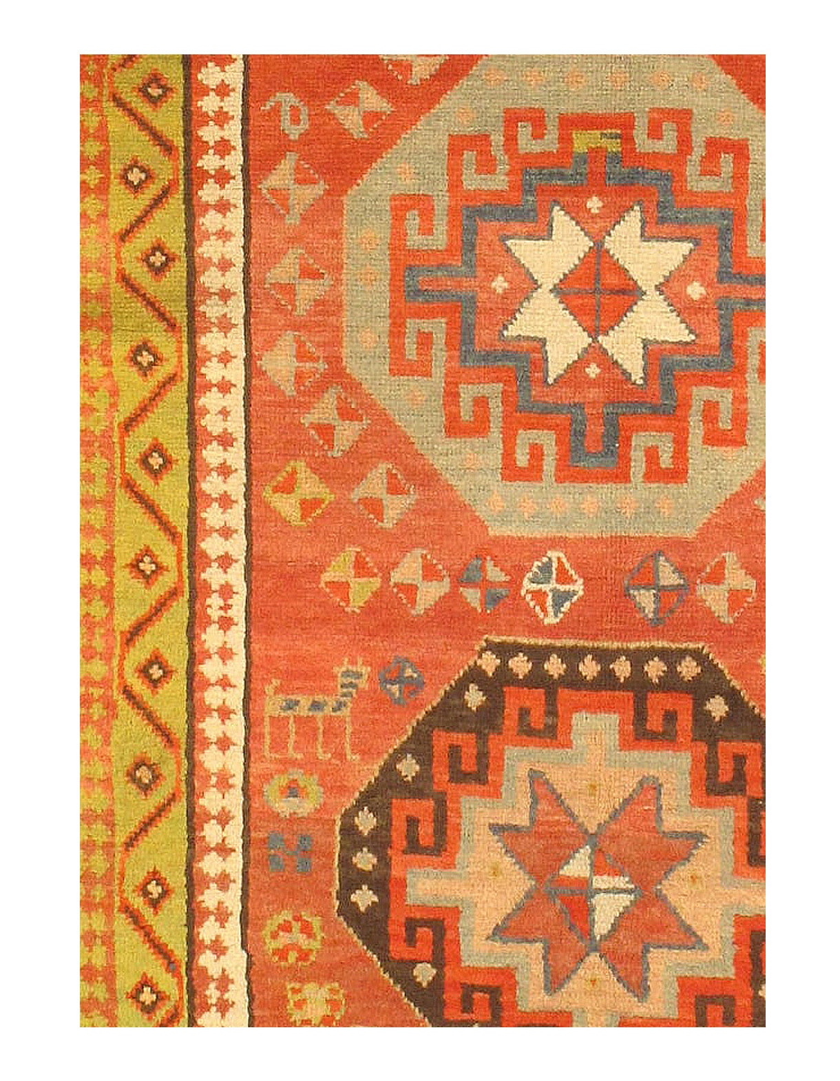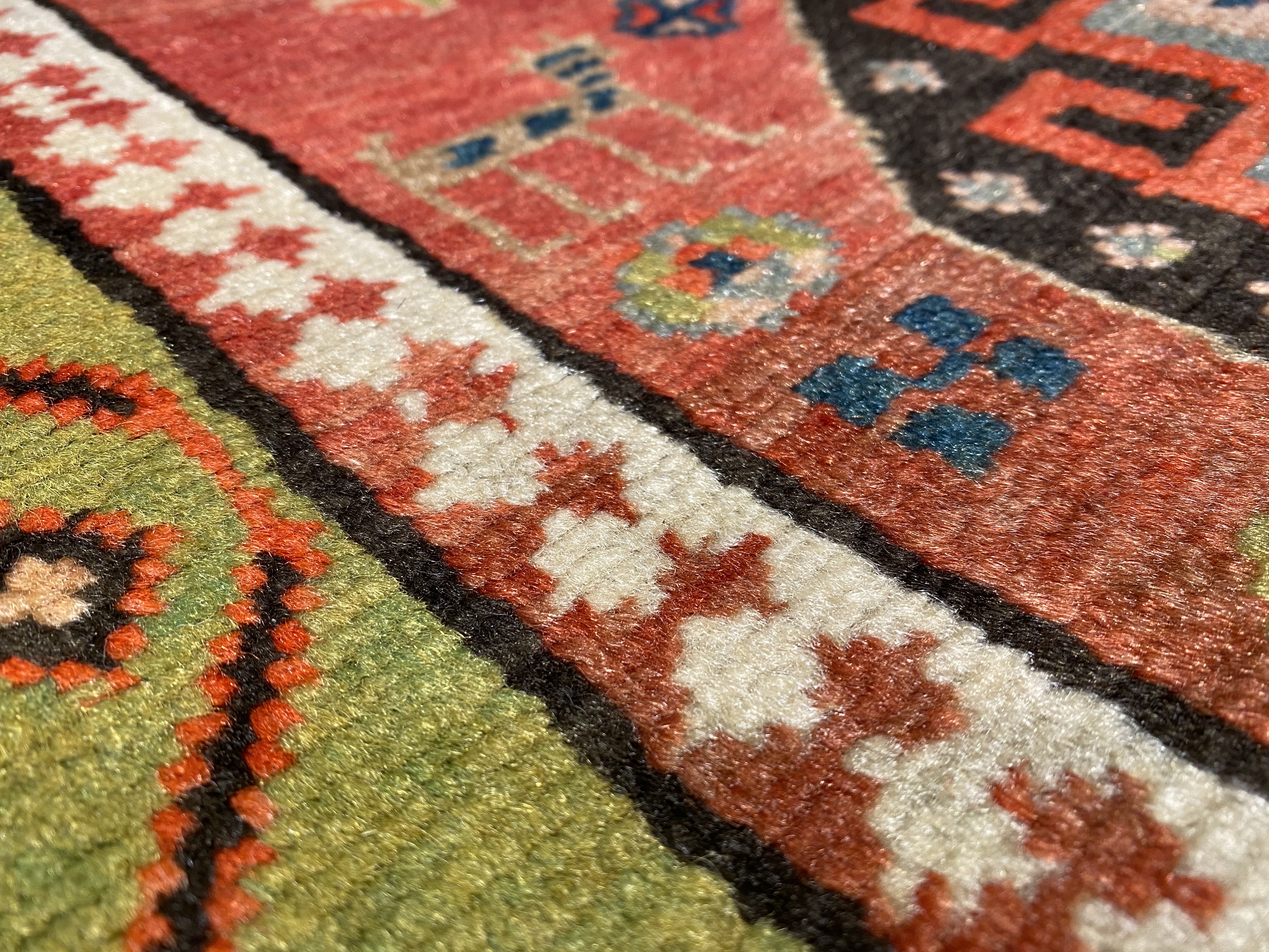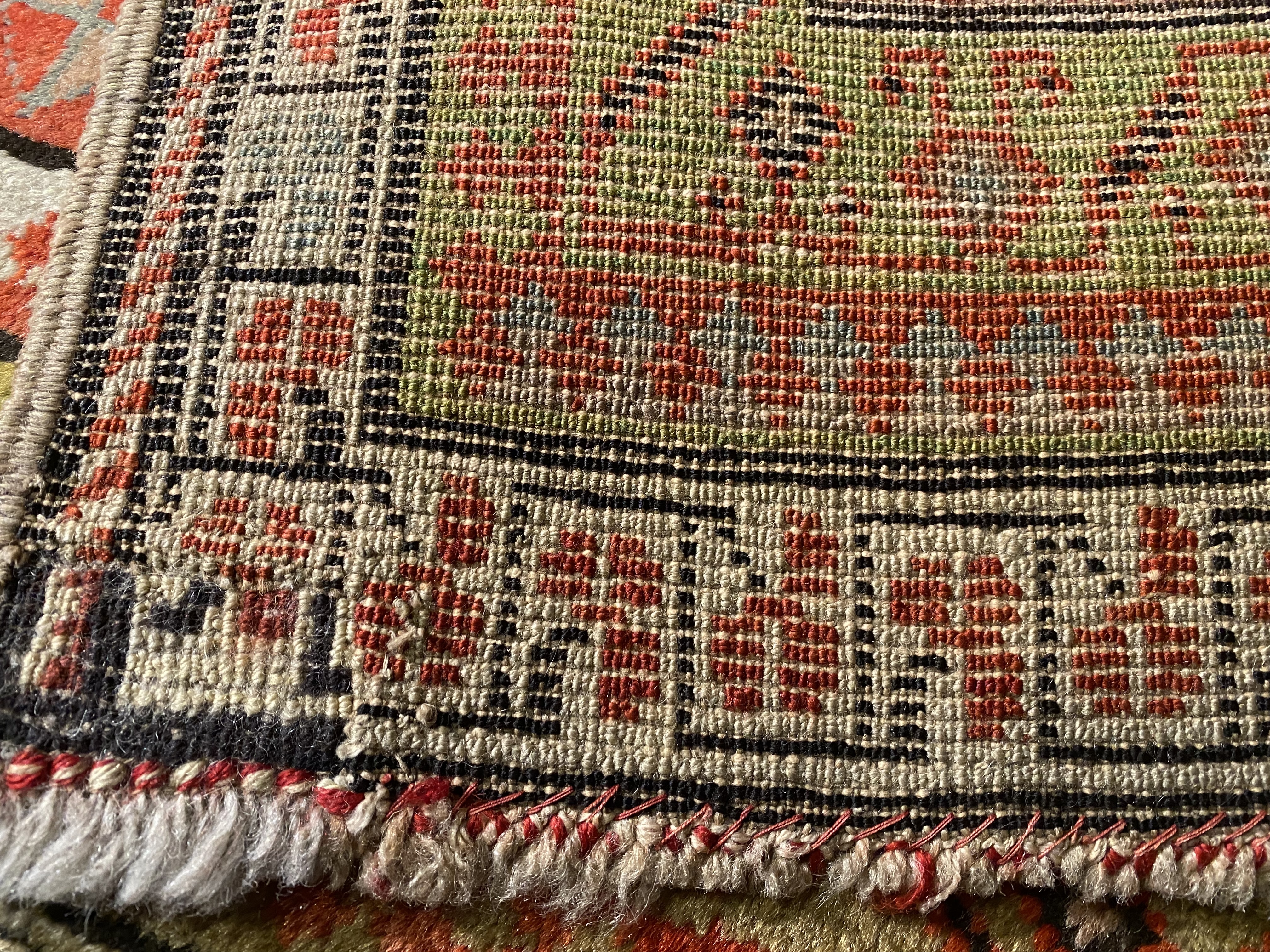 Antique Russian Kazak Design Rug. Hand knotted 100% hand-spun lamb's wool rug with all natural dyes. on a cotton foundation From Circa 1900