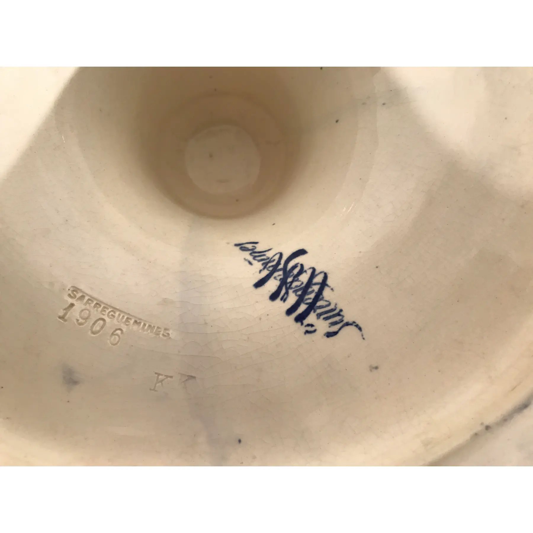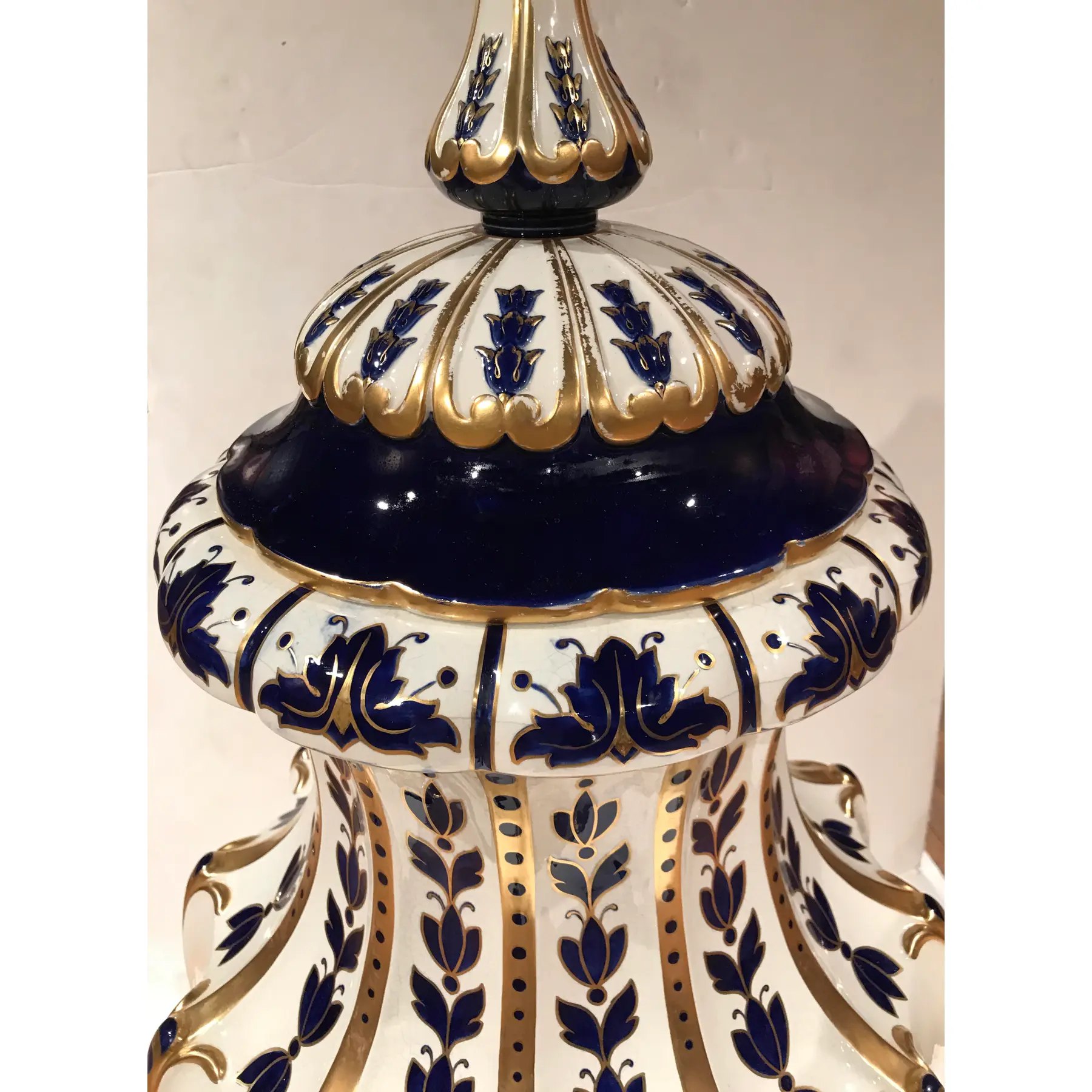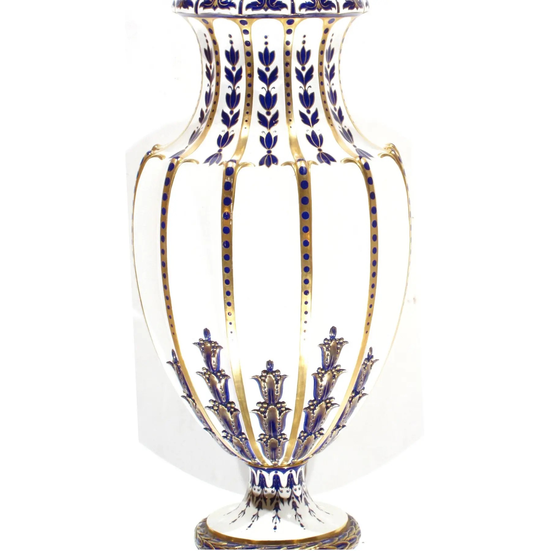 DescriptionHuge Antique French Hand Painted Floor Vase and Pedestal.
