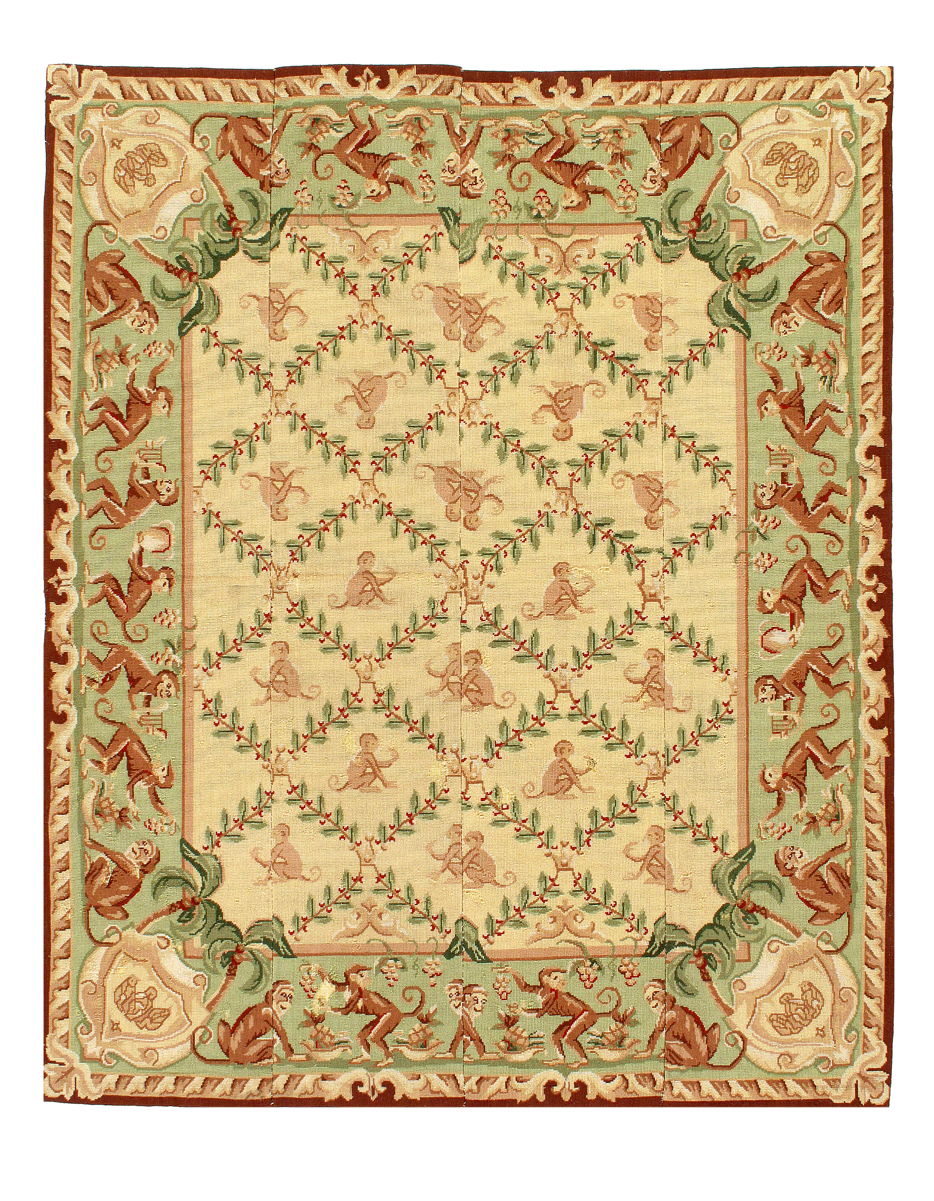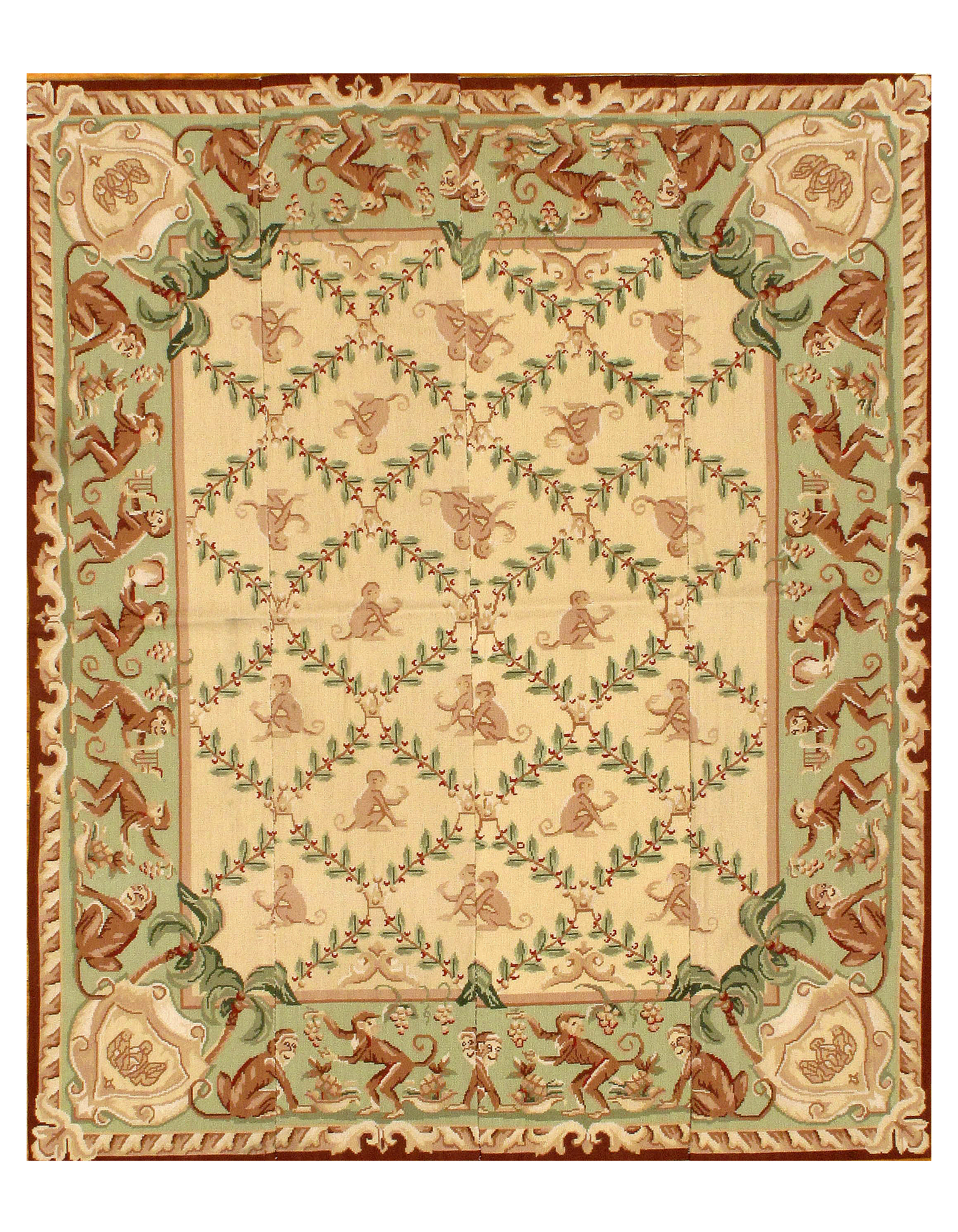 Needlepoint designs are mostly floral with occasional birds and butterflies. French Aubusson - as well as a variety of European designs are also used on needlepoint rugs frequently.
