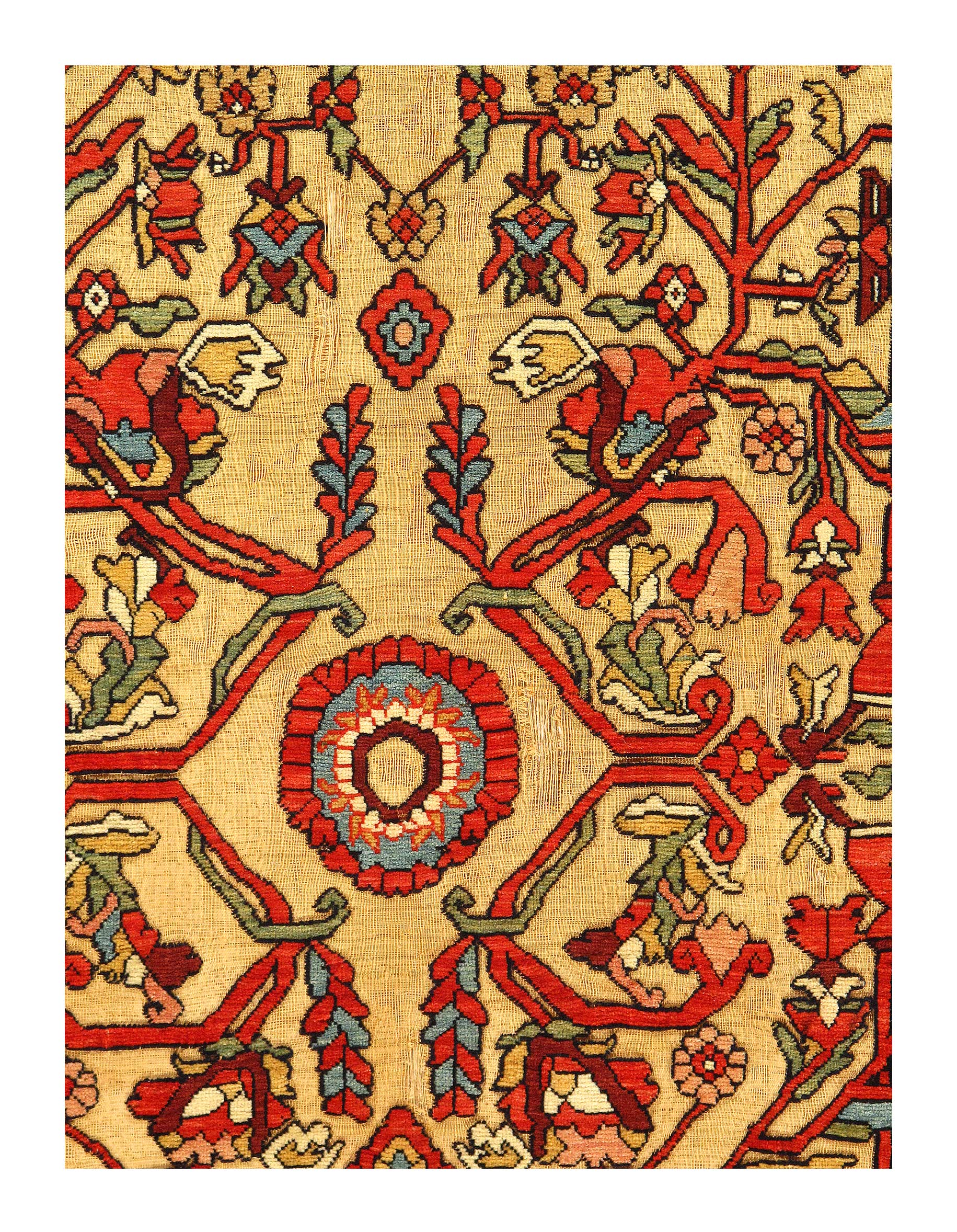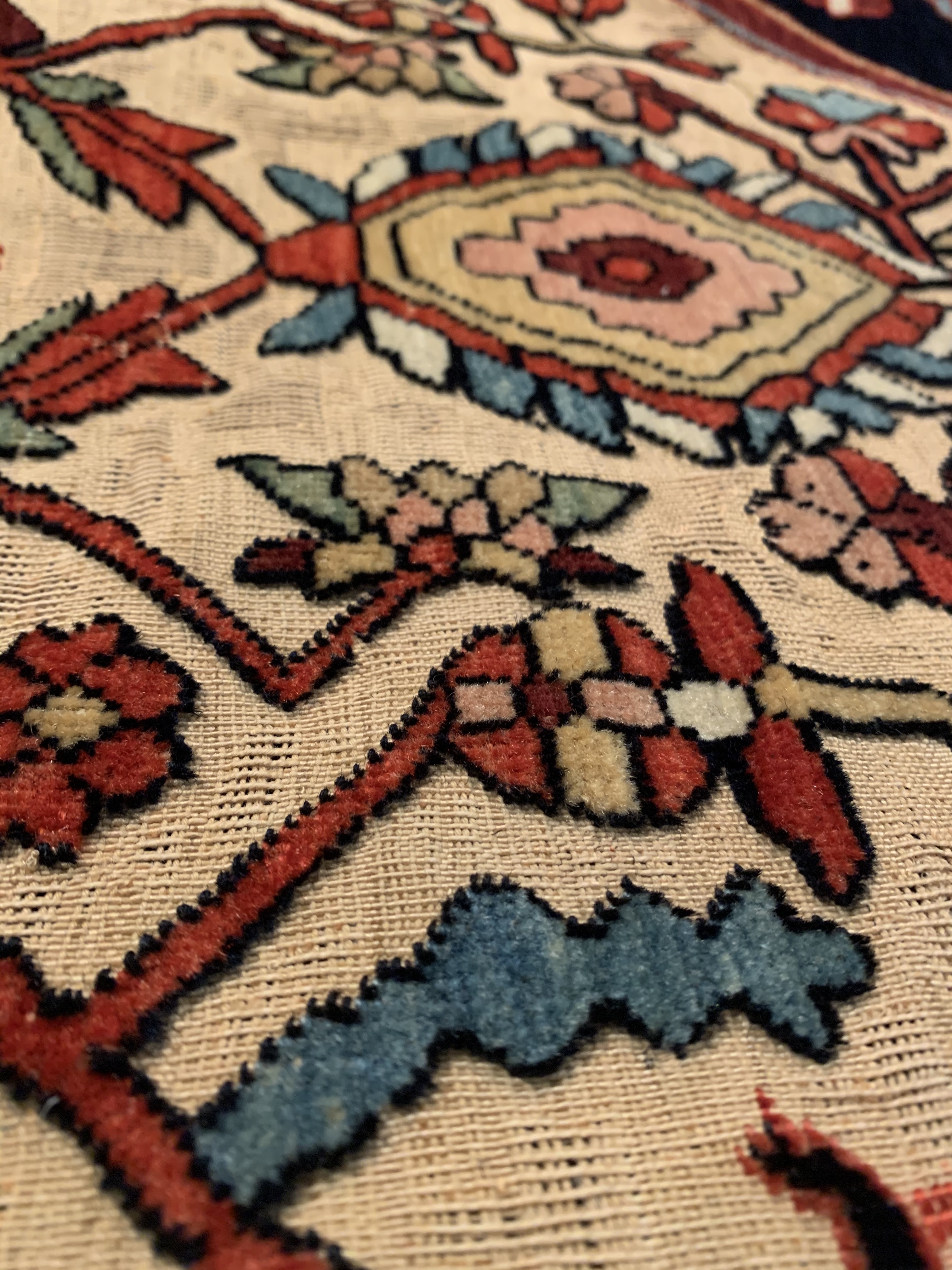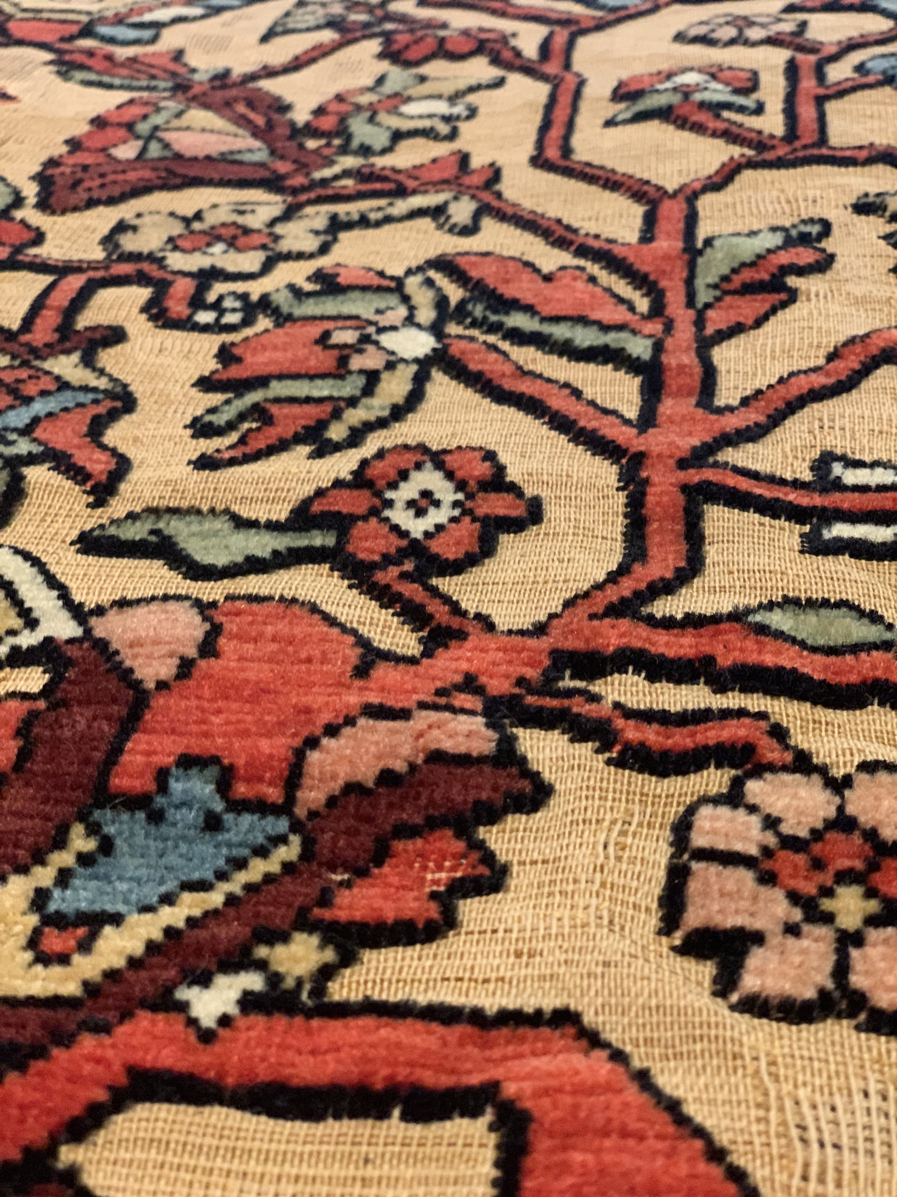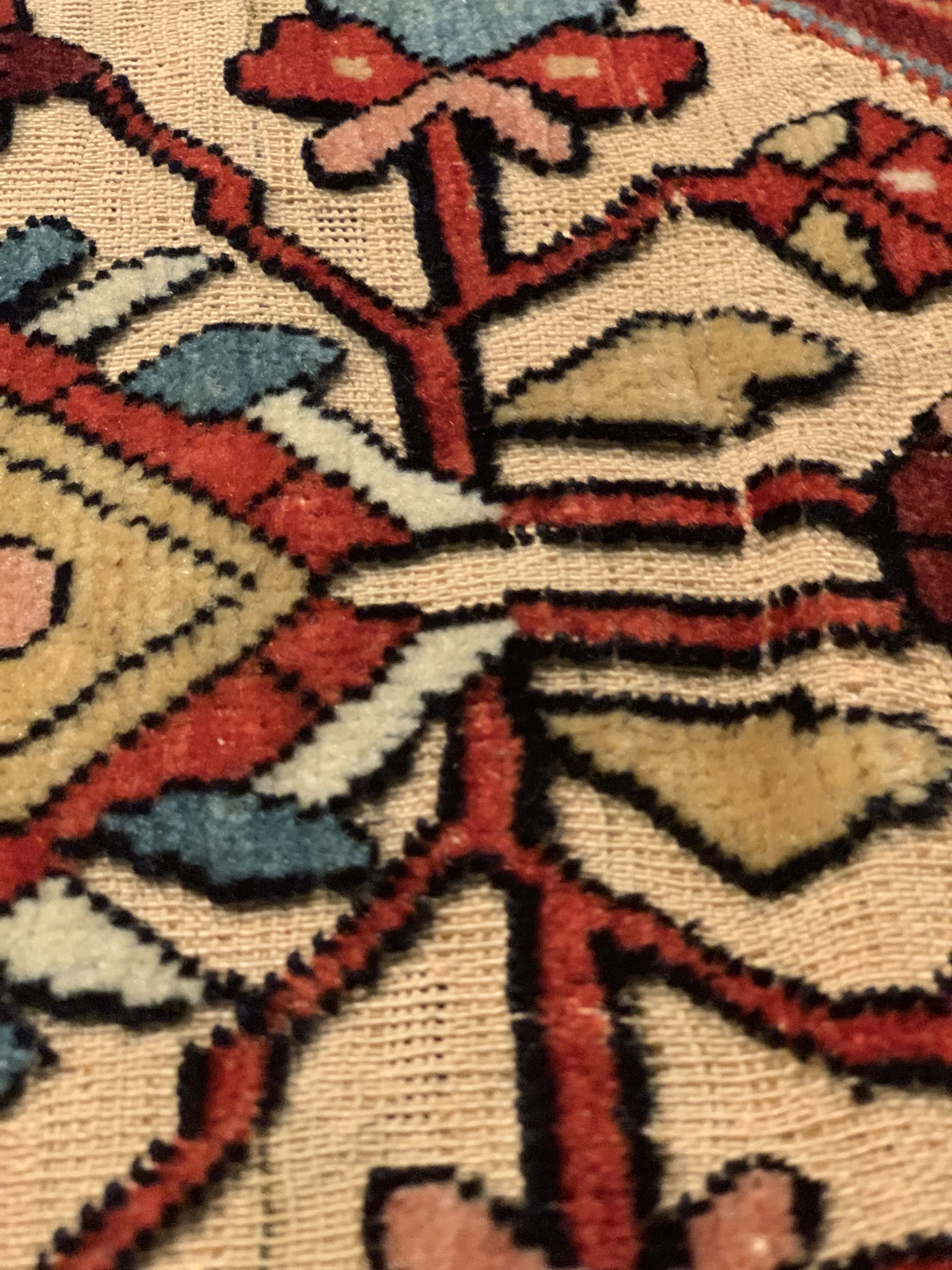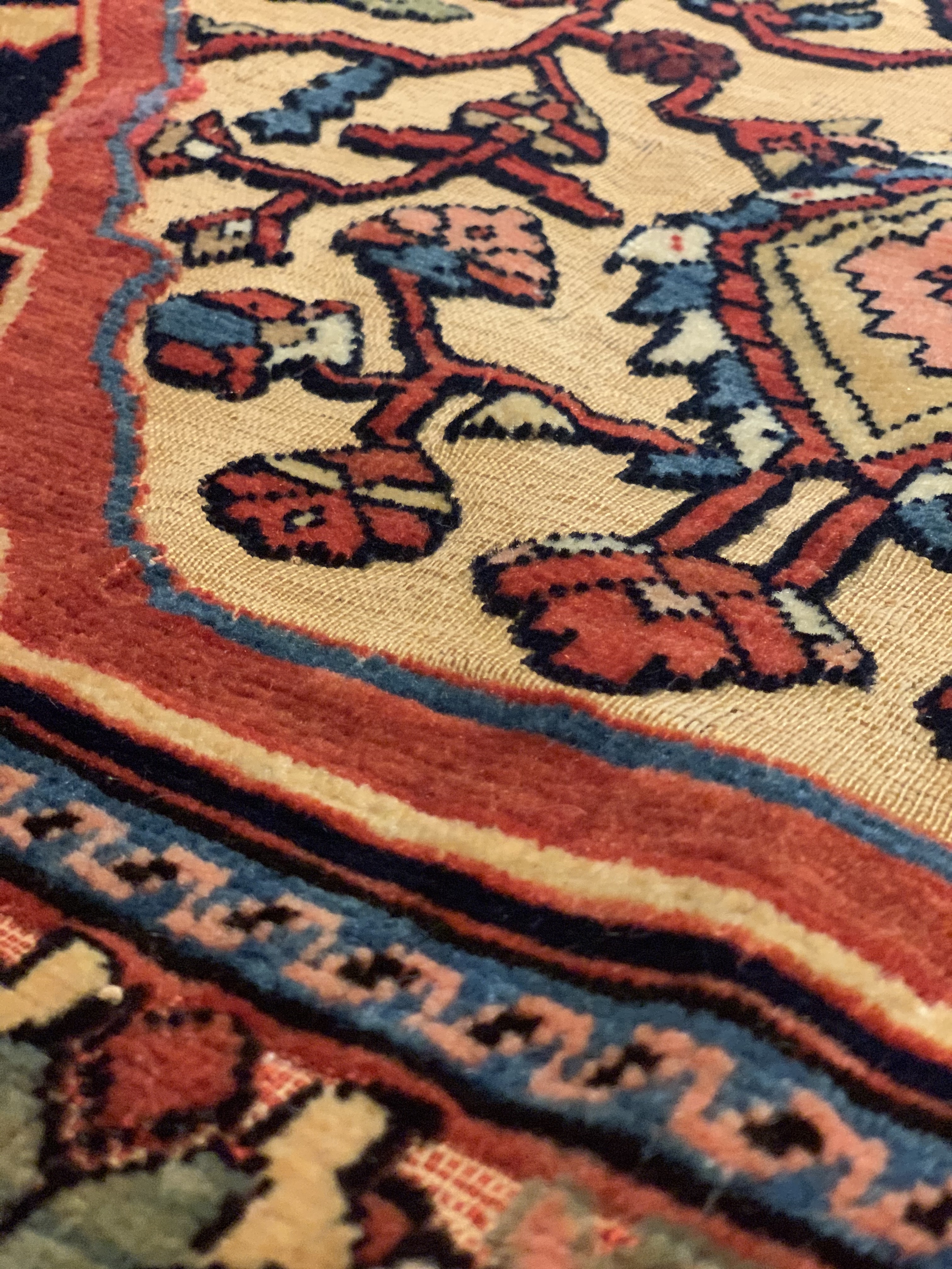 An early 20th century Souf carpet woven somewhere in Iran. Whereabouts are unknown but we suspect it’s from the sarouk Jozan region.