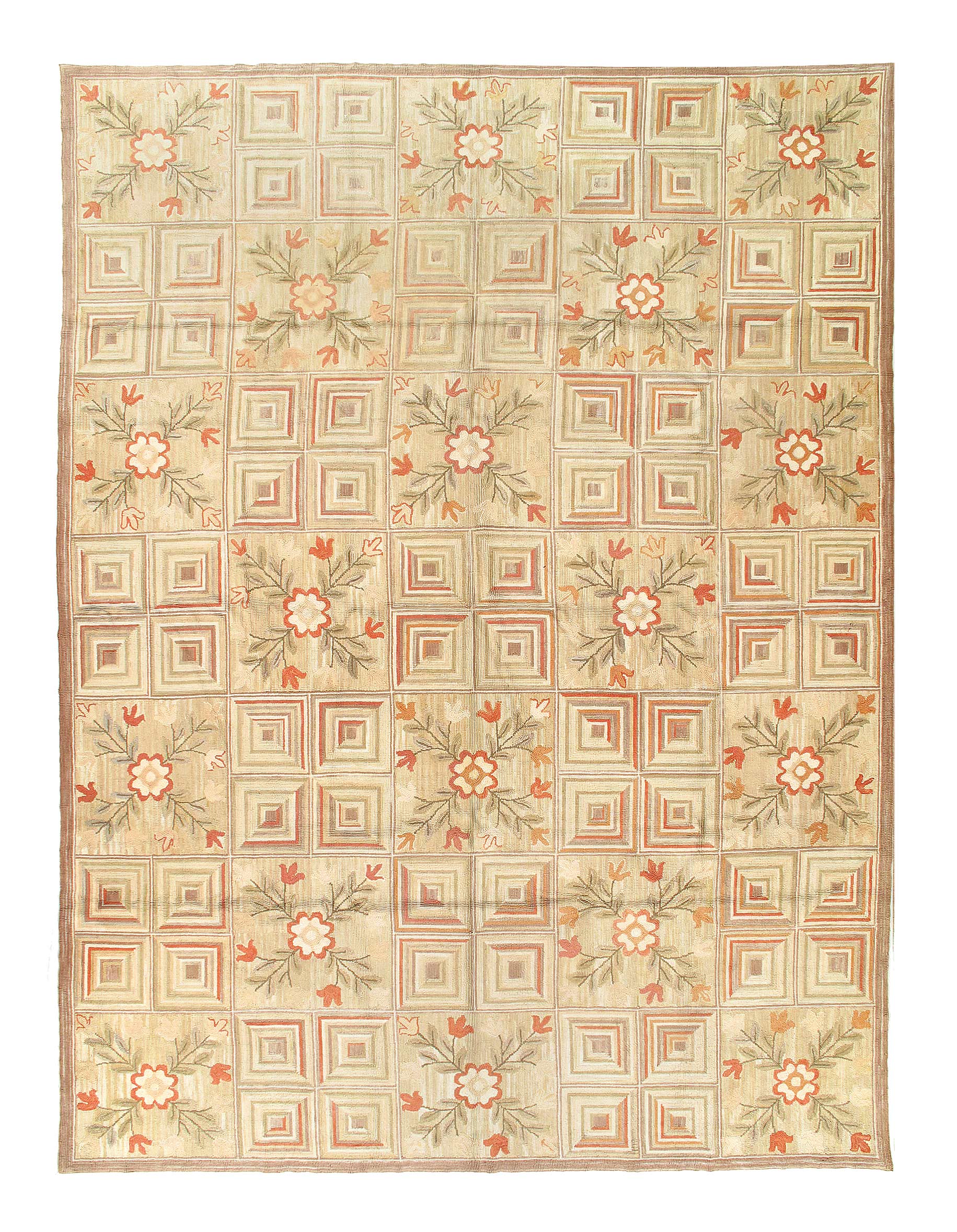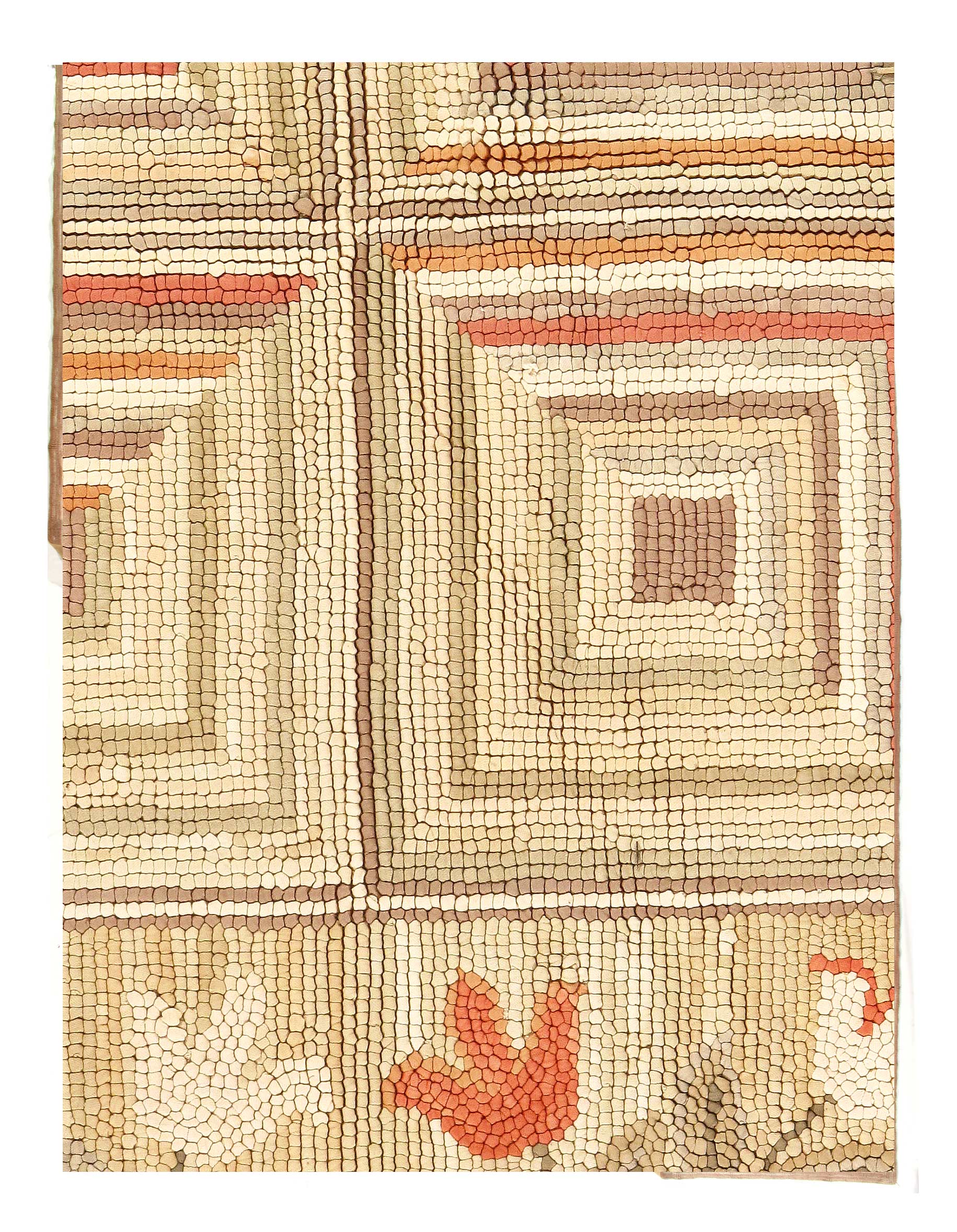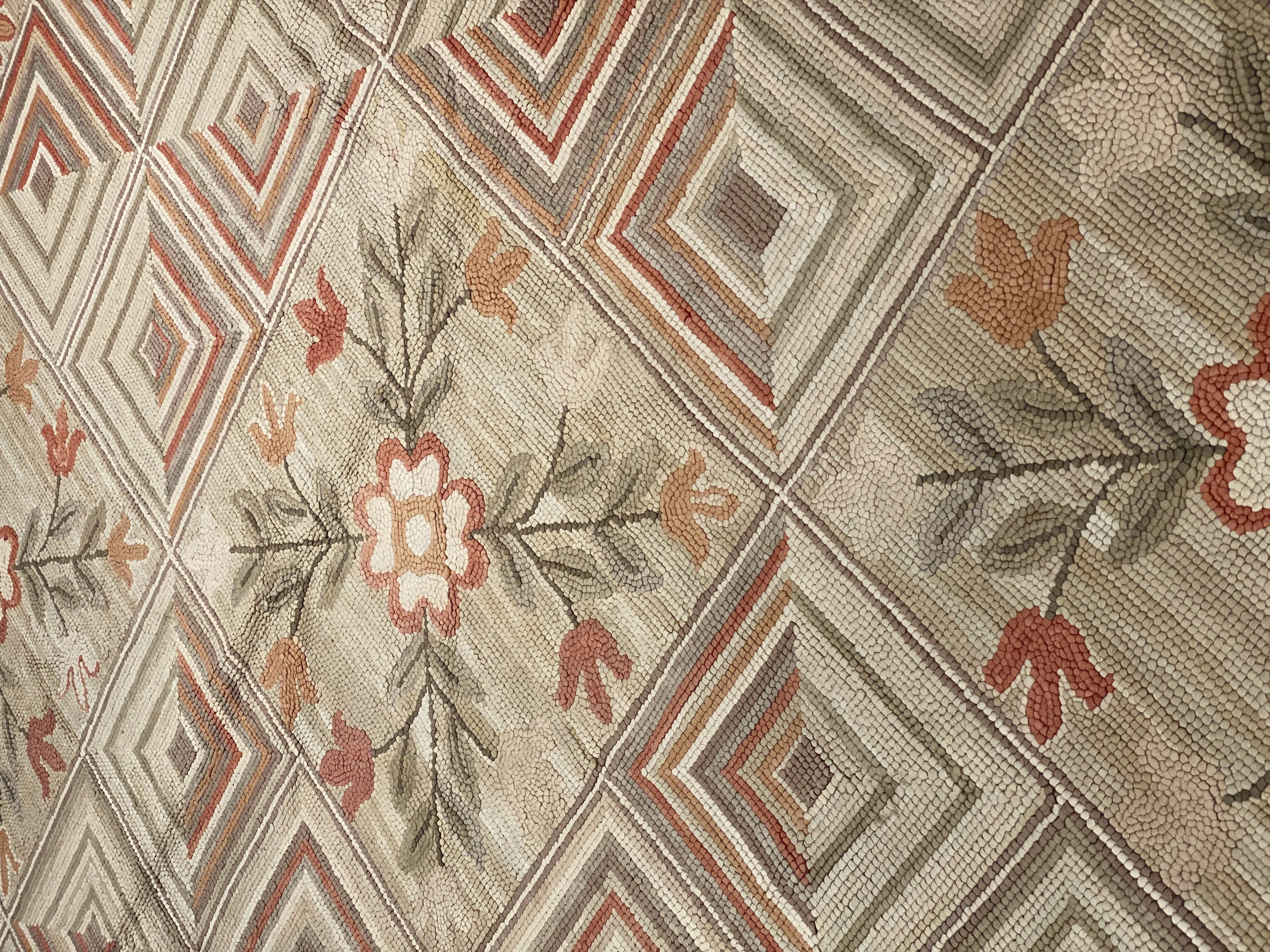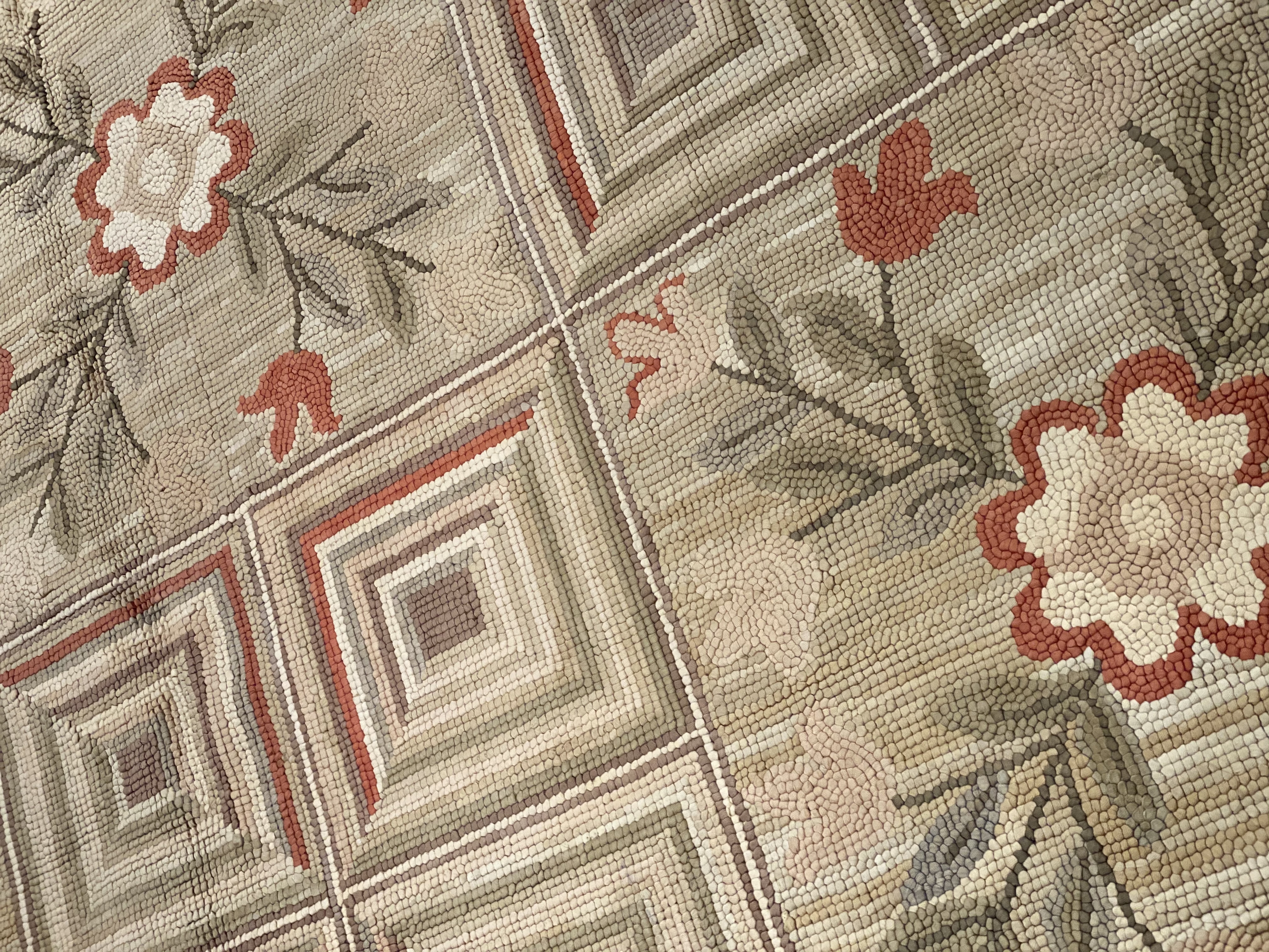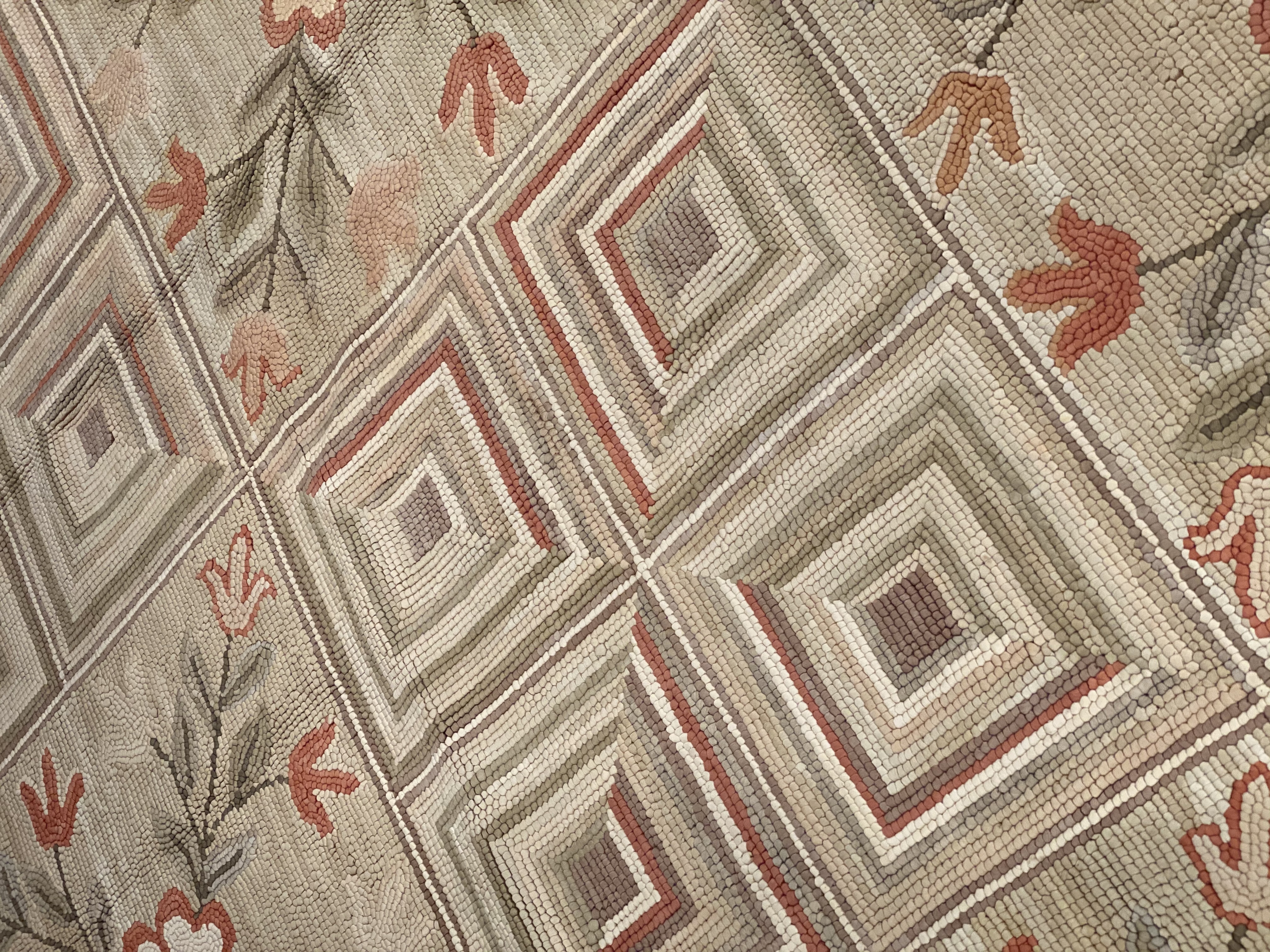 A magnificently modern design background with floral a floral design antique American hooked rug, country of origin / rug type: antique American rugs, circa 1920
