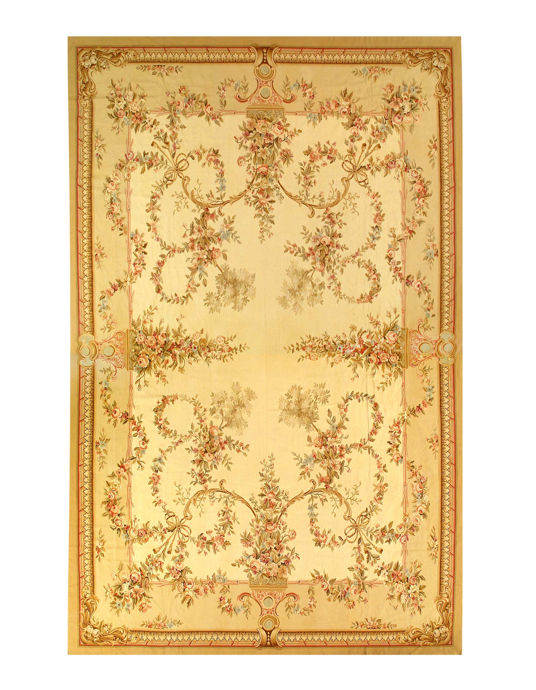 In 1600’s, in a small town called Aubusson in France, weavers had begun to create carpets and tapestries for royal palaces. In the mid 1700’s when the French crown lent support to Aubusson artisans, the industry flourished. The king commissioned the most famous architects and designers to create works of art which would be interpreted in woven form. As each new monarch came to power, new designs reflected the styles and pastimes of the era. Named after the town of their birth, these hand-woven flat weave carpets became known as Aubusson. Nowadays Aubussons are reproduced in China, done exactly as they were centuries ago in France.