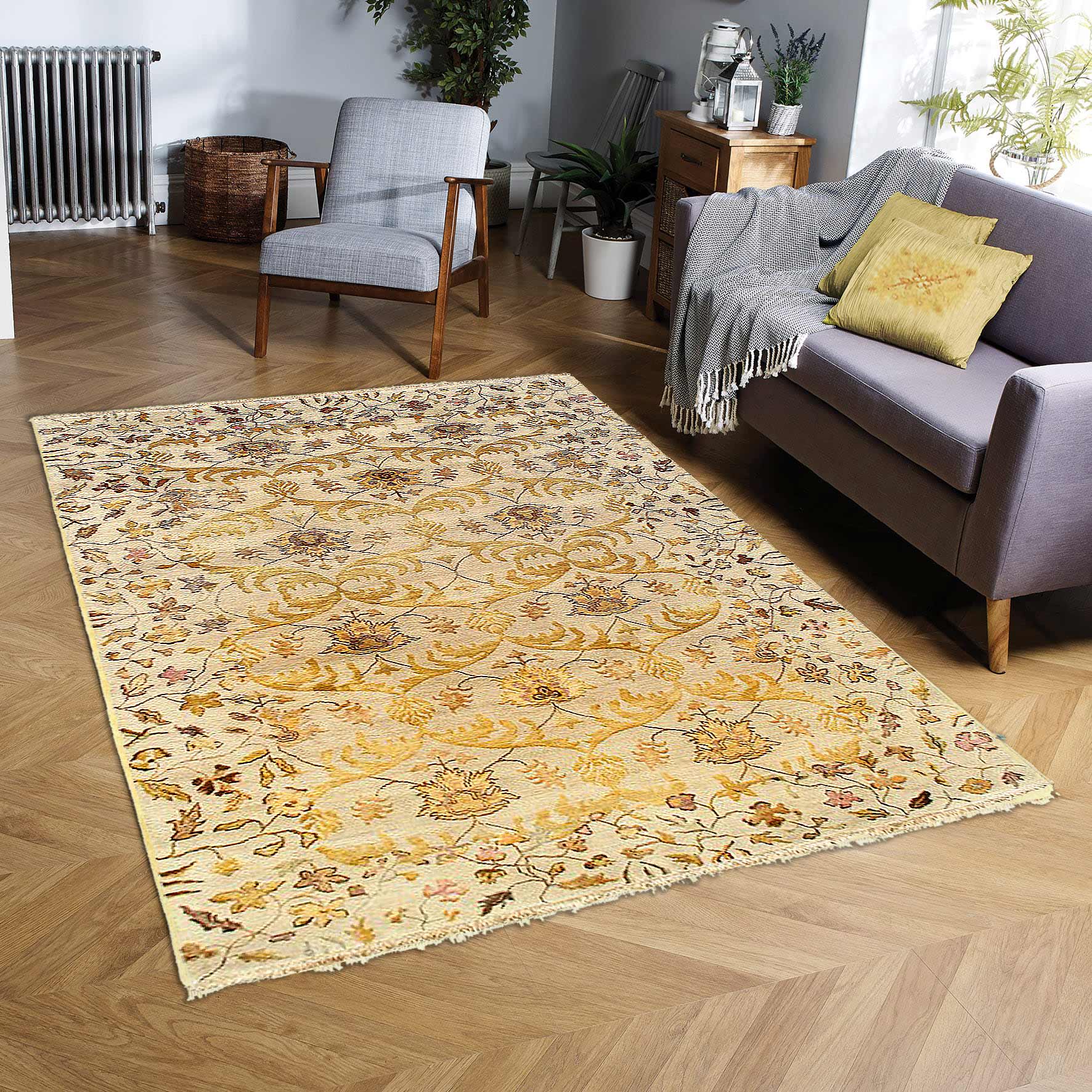 Introducing a stunning new William Morrios. Featuring a beautiful array of hand-knotted rugs in bright colors this brings elegance and style to any room in your home. Composed of wool & silk these rugs provide for the ultimate luxury and durability. This gorgeous Rug Can be available in a wide range of sizes.