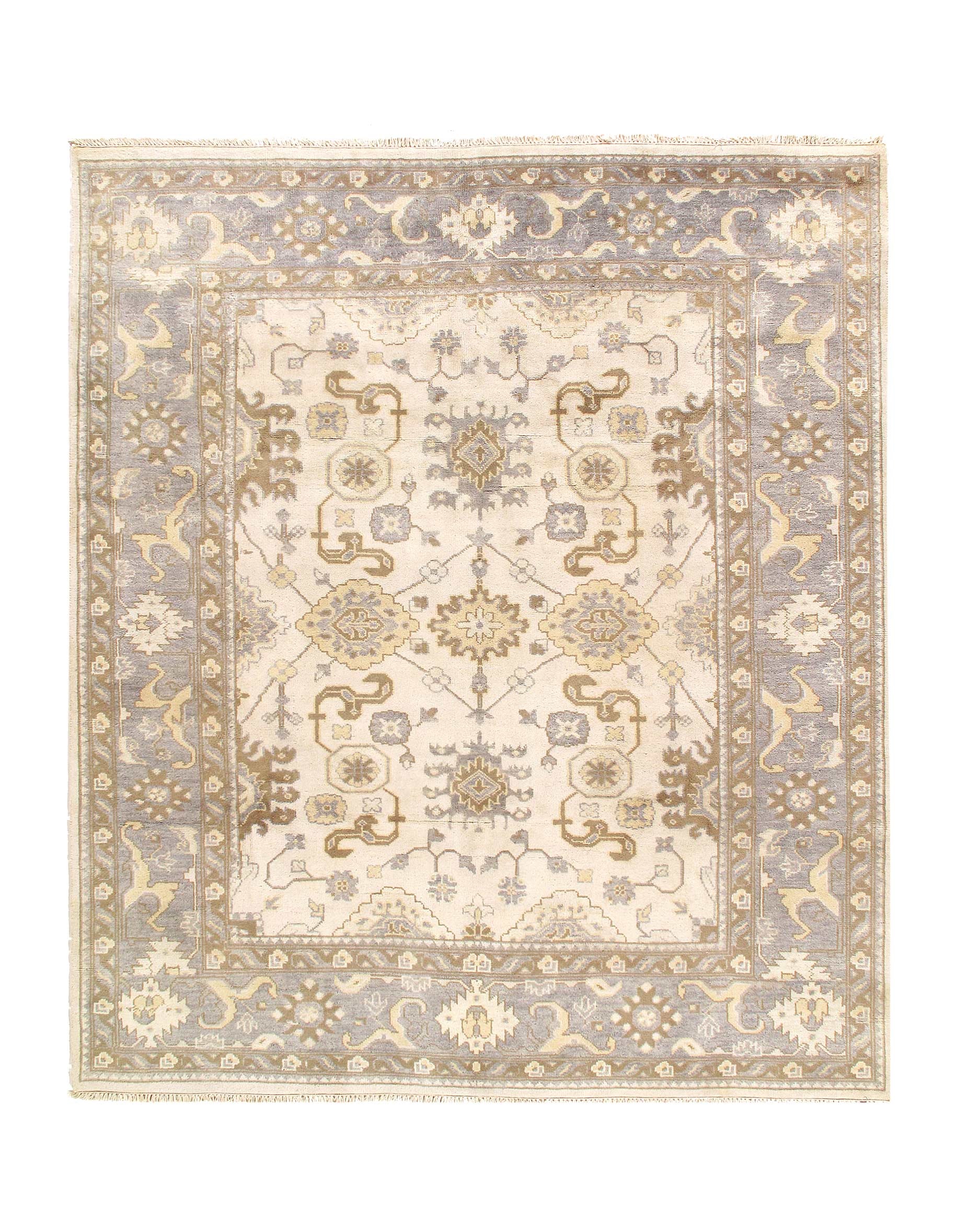 Oushak features the subtle elegance of classic Anatolian designs in tradition and styling of the finest Turkish carpets. These rugs provide a union of pattern, color, and the finest yarns and finishing. Each rug is finished with an antique wash that gives these rugs an authentic Oushak look. These rugs are hand knotted using the finest 100% New Zealand wool. The beauty of these rugs will enhance any interior decor.