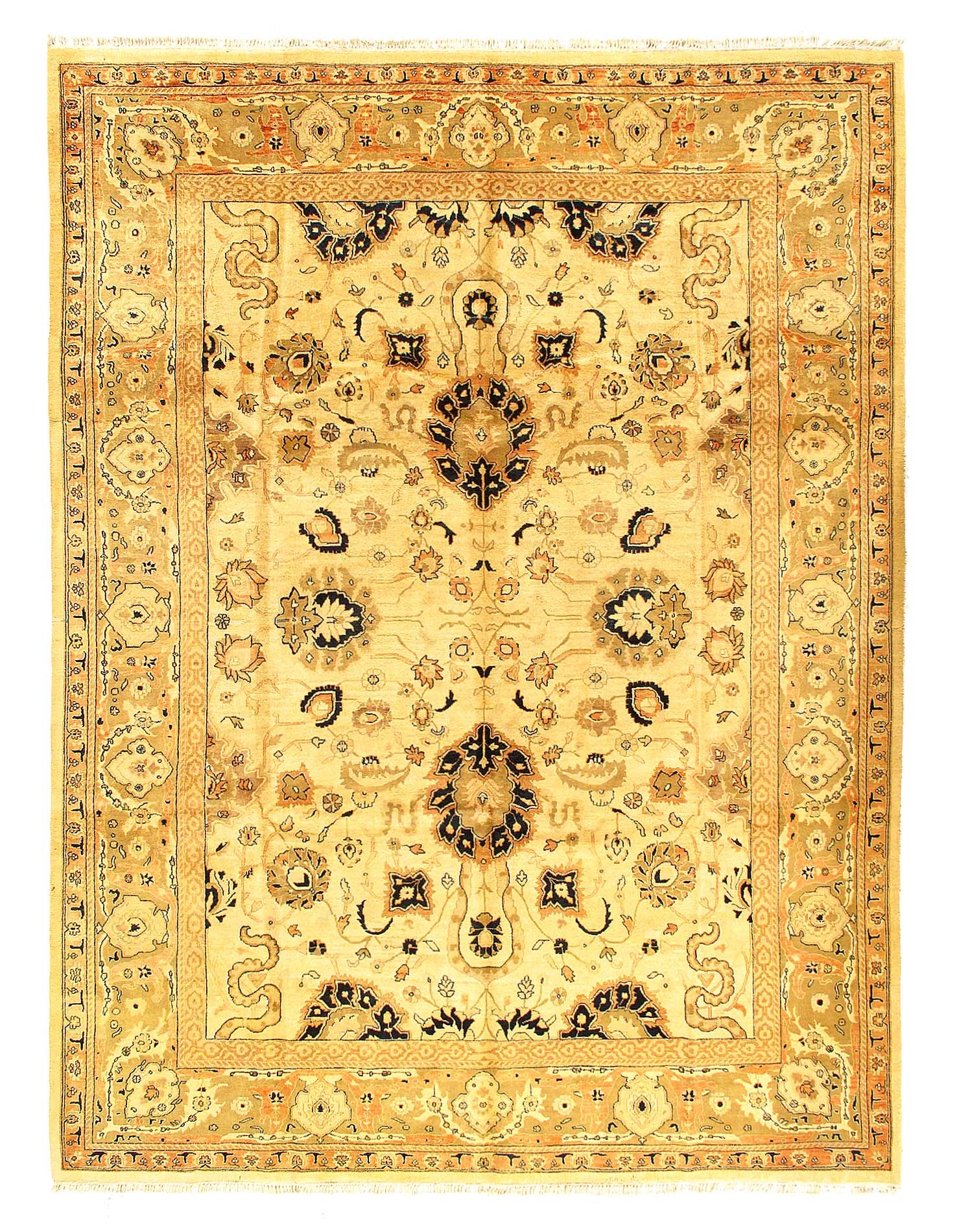 Add a fresh accent to your home with a new rug from the Agra collection. Agra collection is inspired by timeless, traditional designs. Each of these magnificent rugs is crafted using a hand-knotted construction with a softest lamb's wool pile by talented artisans of northern India and will show beautifully for years. This rug is a versatile, stylish and environmentally conscientious choice as it is made from 100% natural fibers.