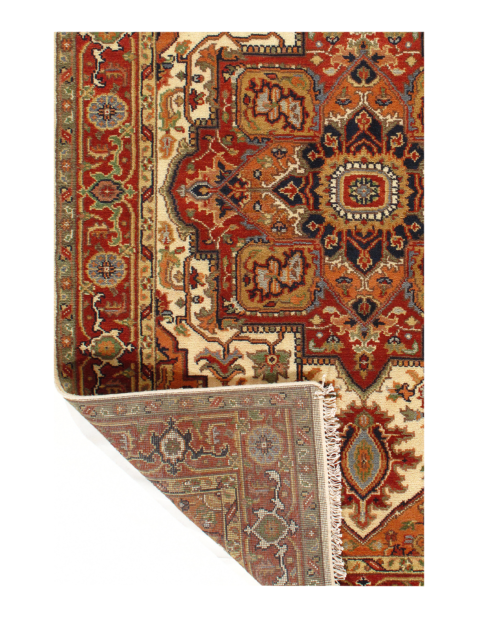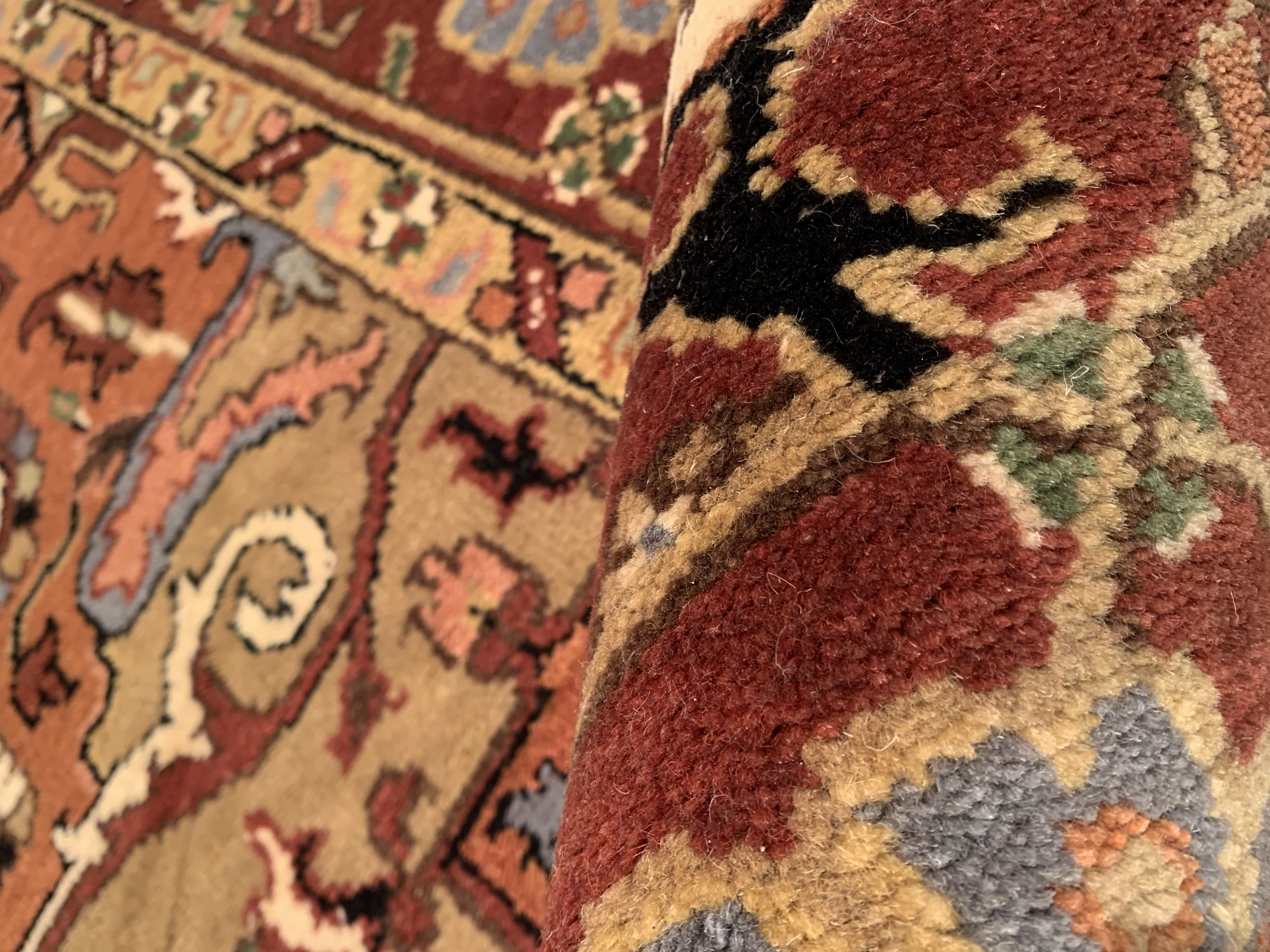 Serapi design rug. Handmade and hand-knotted in fine lambswool on a cotton foundation. Vegetable dyed hand-spun wool rug.