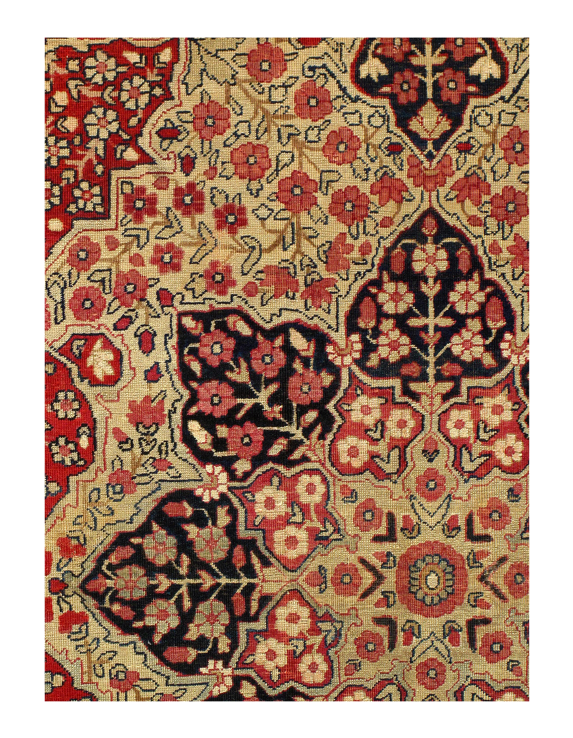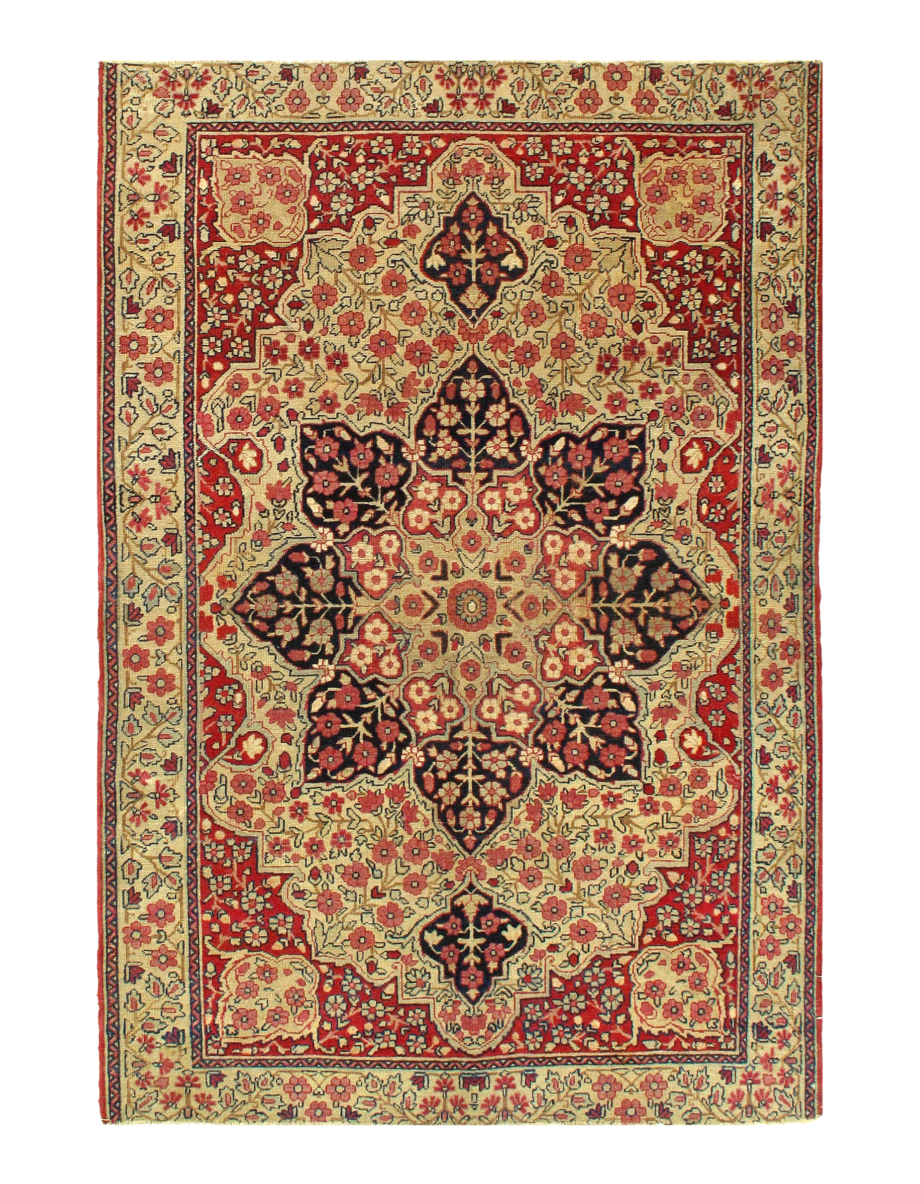 A unique and recognizable style of antique Oriental rug all its own, the Kermanshah approach to Persian rug design was largely informed by influences from the Kurdish and Lori tribespeople of western Iran. Kurdish rugs and carpets are distinctly tribal works, recognizable for their eccentric treatment of traditional elements of design. Much the same may be said of antique Lori rugs, which also utilize a primarily geometric repertory. Loris will also feature highly stylized animal forms arranged as allover patterns.
