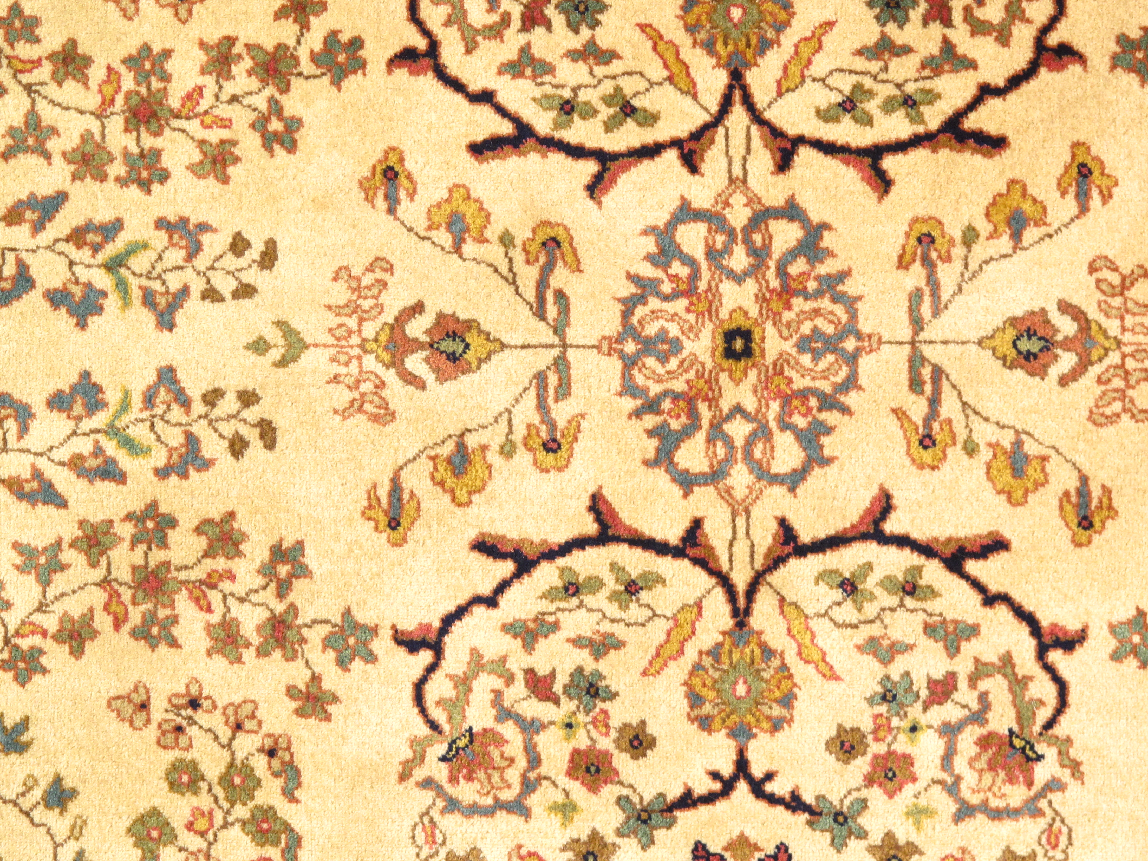 Hand knotted by weavers in a workshop in northern India using blended local with worsted New Zealand wool. The detailed traditional design requires a very fine weave, and the weavers, like all artists, have to be continually focused while working. Their hard work pays off when a rug comes out right like this one, a beautiful recreation of a Persian Sarouk. This rug will bring quality and taste to any space it lands. Pasargad rugs from these workshops are the finest traditional Indian rugs due to their fine weave, excellent workmanship, and high quality materials.