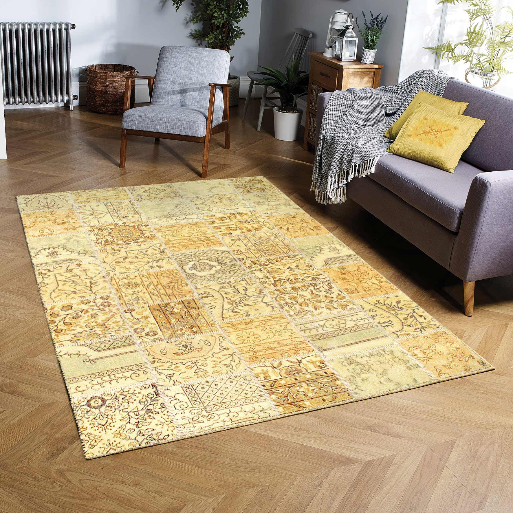 The vintage patchwork design will give your home a sophisticated style. Contemporary design. 100% Lamb's Wool. With a striking design and smooth coloring, this flawless piece will radiate both opulence and classic charm from room to room within any home.
