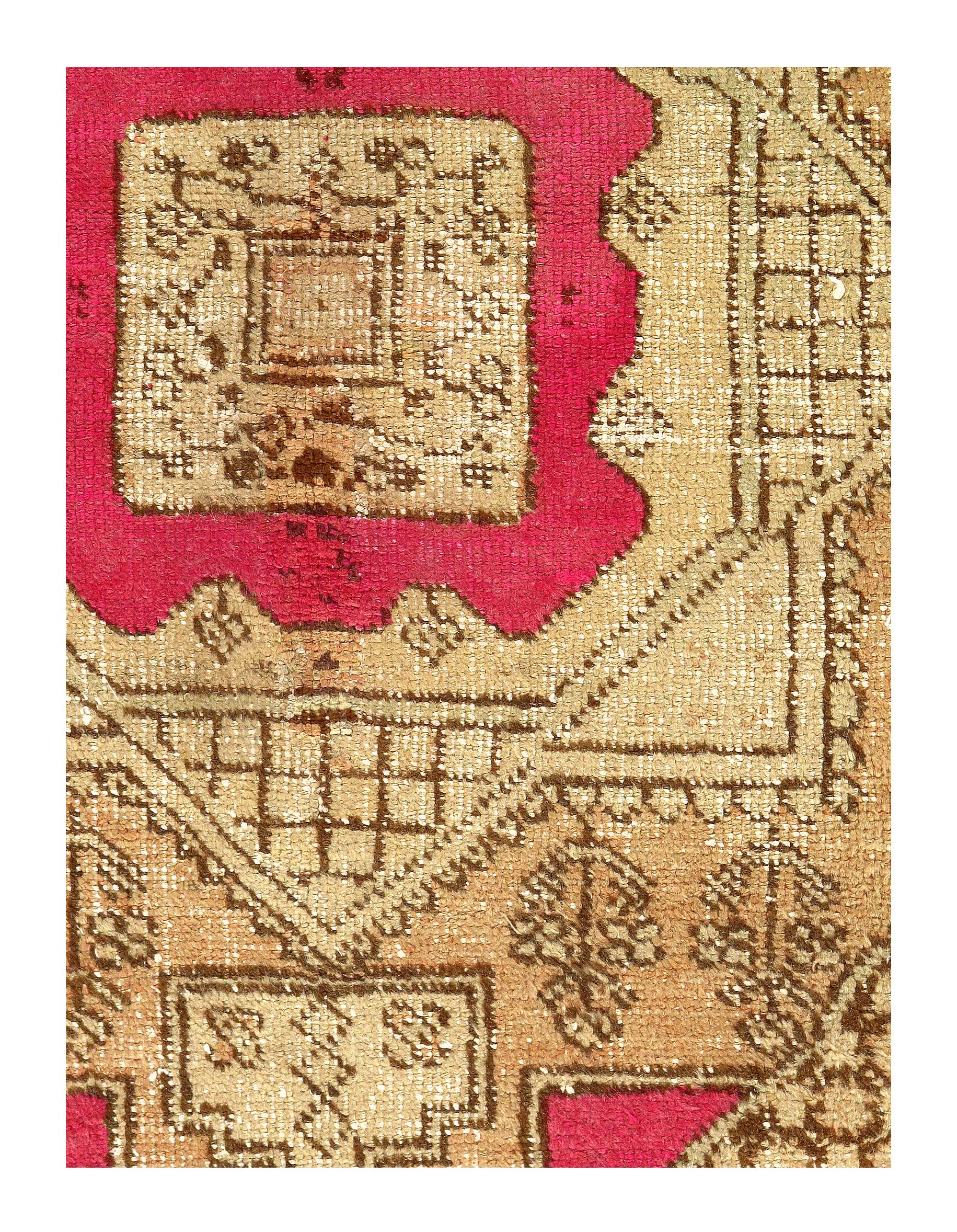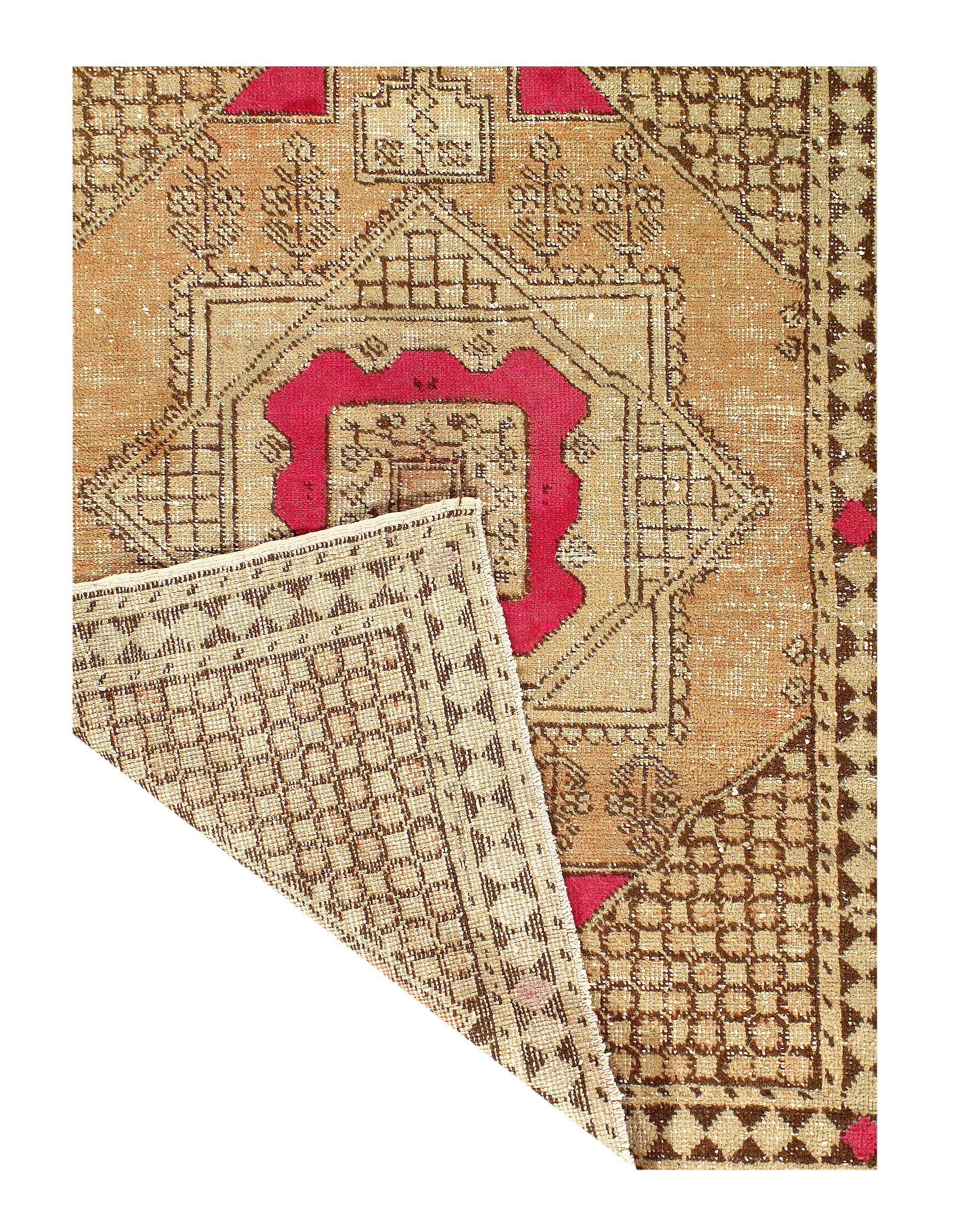 This is Vintage hand-knotted Turkish Oushak rug. The piece was made from 100% hand-spun lamb's wool rug with all natural dyes. Each rug has a dense, soft pile, and excellent quality.