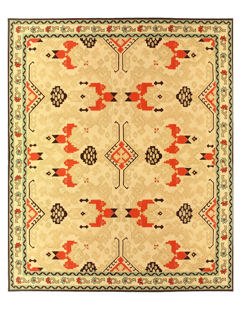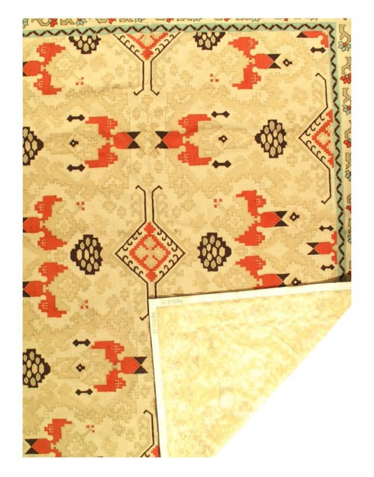 Vintage 100% Wool Edward Fields Rug; CIRCA 1985; custom-made; rounded L-shaped shape; very good condition for age ; floral pattern; pile height elevated ; unique; beautiful