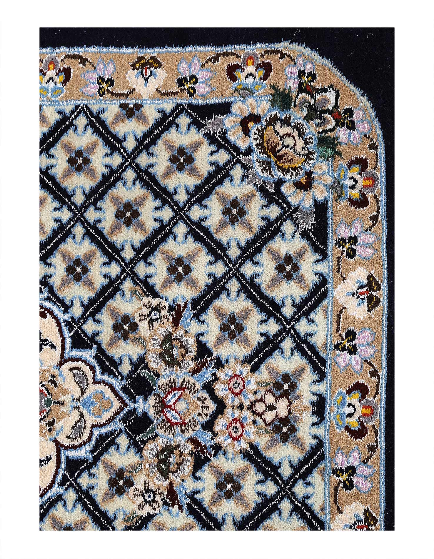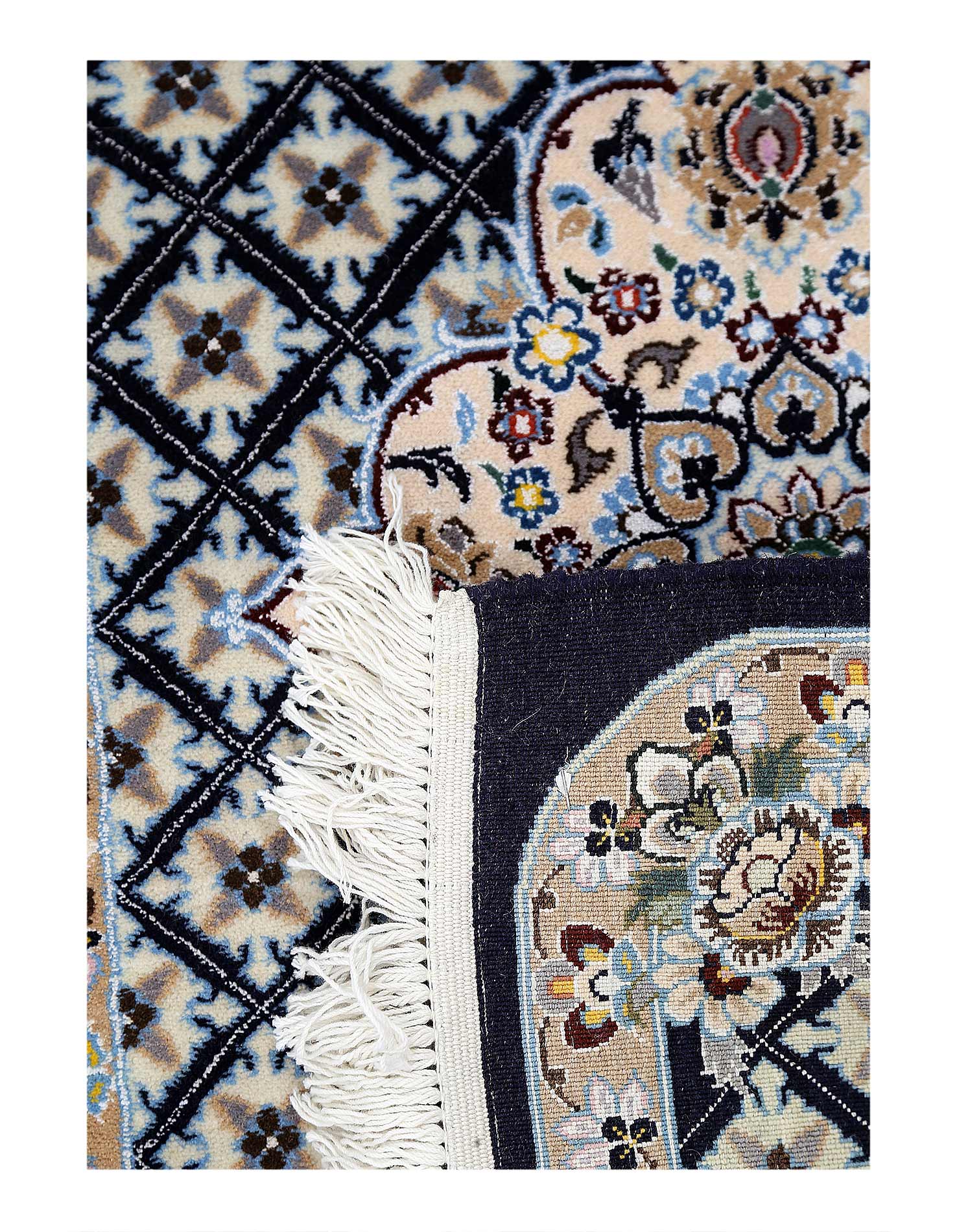 Hand knotted Nain rug ,Original Fine Persian Rug. Handmade Hand-knotted Silk & wool on a Silk .Classical combination of colors, Black ground .