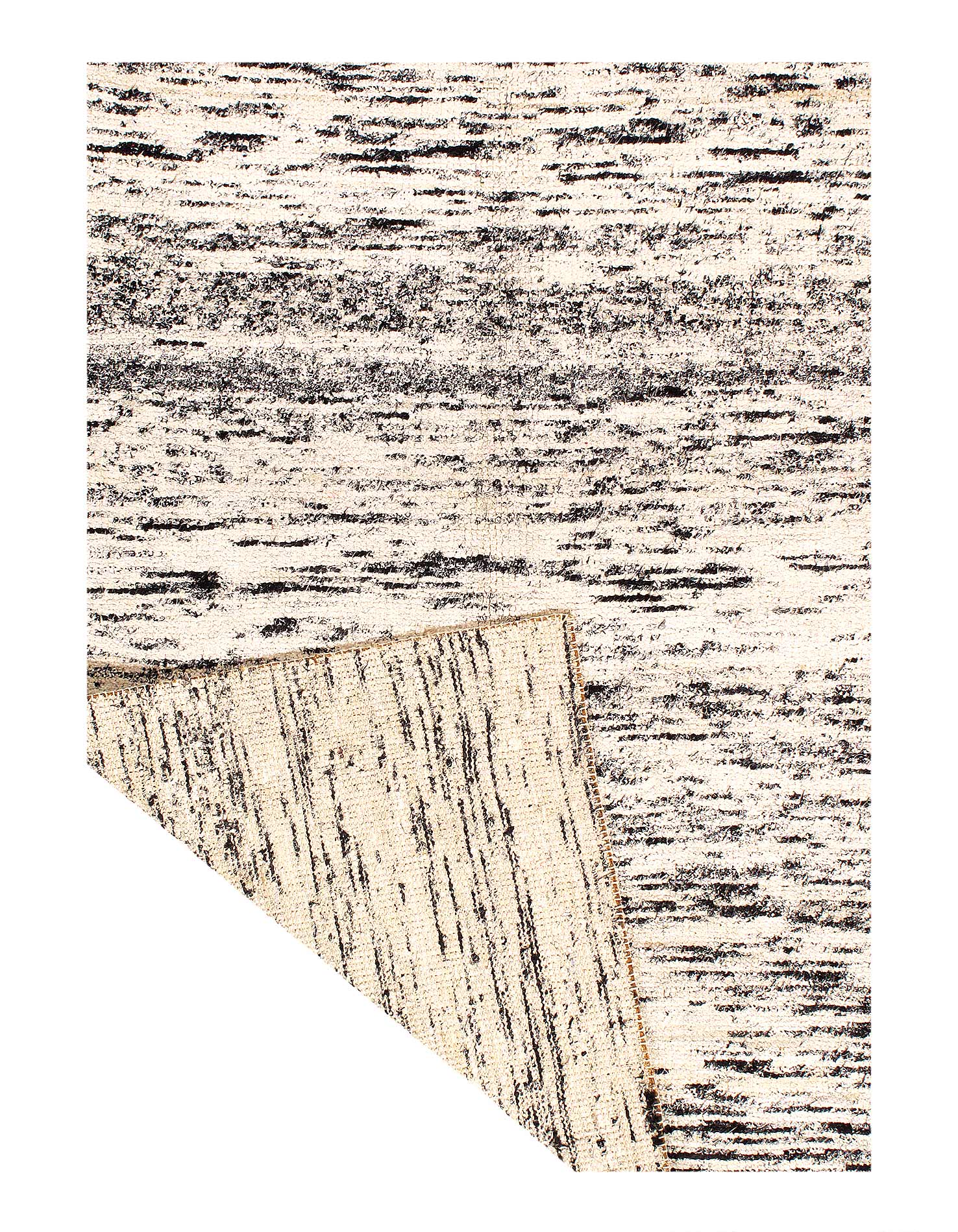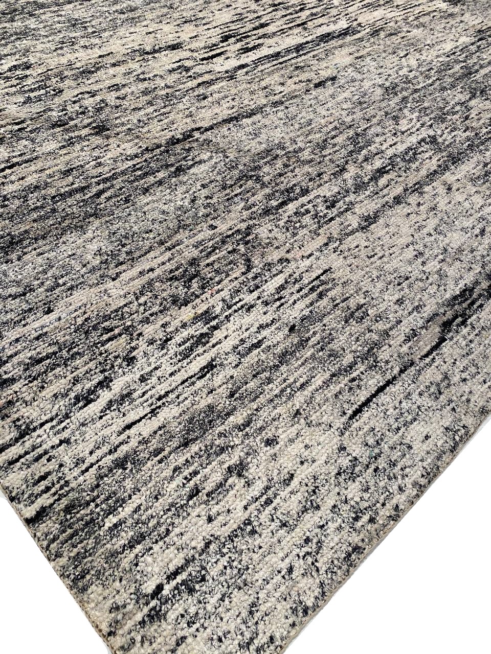 This hand knotted pile rug is made with all handspun silk. It was woven in a small cottage industry weaving project were all weaving takes place in individual weaver’s homes. This wonderful carpet is made using remnant, re-spun silk from the mill ends of sari looms. Sari silk is varied and irregular and carries some of the residual colors of the saris they would have been. The variation of tone and texture along with the natural shine of silk work in unison to create a visual feast. This luxurious and sophisticated modern rug is a beauty to the eye and so soft to the touch.