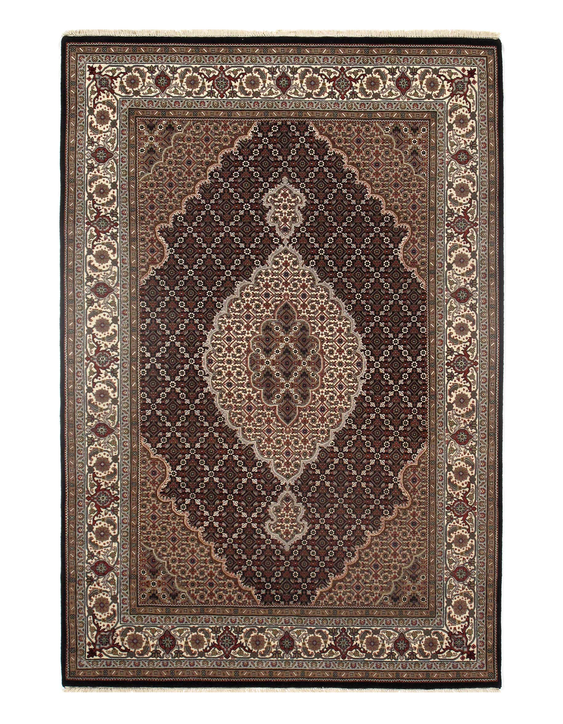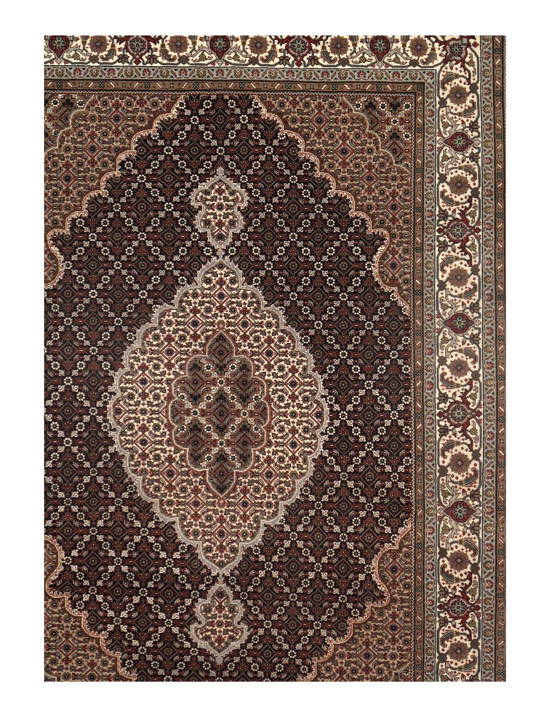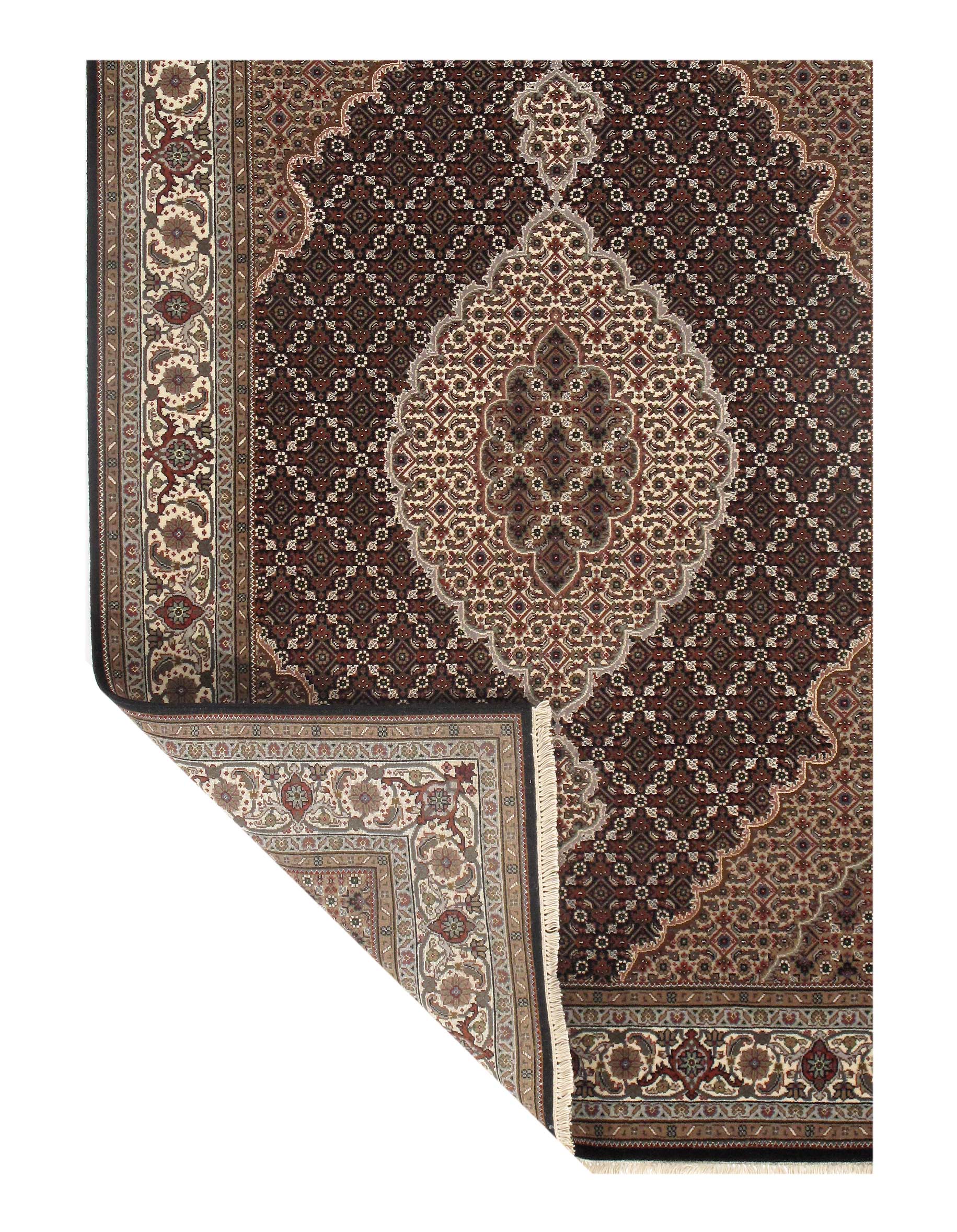 This Tabriz Persian Design Hand-Knotted Wool Brown Area Rug is handmade, hand-knotted. Lamb's wool on a cotton backing with silk highlighted vegetable rug.