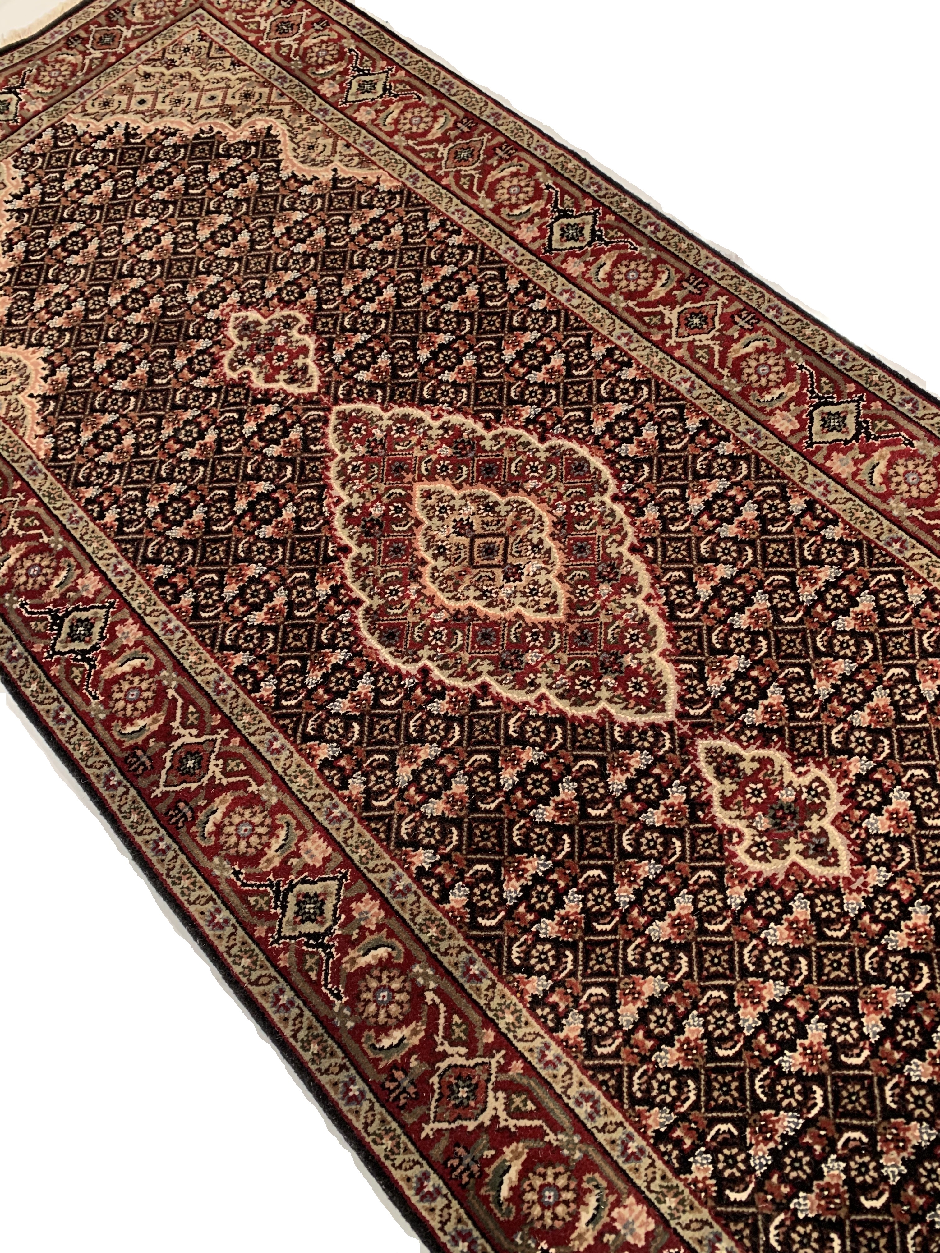 This Tabriz Persian Design Hand-Knotted Wool & silk Runner is handmade, hand-knotted. on a cotton Foundation with silk highlighted