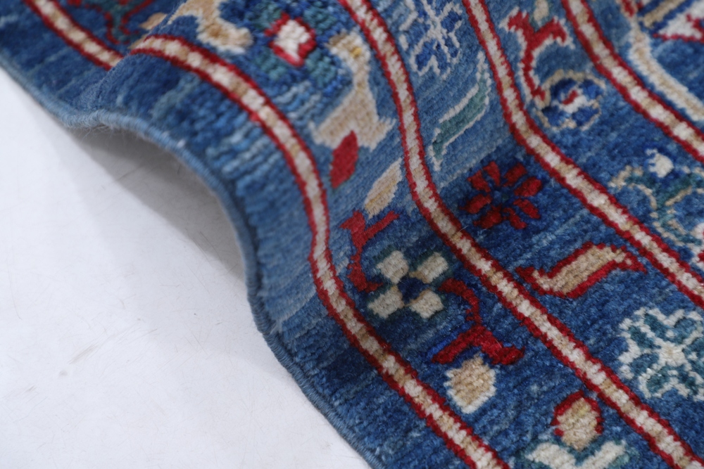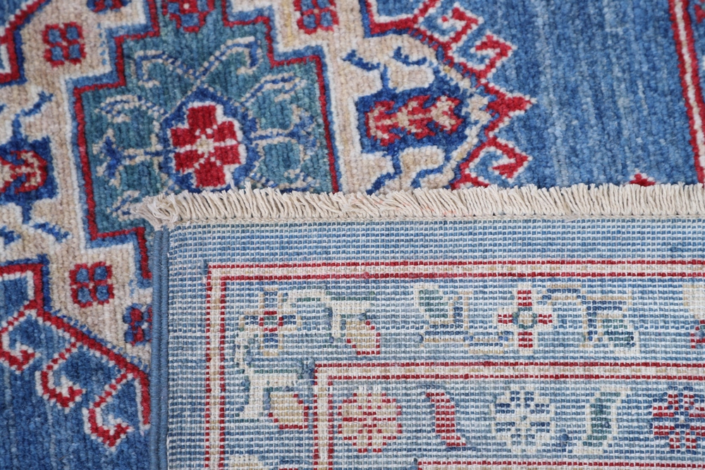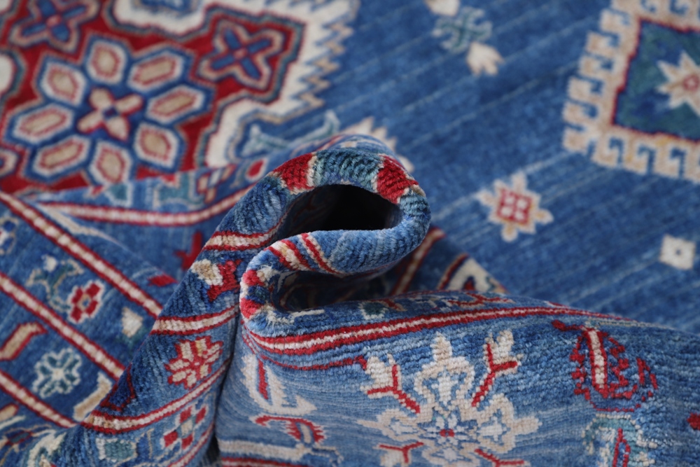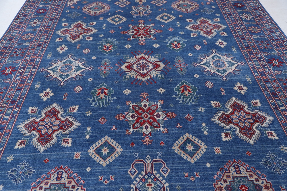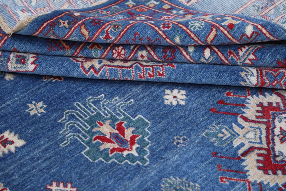 Vegetable Dyed,This rug is handmade from 100-percent premium, hand-spun wool, and employ ancient pot-dying techniques to give them their authentic look.This rug is handmade from 100-percent premium, hand-spun wool, and employ ancient pot-dying techniques to give them their authentic look.Kazak is a modern shape of old Caucasian rugs which strictly adheres to traditional design elements of the Caucasus. It has elements such as the stepped hooked polygons, geometrical medallions and rosettes, presented in more stylized manner and with a new dimension. Natural dyes produce soft luminous shades and abrashes causing a beautiful sheen. Hand spun wool yarn is normally used in the variety of vibrant warm colors. Kazaks rugs in our collection are all fine quality pieces from Pakistan made with Ghazni handspun wool and natural dyes.