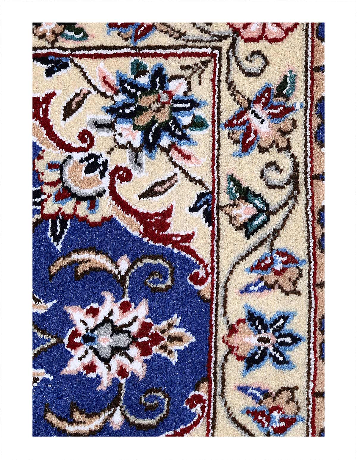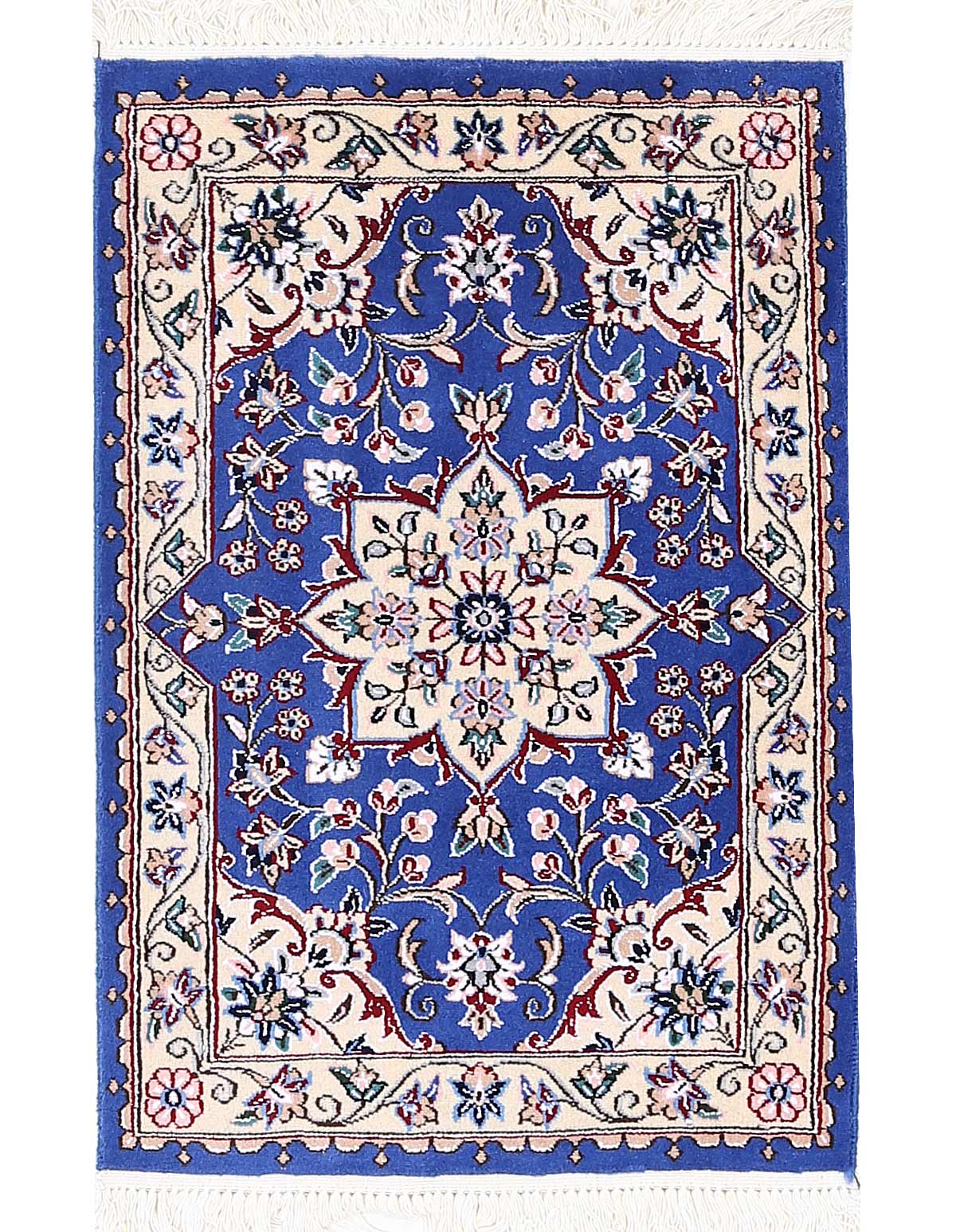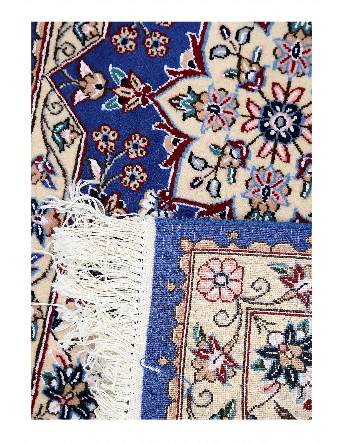 Hand knotted Nain rug ,Original Fine Persian Rug. Handmade Hand-knotted Silk & wool on a Silk .Classical combination of colors, Blue ground .