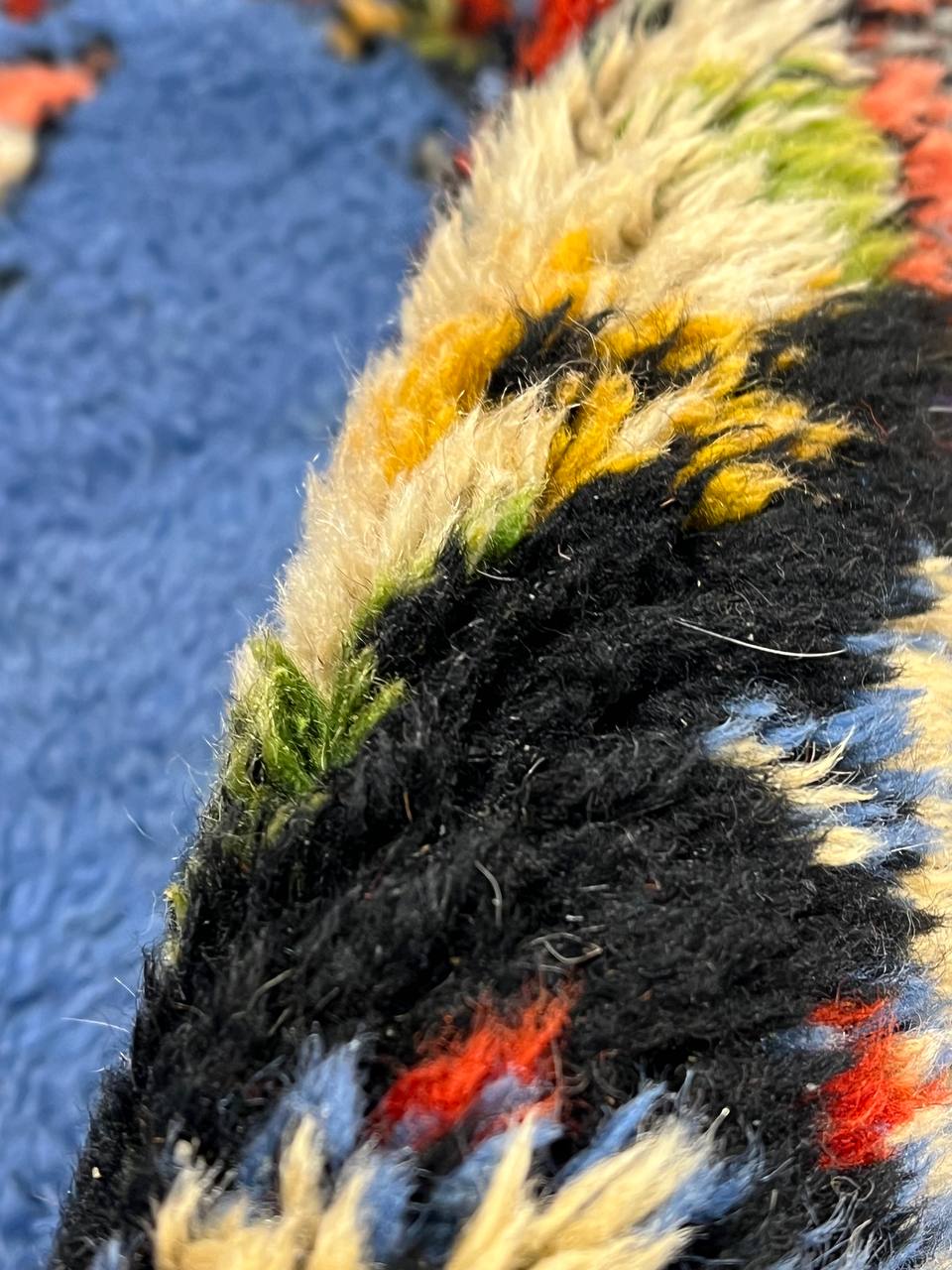 This is a true Moroccan magnum opus, full of art, vibrancy and character. Vintage rugs share the wisdom and elegance that comes with age, while still retaining their flair. These rugs have matured to allow the softening of the colours while extracting some of the natural Lanolin oil contained in the wool fibres to produce a beautiful finish.