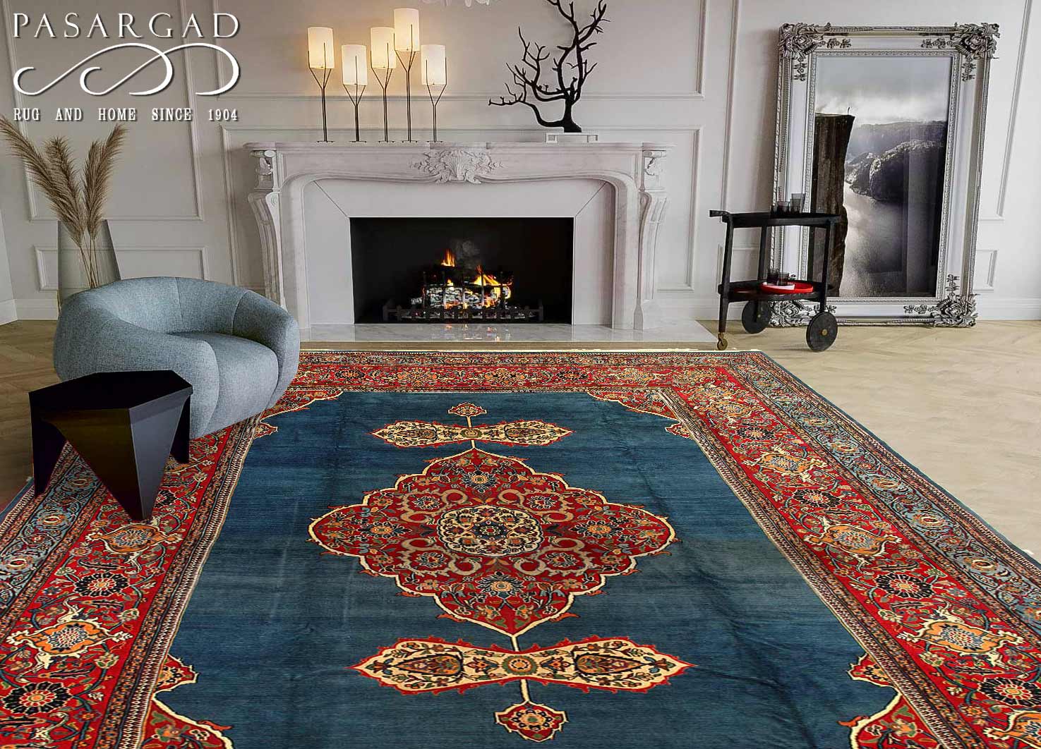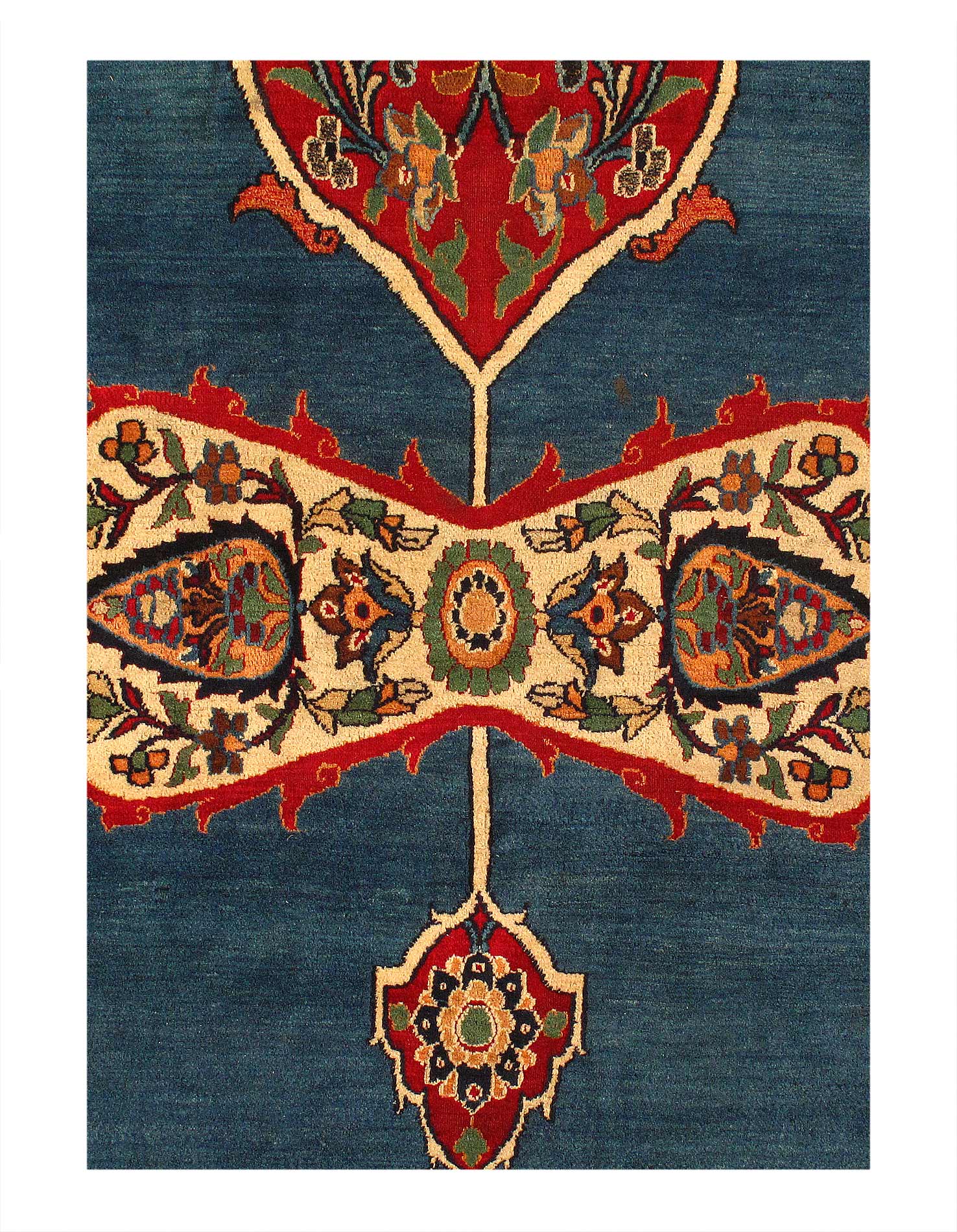 The elaborate and refined rug design is filled with hidden motifs. Some of these antique rug motifs may take years to discover while others are more apparent.